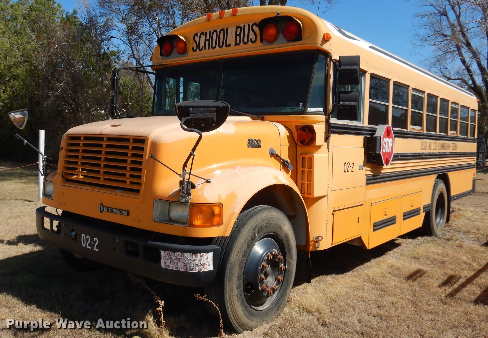 This 2002 International Blue Bird school bus will sell to the highest bidder regardless of price.