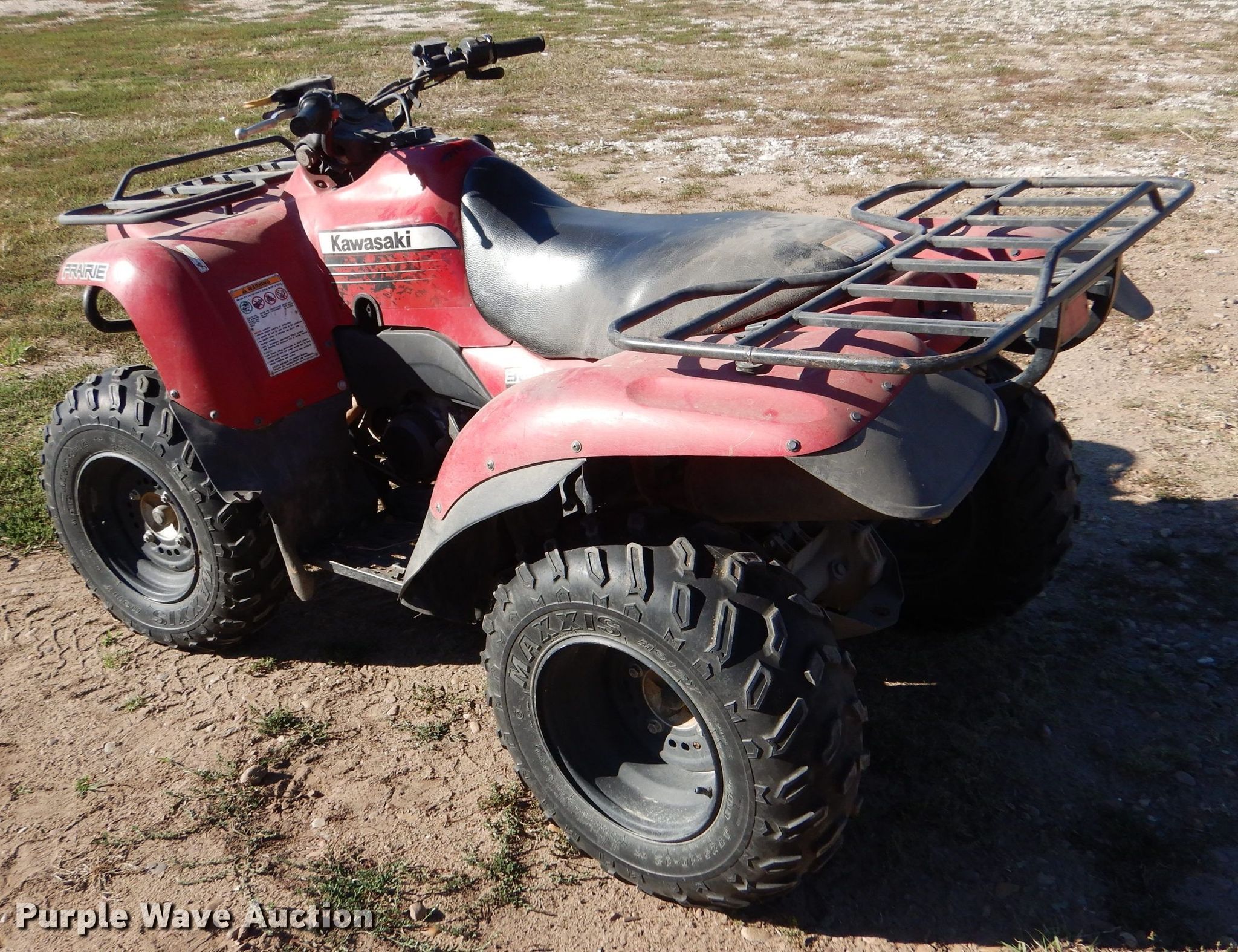Purple Wave is selling a used ATV in Kansas. This item is a 2013 Kawasaki Prairie 360 ATV with the following: Miles: 2,746 on odometer, Hours: 1,287 on meter, VIN: JKBVFHA19DB589575, Unit #: 10343