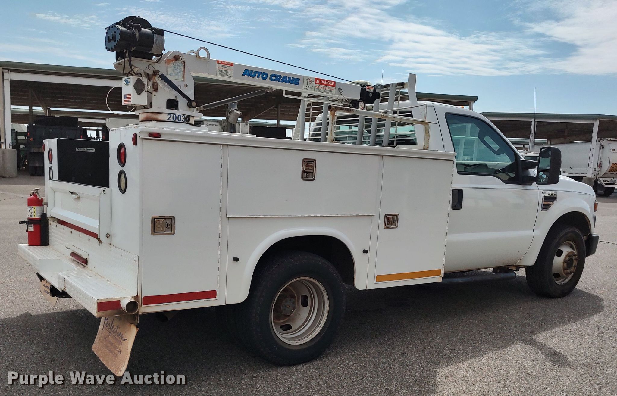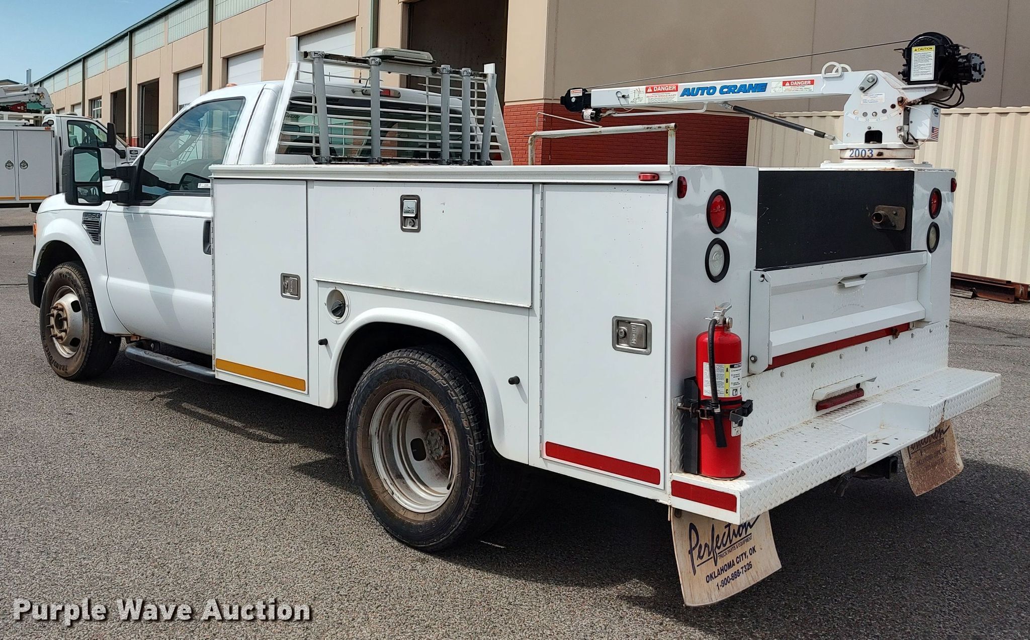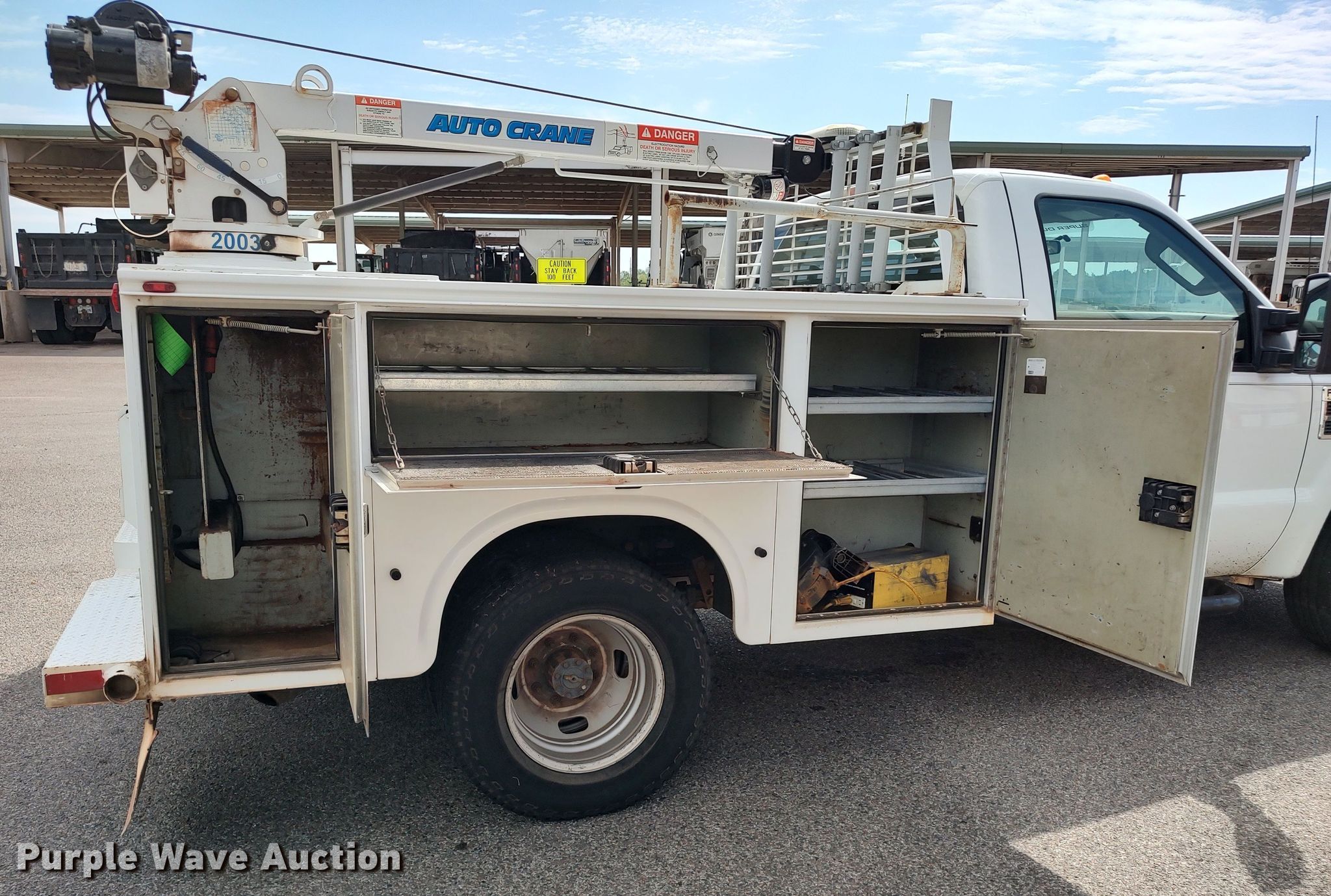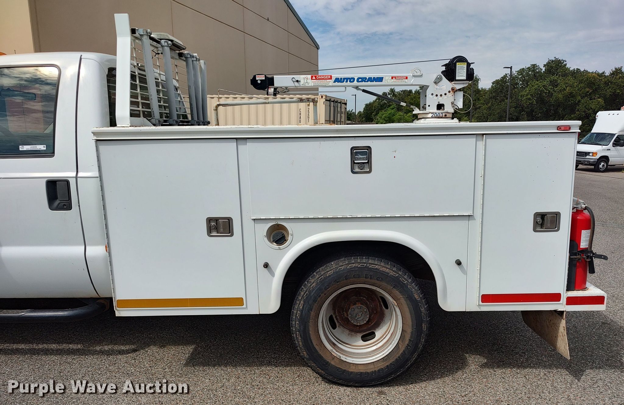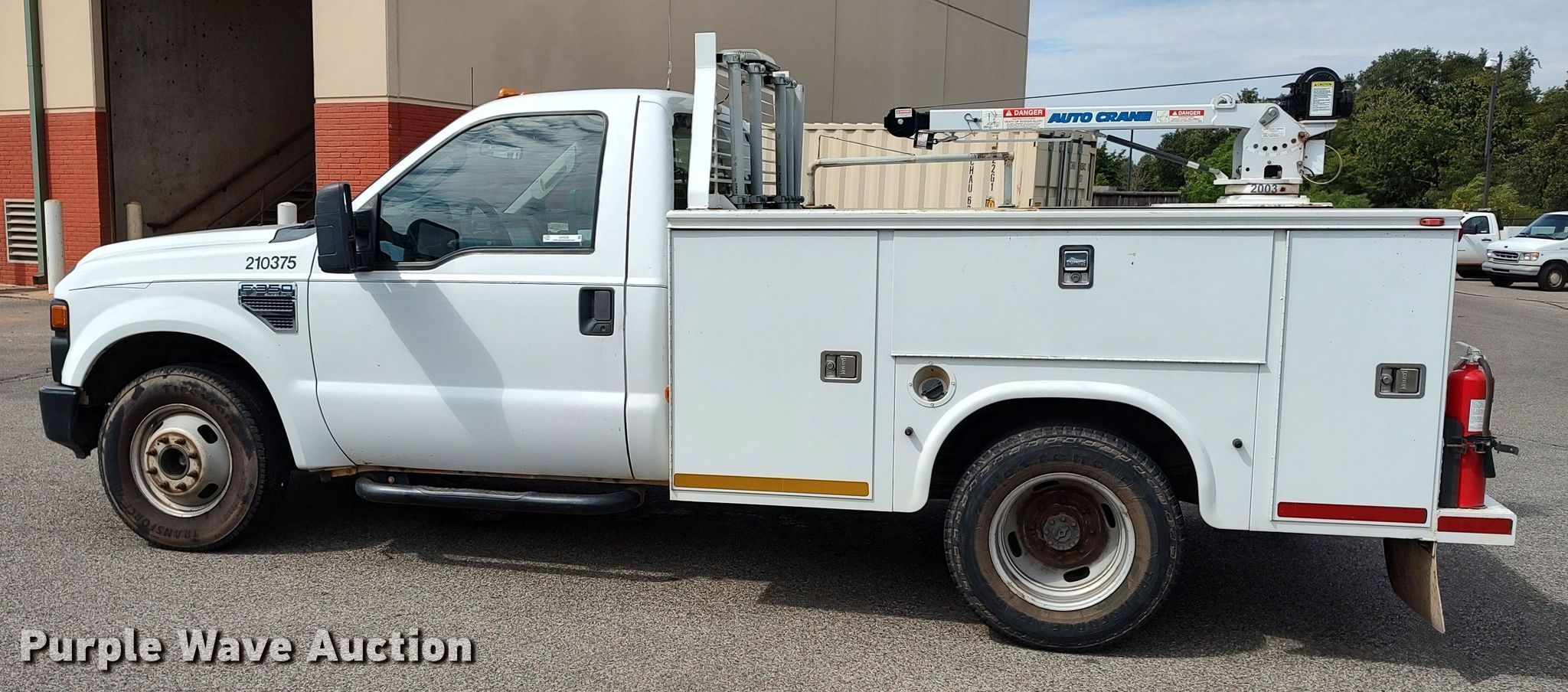 2010 Ford F350 Super Duty utility bed pickup truck. Miles: 189,889 on odometer, VIN: 1FDWF3C51AEA26253, Unit #: 210375. Engine Displacement: 5.4L V8 SOHC, Cylinders: 8, Fuel type: Gas. Transmission Automatic. Interior AC, Heat, Cruise control. Features Utility bed Knapheide, 9' L x 94" W, Crane Auto Crane, Model: 2003, Serial: 2003-0909-061, Maximum lift capacity: 2,000 lbs. Tires Size: 245/75R17. Notes Battery may need replaced. Oklahoma title. Seller is a government entity who will be assigning and distributing the title. Please contact the seller for distribution questions. City of Edmond - Open Inspection Oct. 24th. 2110 Old Timbers Drive. Edmond, OK 73034