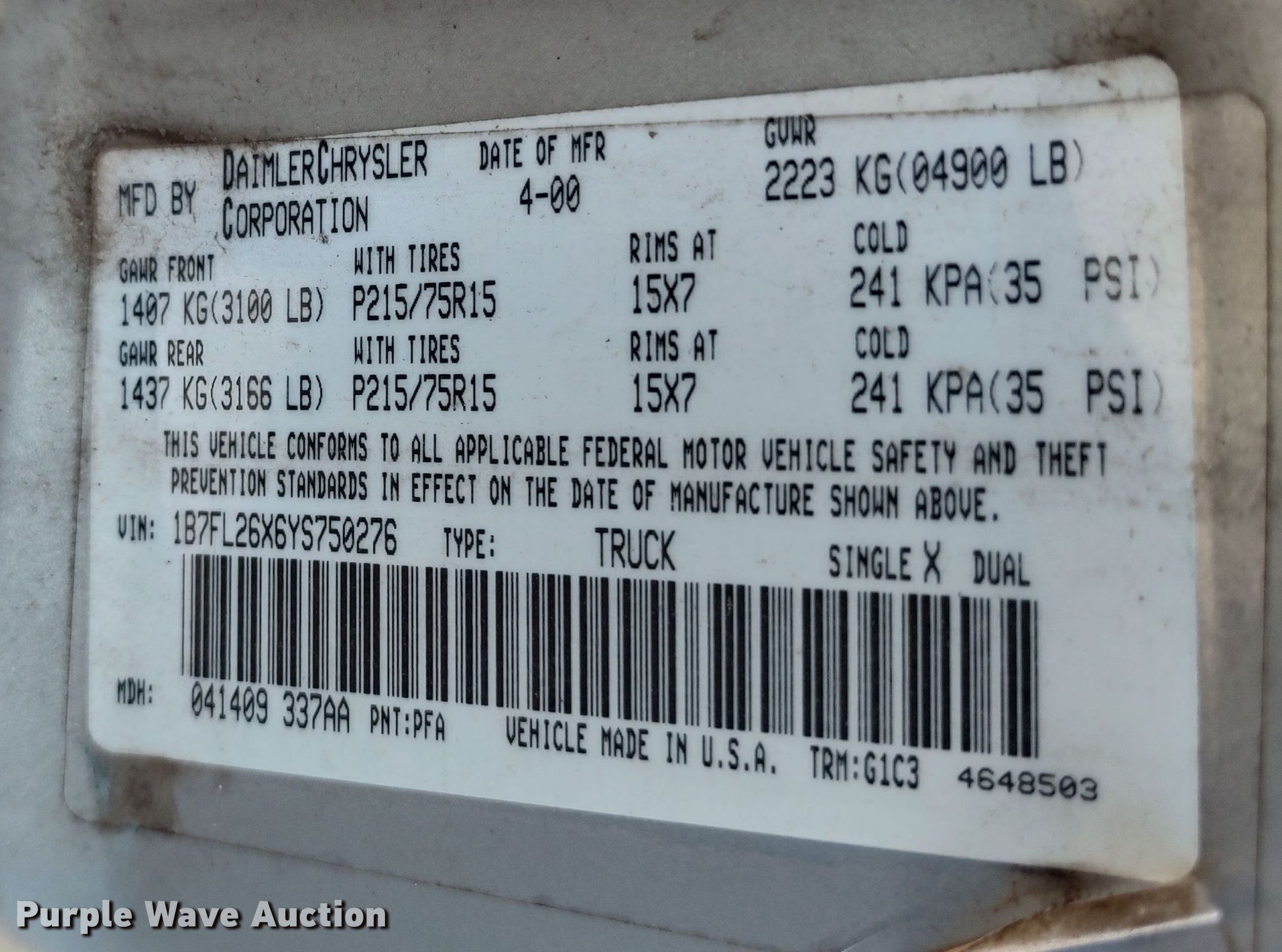 Purple Wave is selling a used Compact Pickup or Van in Oklahoma. This item is a 2000 Dodge Dakota pickup truck with the following: Miles: 81,662 on odometer, VIN: 1B7FL26X6YS750276, Unit #: 2004215