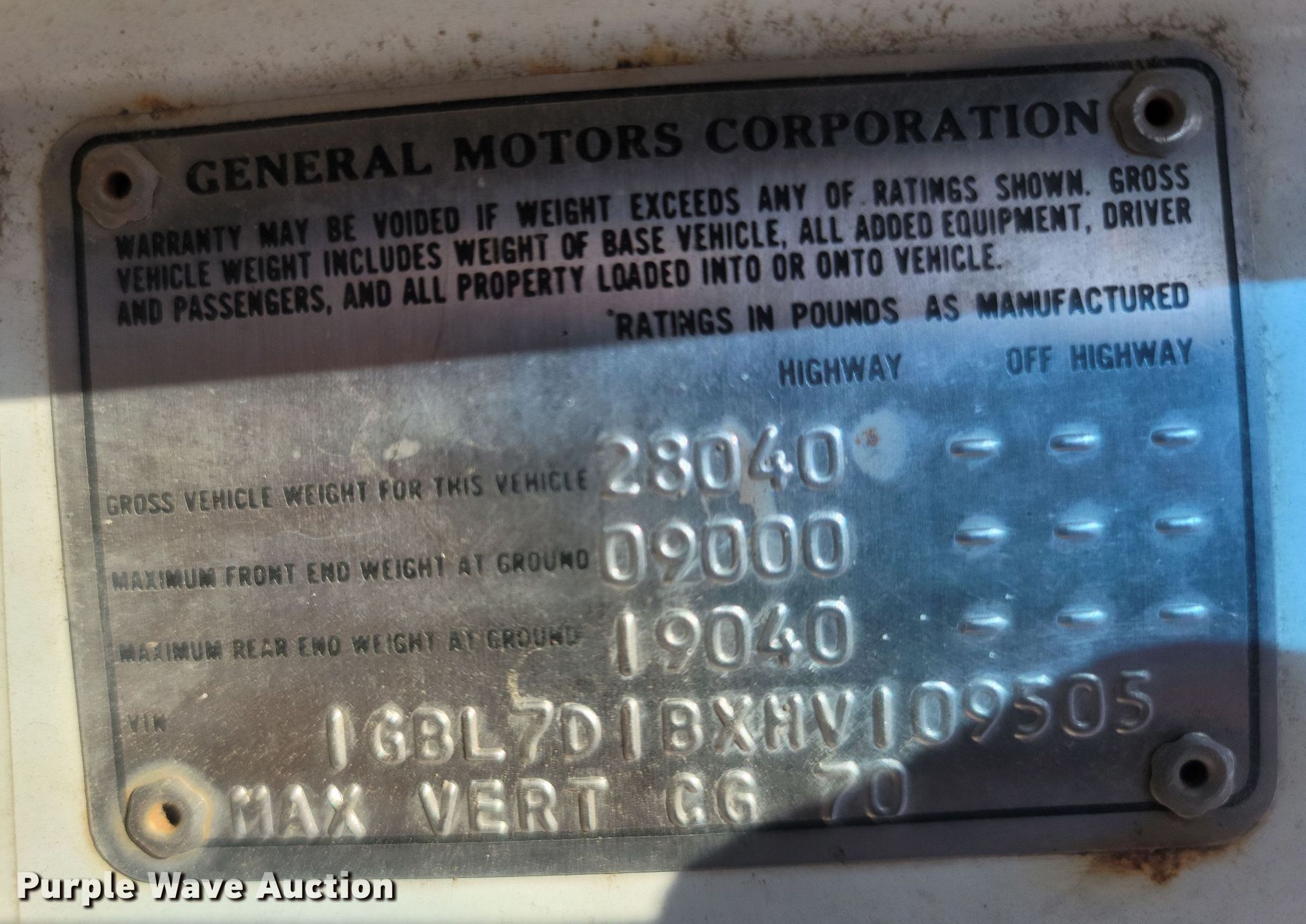 - VIN: 1GBL7D1BXHV109505
