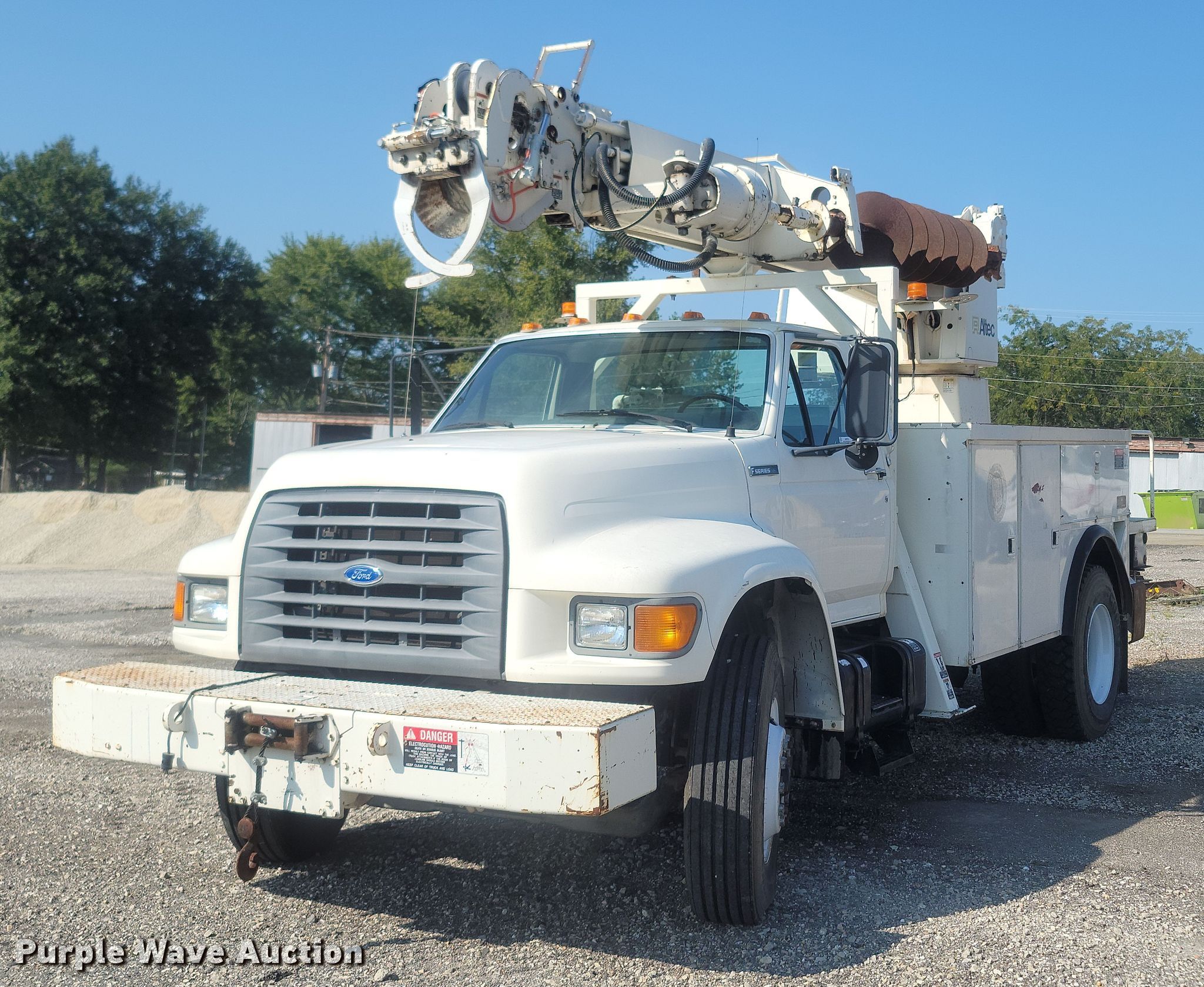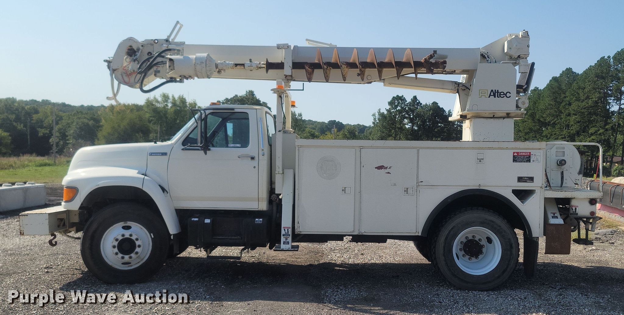 This 1997 Ford F800 digger derrick truck will sell to the highest bidder regardless of price.