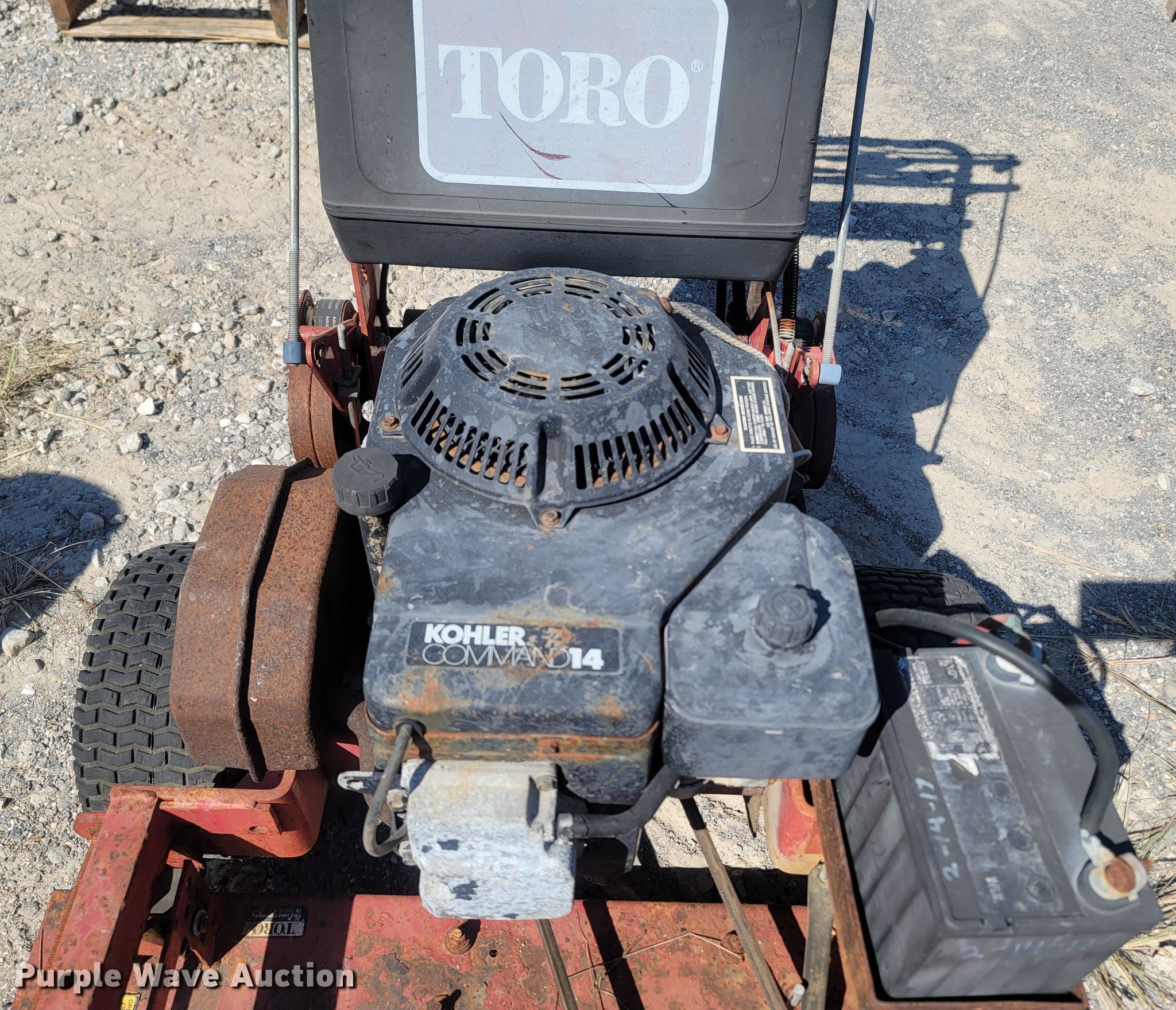 Toro Proline lawn mower. Cutting width: 30", Serial: 212810369. Engine Kohler Command Pro 14, Cylinders: 1, Fuel type: Gas. Transmission Hydrostatic. Features Sulky. Tires Rear: 13-6.0. Notes Unknown operating condition. Benton County Road Dept. 1208 SW 14th St. Bentonville, AR 72712