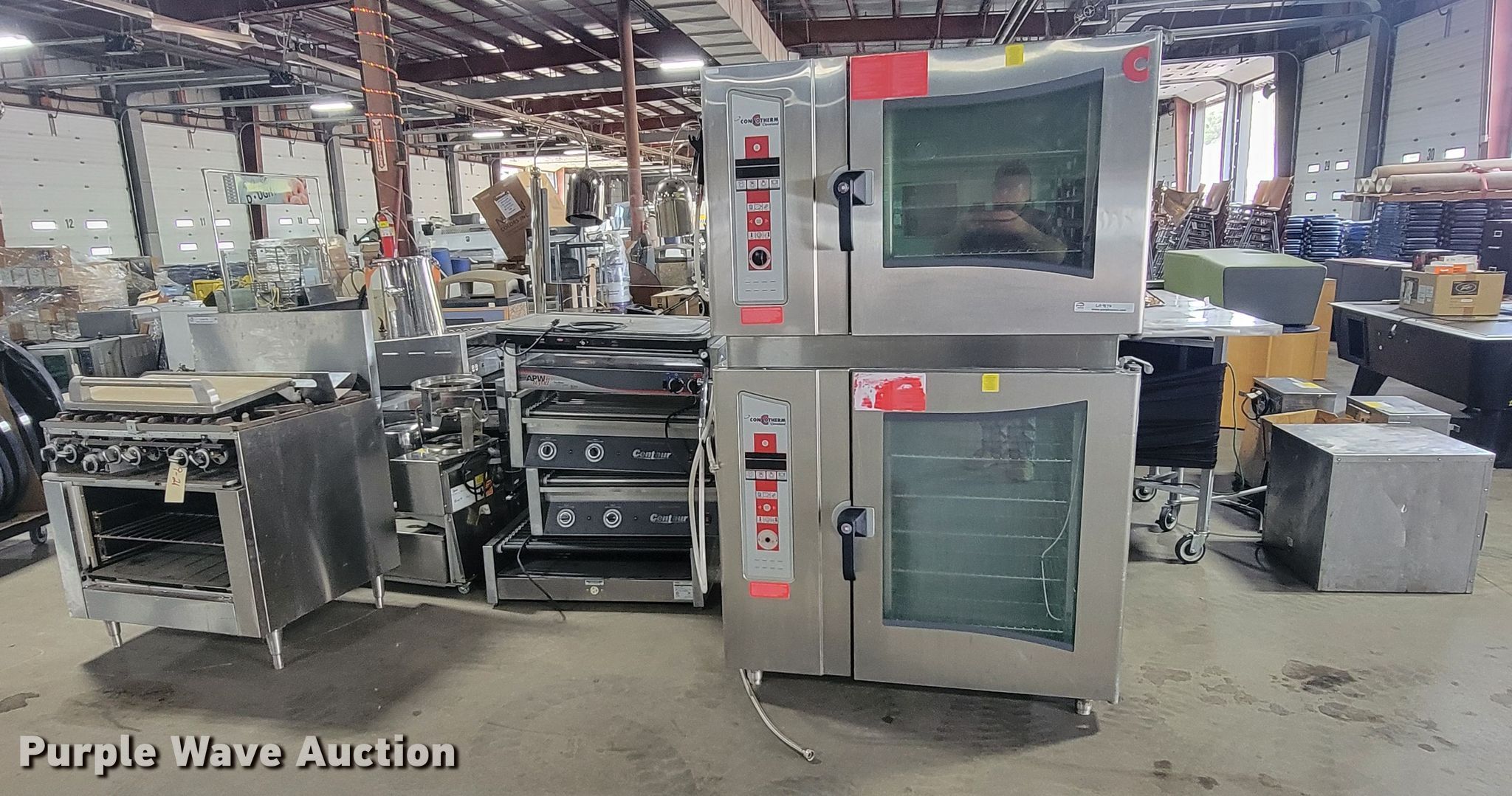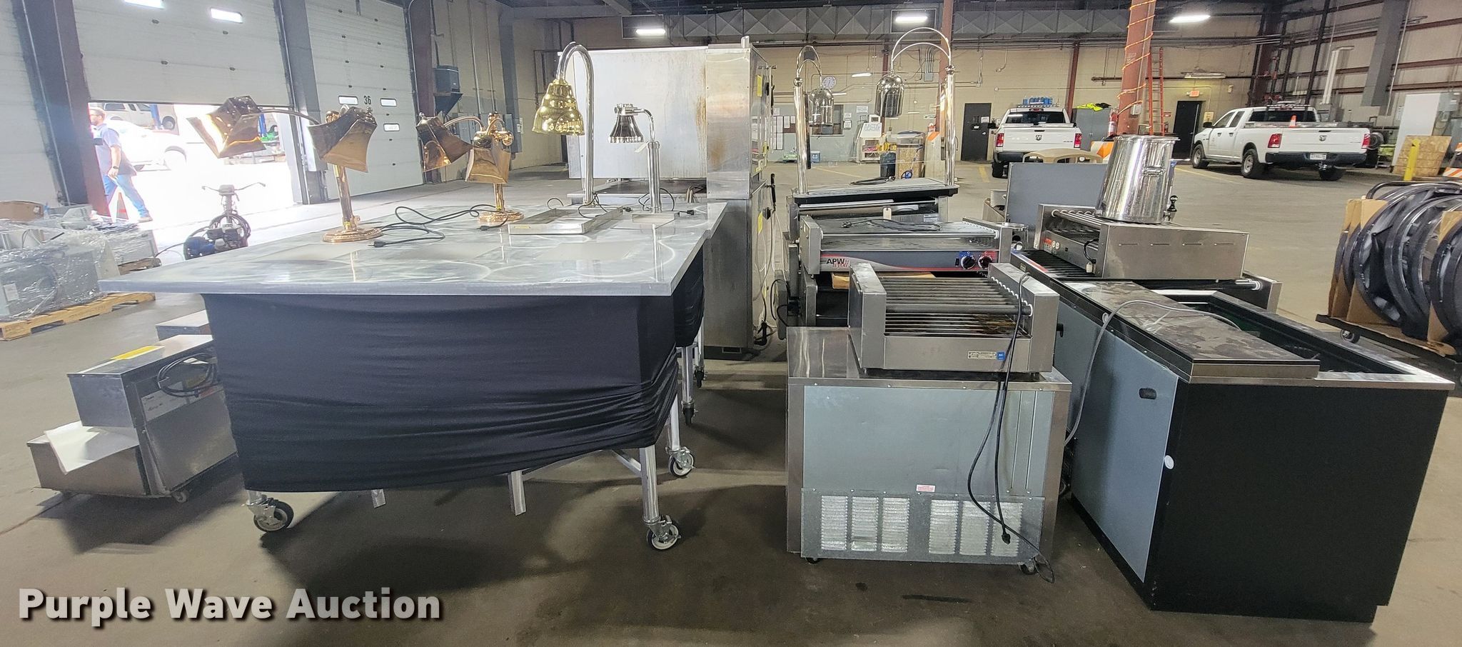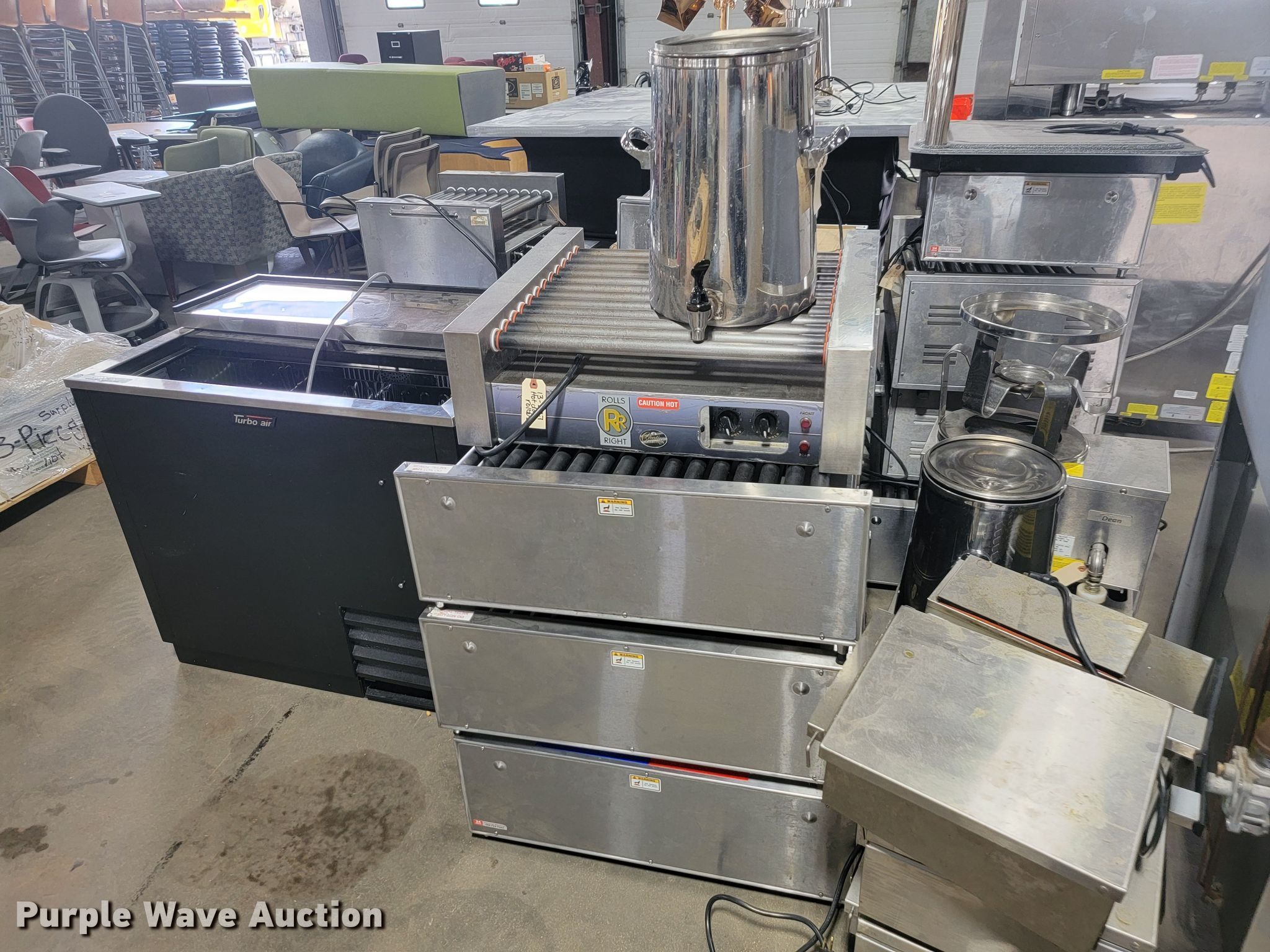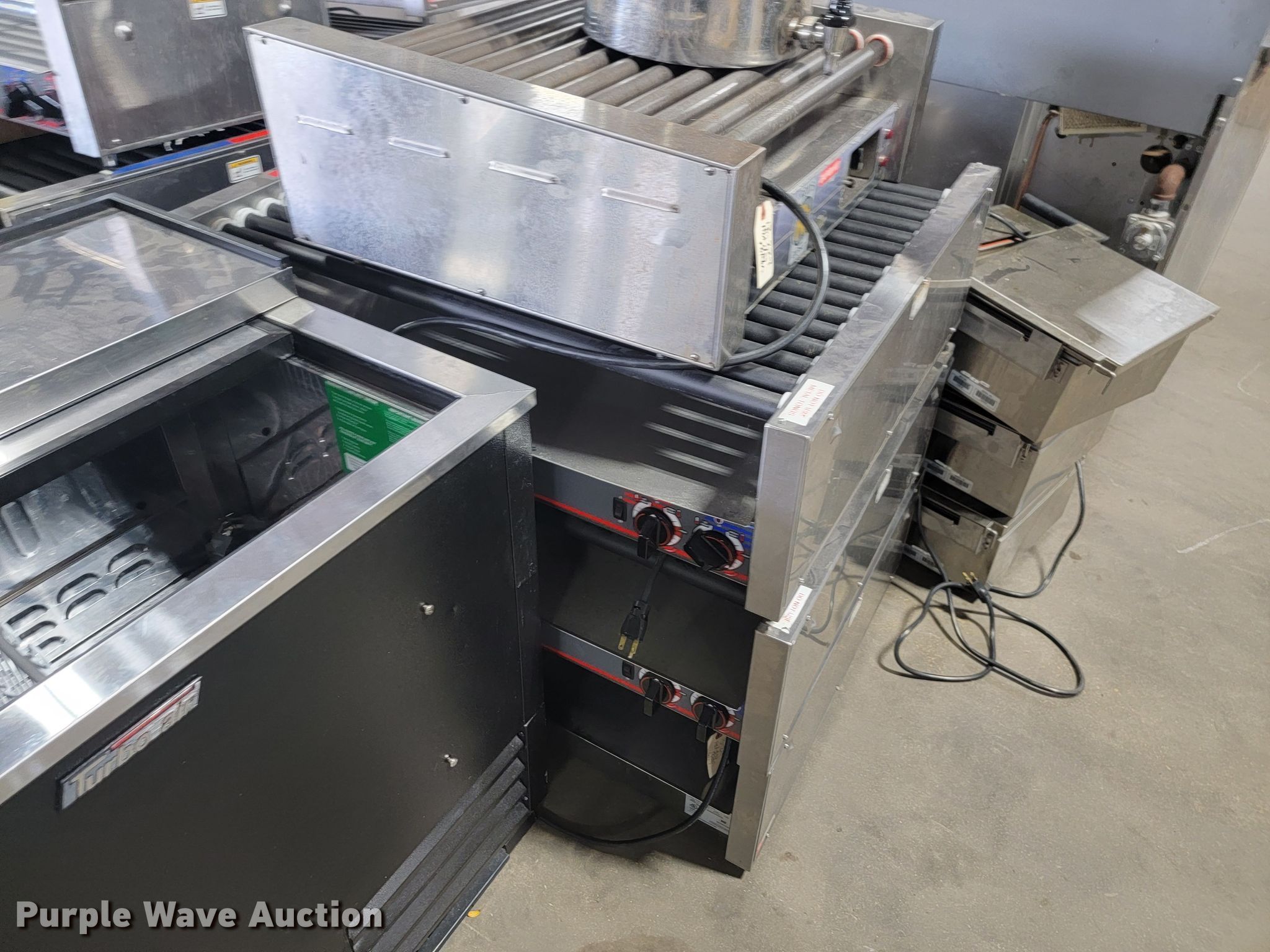 Purple Wave is selling a used Restaurant Equip. in South Dakota. This item is a Restaurant equipment with the following: Garland range, Six burners, Centaur PPW Wyott Tru-Heat roller system, (3) Roundup cookers, Rolls Right roller system, Turbo air refrigerator, (2) serving tables, Warming lights, Toastmaster warmer, Dean warming cabinet, (2) Convotherm ovens