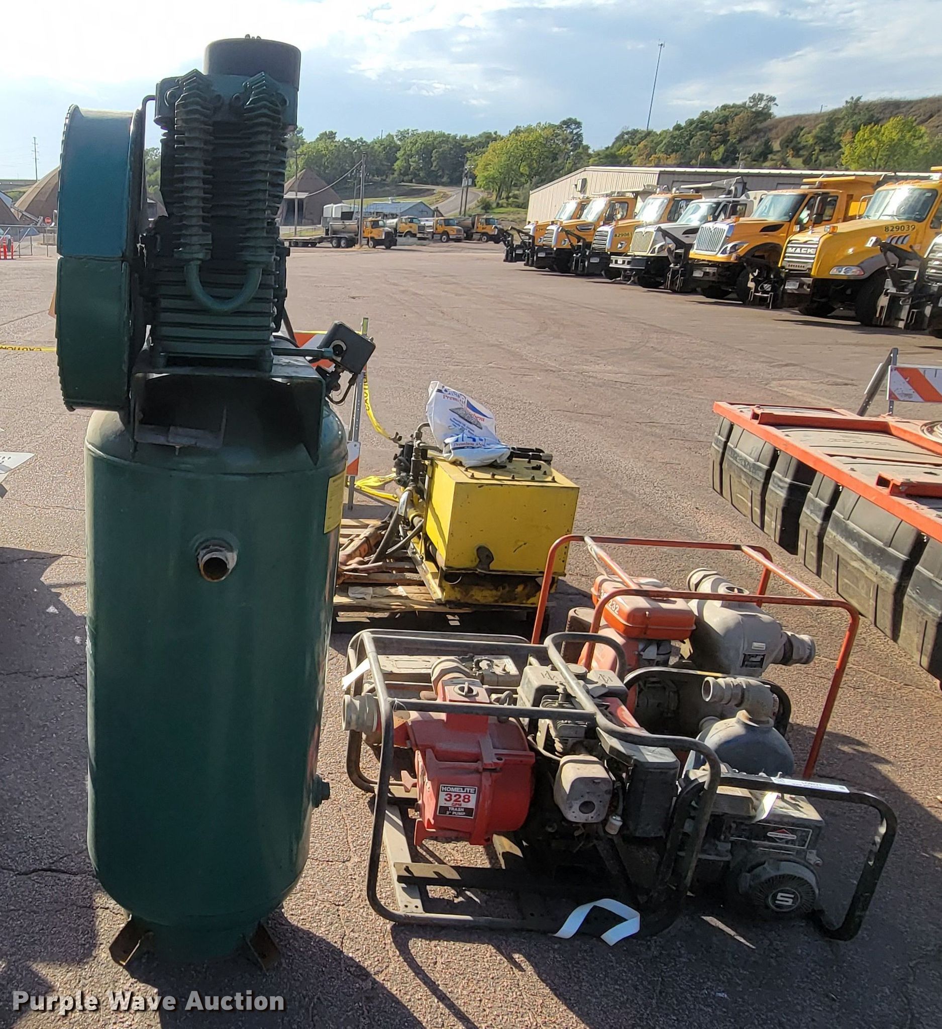 Rol-air air compressor. Electric Motor. HP: 5, Volts: 230, Phase: Single. Features PSI: 200, Tank capacity: 60 gallons. Notes Unknown operating condition. Sioux Falls Street Department - Open inspection Oct. 21. 1000 E Chambers St.. Sioux Falls, SD 57104