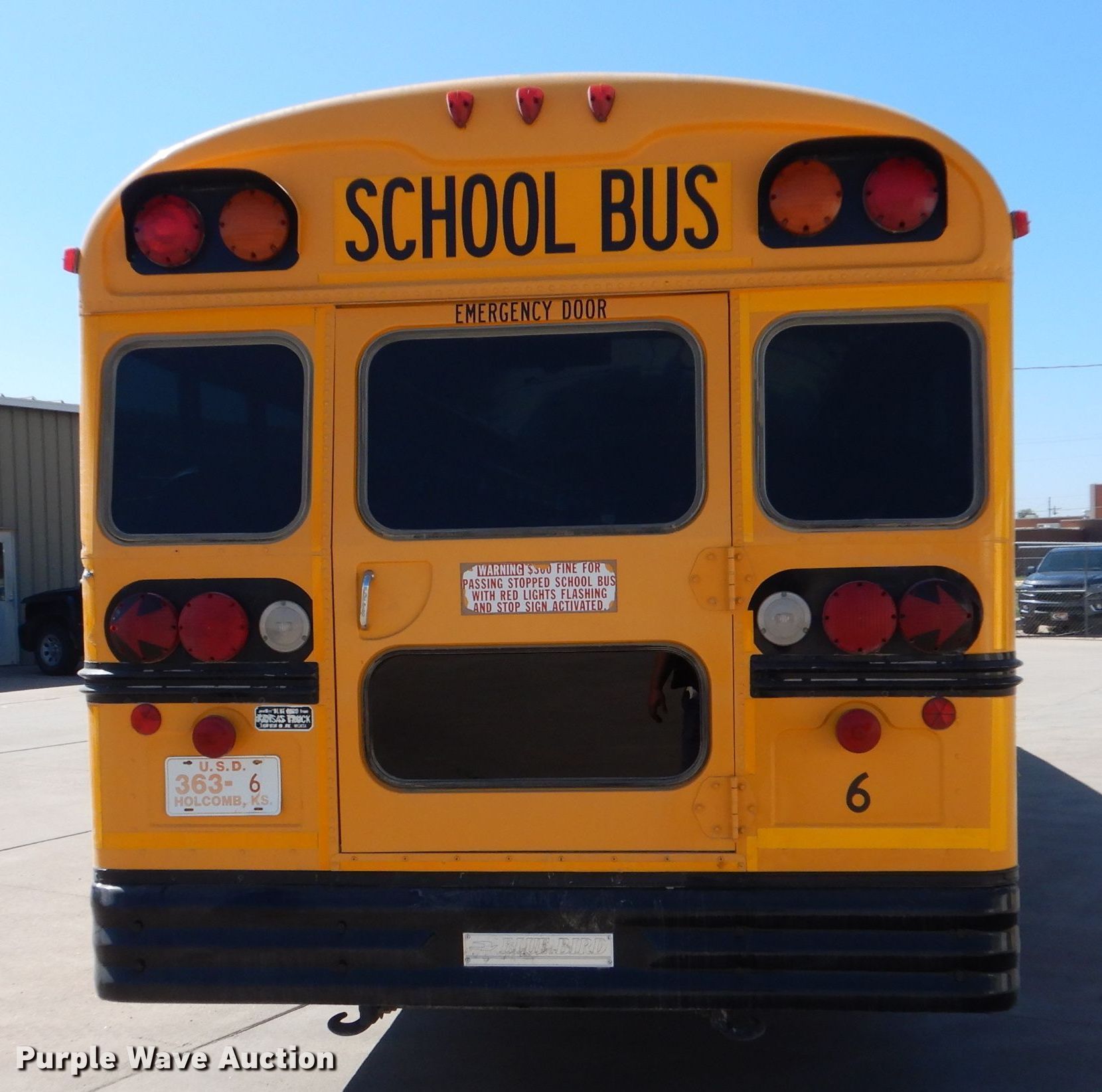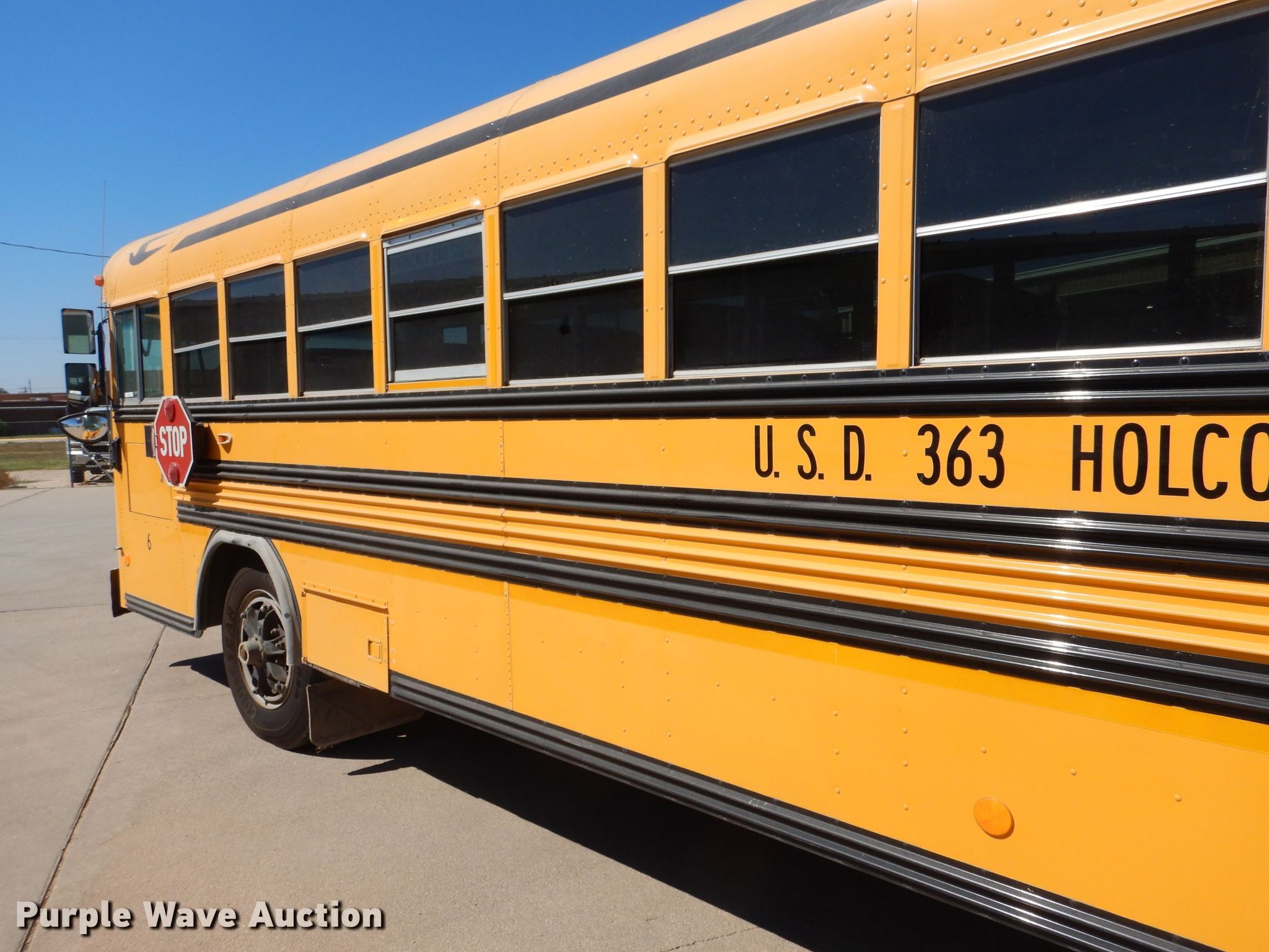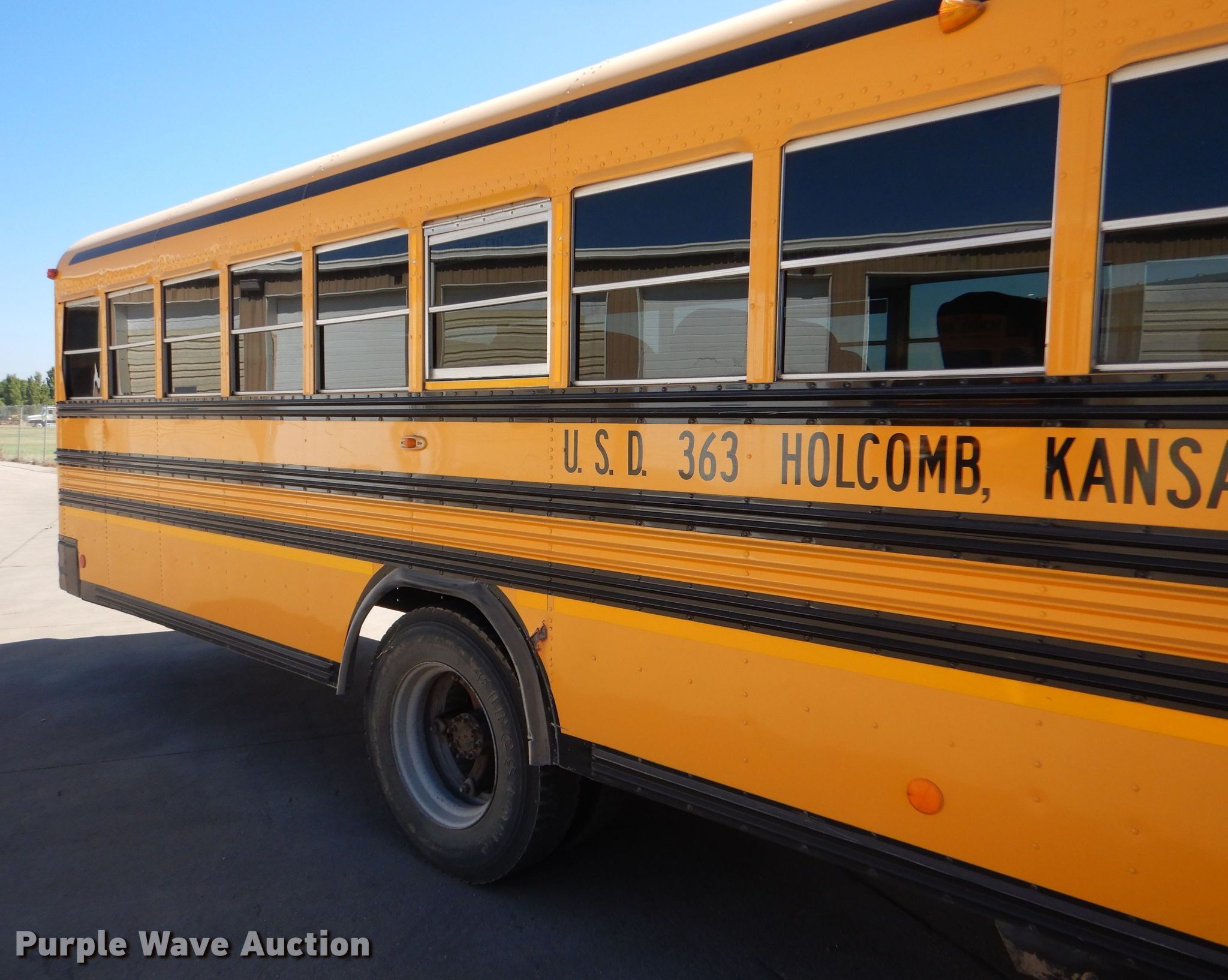 1997 Blue Bird TC2000 school bus. Miles: 122,874 on odometer, VIN: 1BAAKCSH3VF070450, Unit #: 6. Engine Displacement: 5.9L, Cylinders: 6, Fuel type: Diesel. Transmission Automatic. Chassis Axles: Single, Suspension: Spring, Brakes: Hydraulic, GVWR: 27,800 lbs. Interior Heat, Heated mirrors, Passengers: 72. Tires Front: 11R22.5, Rear: 10R22.5. Notes Cameras and radio equipment not included, Decals will be painter over prior to auction. Kansas title. USD 363 Holcomb. 204 Wiley St. Holcomb, KS 67851
