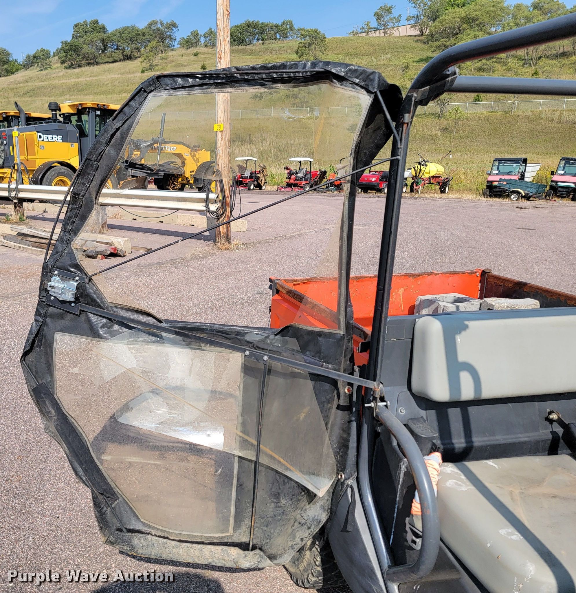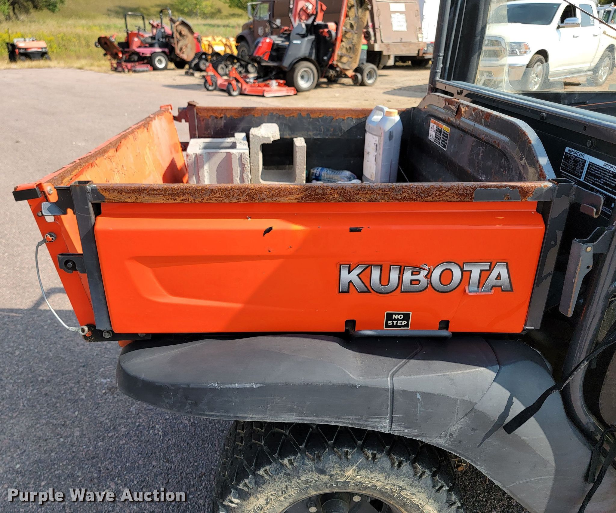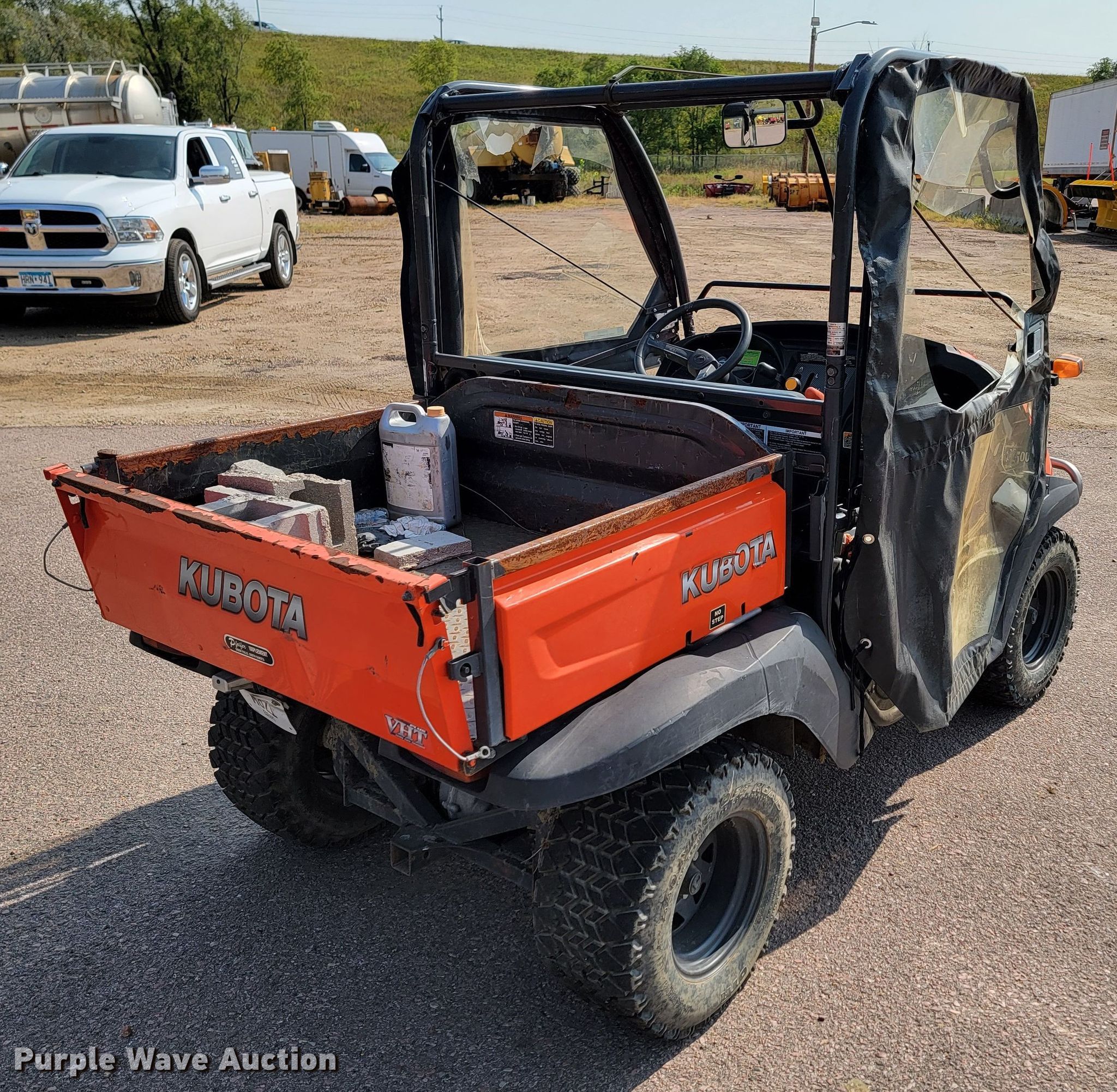 2009 Kubota RTV500 utility vehicle. Hours: 875 on meter, VIN: KRTV500A91017964, Unit #: 51-82. Engine Kubota, Displacement: 466 cc, Cylinders: 2, Fuel type: Gas, Electric start. Transmission Automatic. Chassis Four wheel drive. Operators station Passengers: 2. Features Grill guard, Receiver hitch, Dump bed 33" L x 40" W, Dump bed type: Manual. Tires Front: 24x9.00-12, Rear: 24x11.00-12. Notes Doors damaged, Unknown operating condition. South Dakota title. Sioux Falls Street Department - Open inspection Oct. 21. 1000 E Chambers St.. Sioux Falls, SD 57104