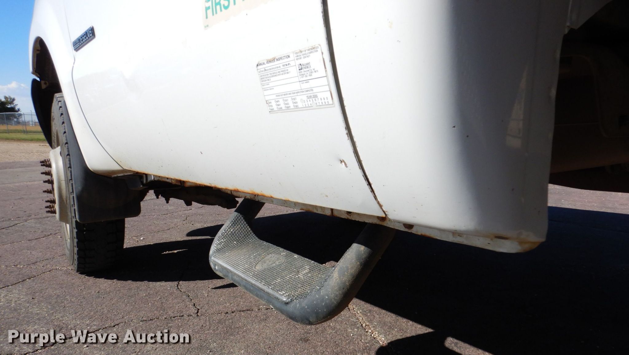 2002 Ford F550 Super Duty XL dump truck. Miles: 86,859 on odometer, VIN: 1FDAF57F12EB91858. Engine Displacement: 7.3L, Cylinders: 8, Fuel type: Diesel. Transmission Automatic, Four wheel drive. Chassis Axles: Single, Suspension: Spring, Brakes: Hydraulic, GVWR: 17,500 lbs, Wheelbase: 141". Interior AC, Heat, Cruise control, Brake controller. Features Dump bed 8' 11" L x 96" W, Side height: 20", Side board height: 7", Bed type: Steel, Ram: Single , End gate: Manual. Tires Size: 225/70R19.5. Minnesota title. Nobles Cooperative Electric. 22636 U.S. 59. Worthington, MN 56187