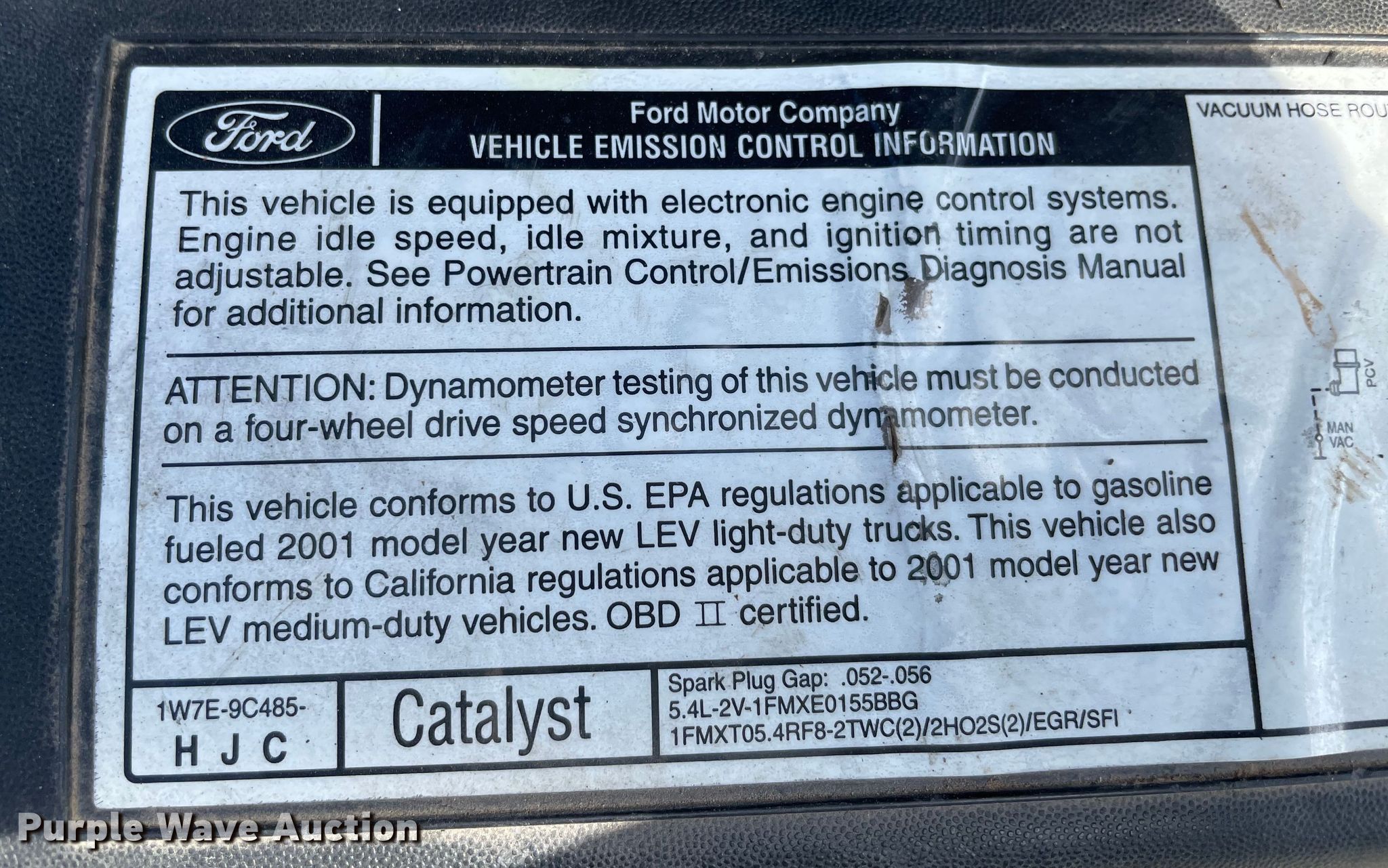 2001 Ford Expedition SUV. Miles: 141,833 on odometer, VIN: 1FMPU16L81LA72537. Engine Displacement: 5.4L V8 SOHC, Cylinders: 8, Fuel type: Gas. Transmission Automatic. Interior AC, Heat, Power windows, Power locks, Cruise control. Tires Size: LT245/75R16. Notes Possible front end issue. Oklahoma title. Seller is a government entity who will be assigning and distributing the title. Please contact the seller for distribution questions. City of Lexington. 111 East Broadway Street. Lexington, OK 73051