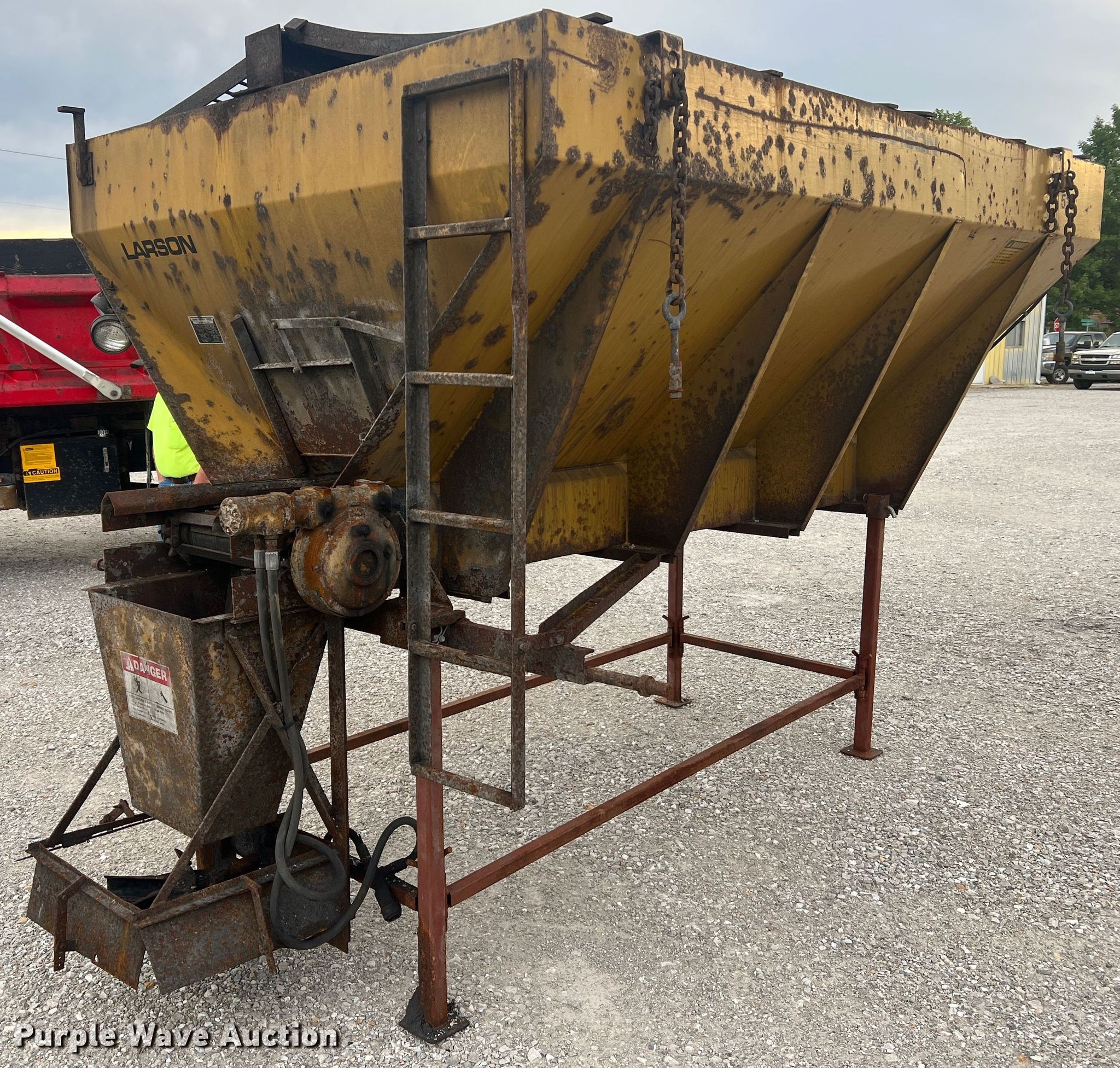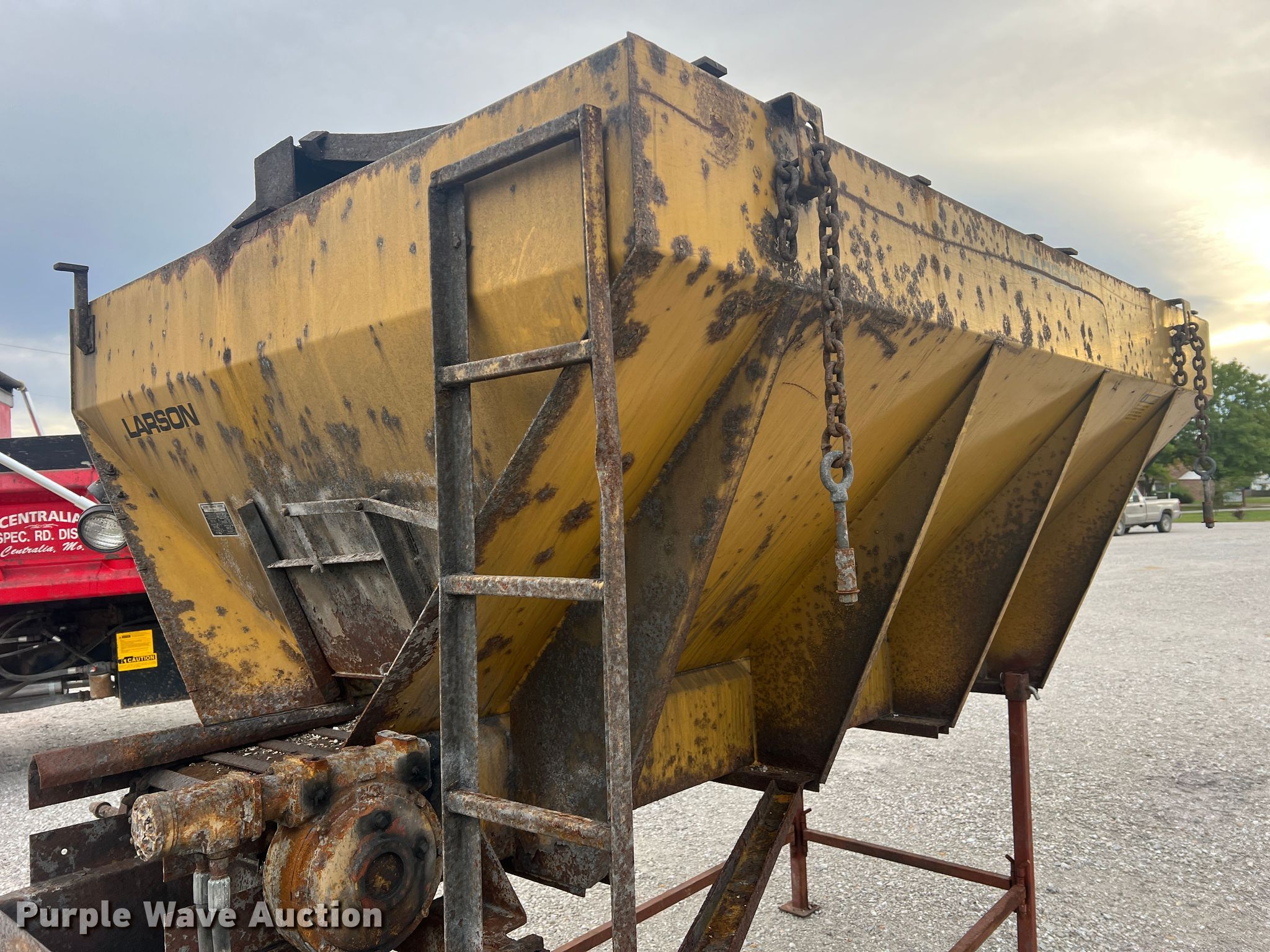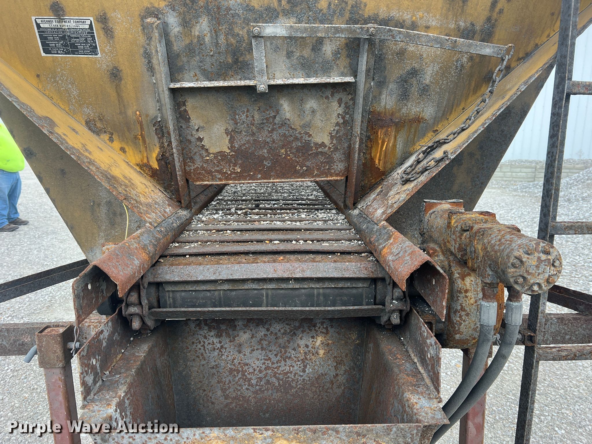 Purple Wave is selling a used Truck Part and Attach. in Missouri. This item is a Highway Equipment Company 510-10 spreader with the following: 10' L x 78" W, 18" W conveyor, Single rear spinner, 18" diameter, Serial: 105090