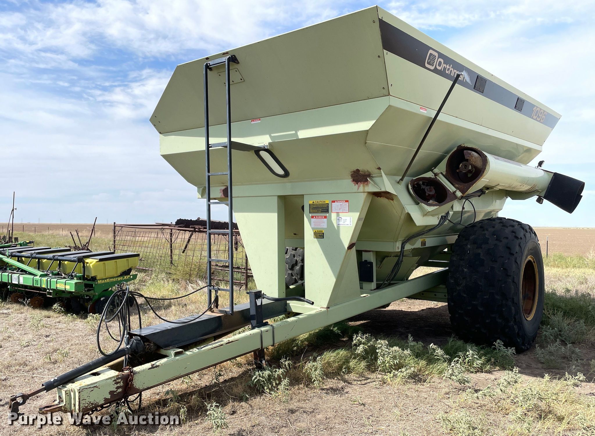 Orthman 1096 grain cart. Serial: 3499-8. Features Capacity: 1,000 bushels, Auger diameter: 16" Length: 12', Shut-off gate: Hydraulic, Manual, PTO: 1 3/4" 1000. Chassis Axle width adjust. Tires Front: 35.5L-32. Willis Boyd Dirt Service Inc.. 102 N 760. Spearman, TX 79081