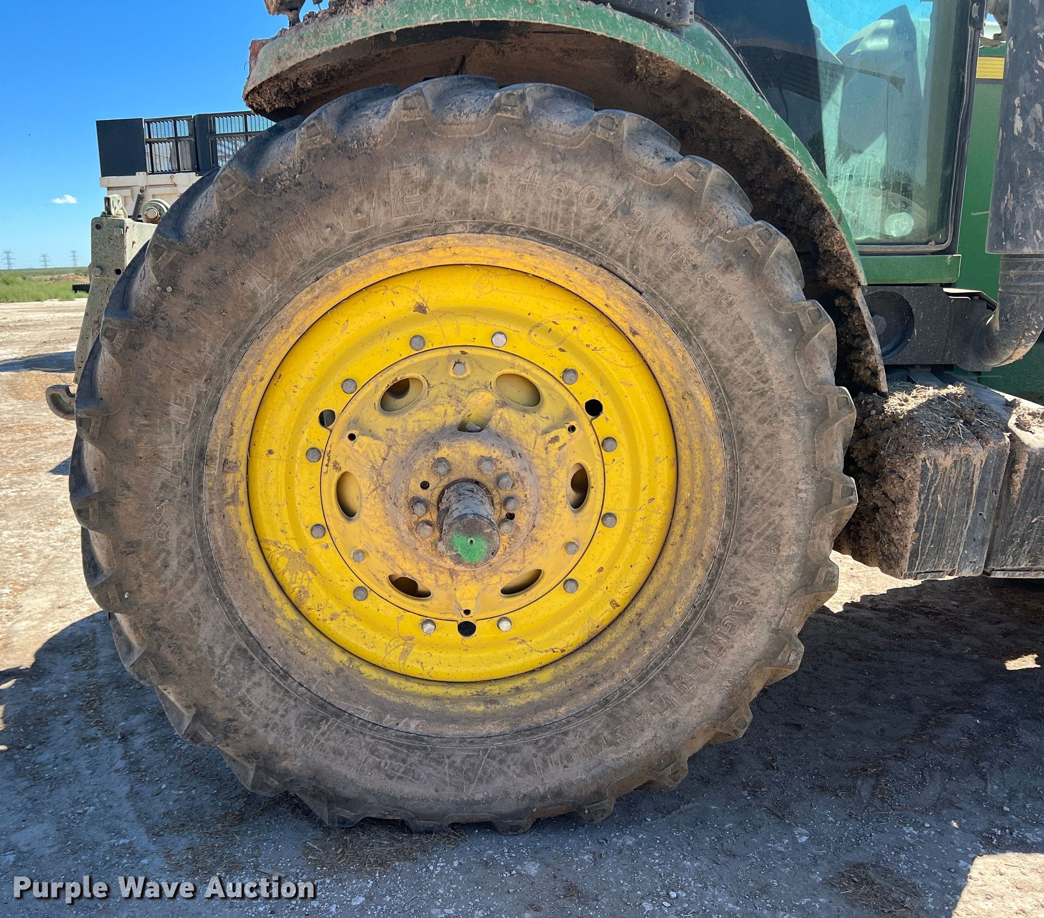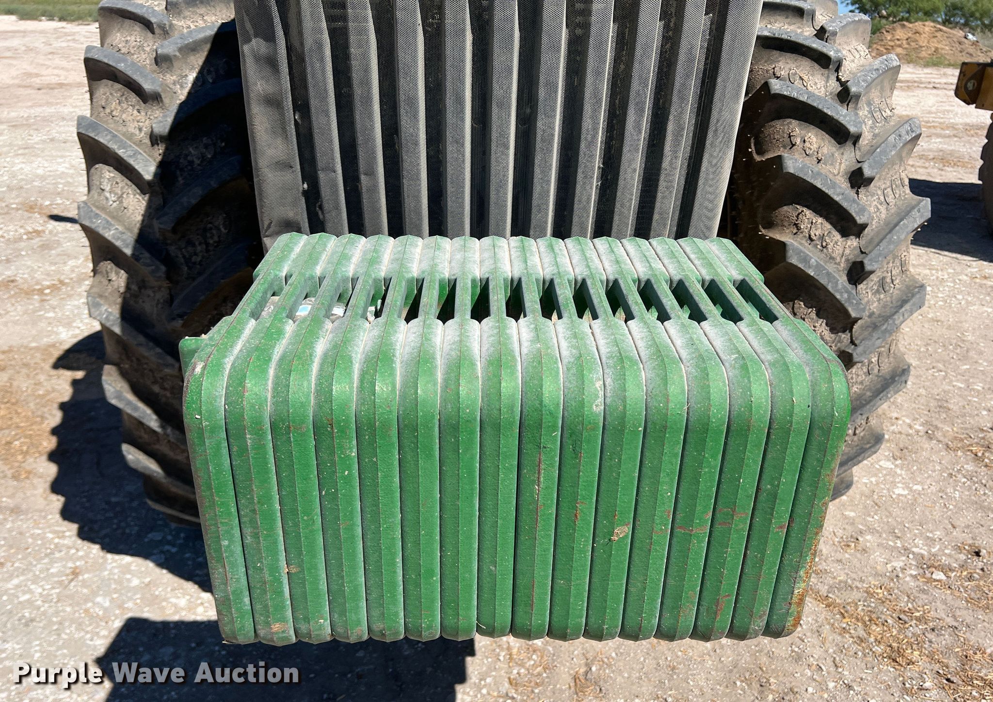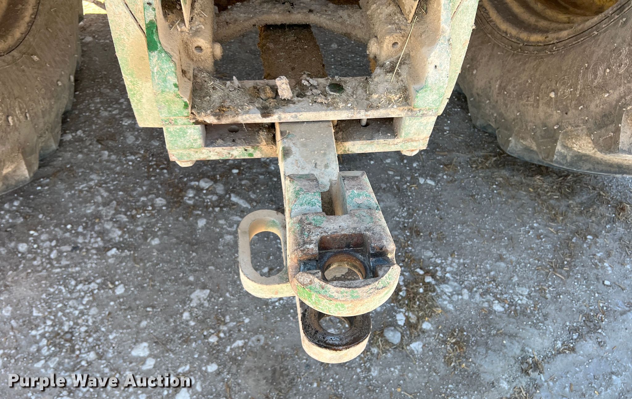 2009 John Deere 8430 MFWD tractor. Hours: 22,898 on meter, Serial: RW8430P043799. Engine John Deere, Cylinders: 6, Fuel type: Diesel. Transmission Powershift, 16F - 4R. Operators station AC, Heat. Features PTO: 1 3/4" 1000, Three point Quick attach, Seven pin outlet, ISOBUS outlet, Hydraulic remote sets Rear: 4, Suitcase weights: 16. Tires Front: 380/85R38, Rear: 480/80R50, Wheel weights: 2. Cross Integrated Transport. Miles, TX 76861