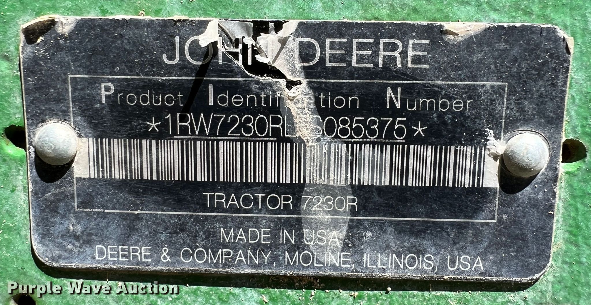 Purple Wave is selling a used Tractor in Texas. This item is a 2015 John Deere 7230R MFWD tractor with the following: Hours: 8,667 on meter, Serial: 1RW7230RLFS085375