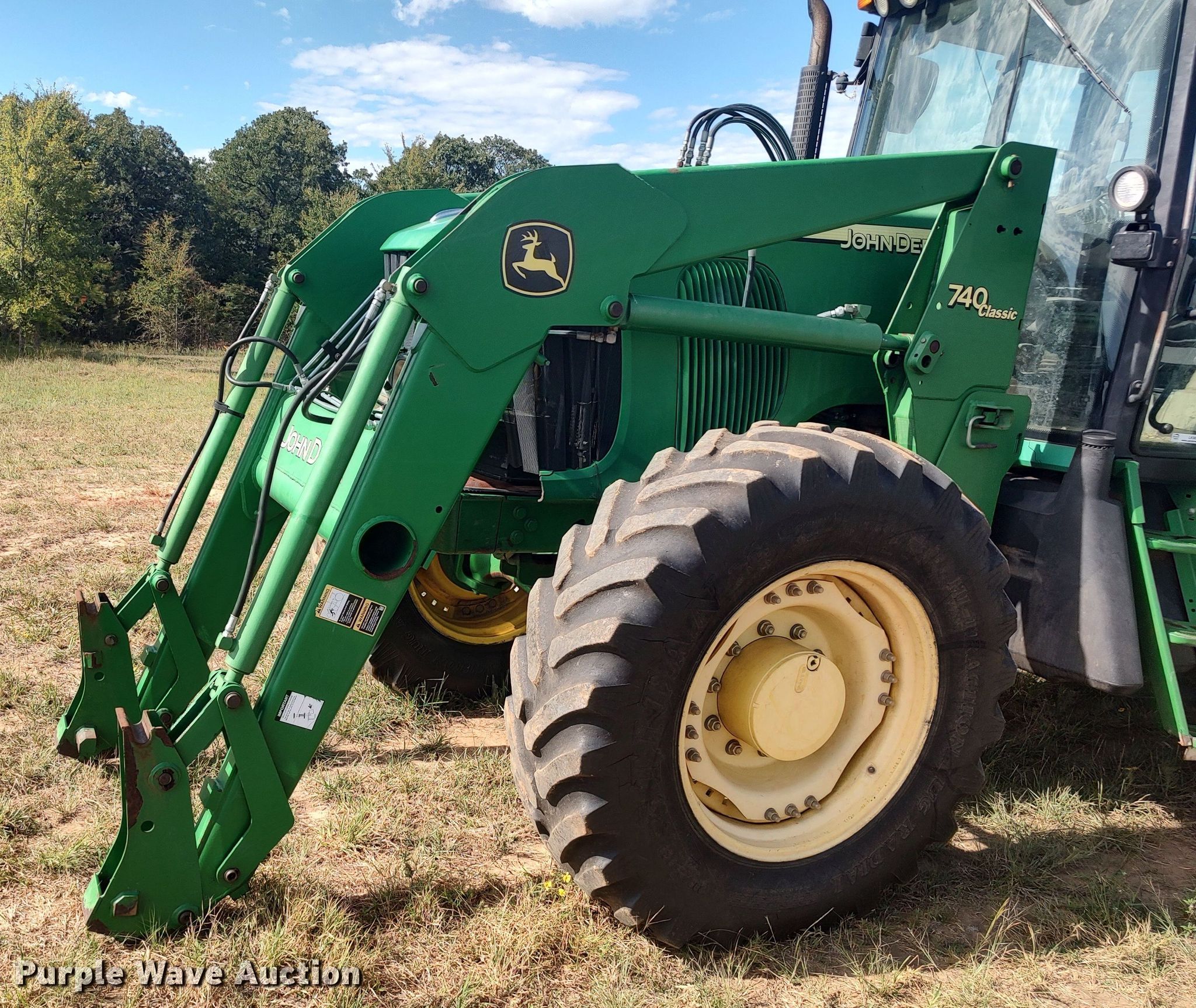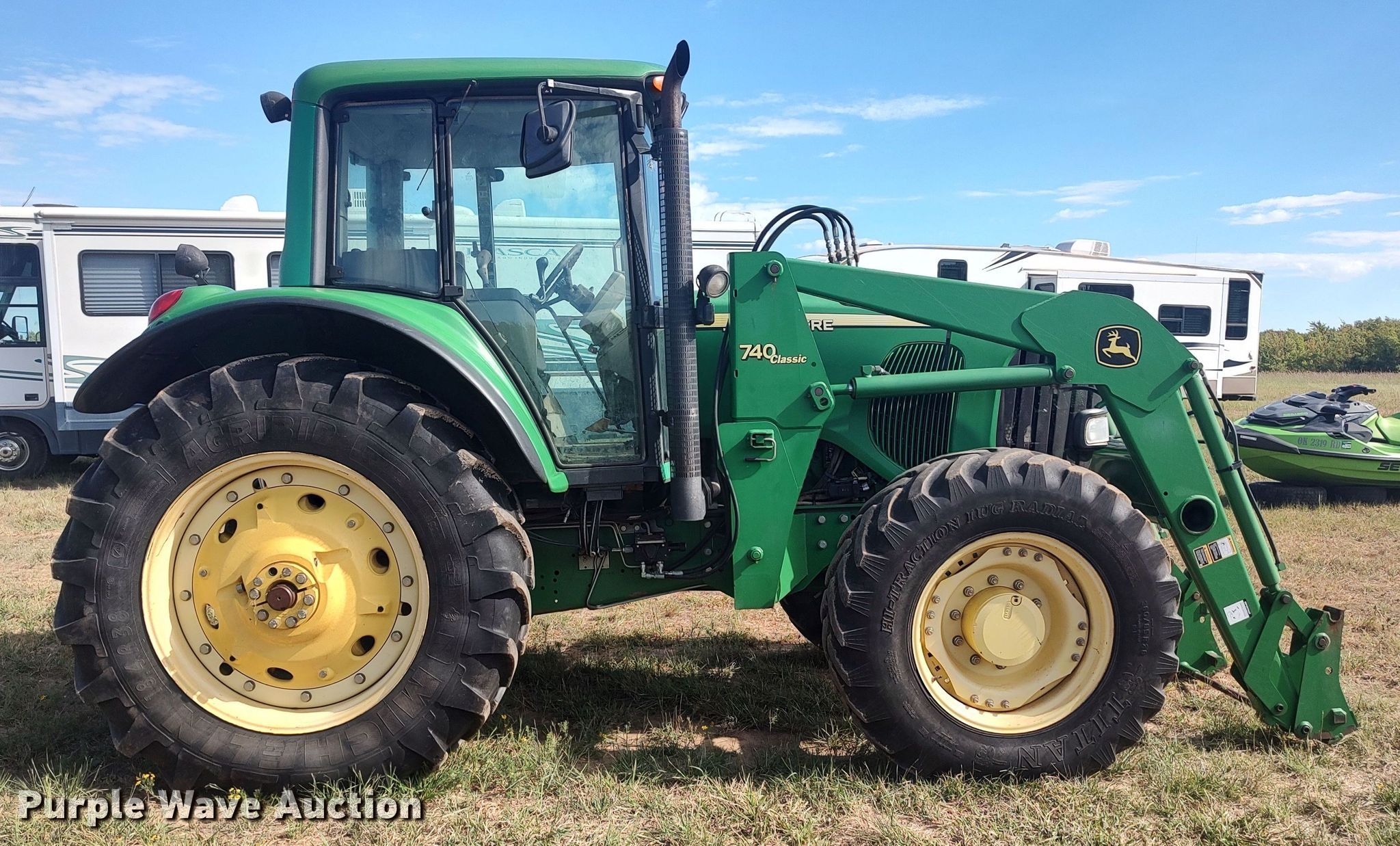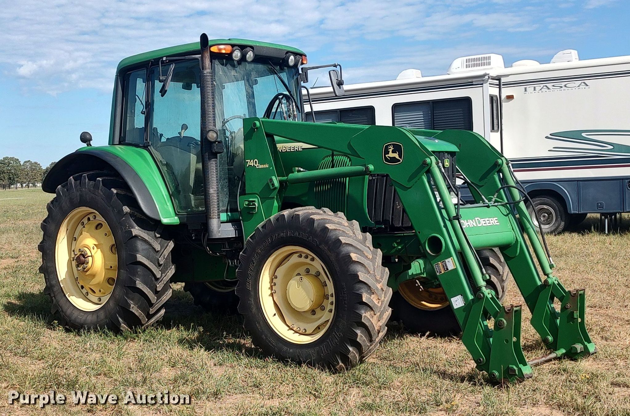 2005 John Deere 7220 MFWD tractor. Hours: 6,075 on meter, Serial: RW7220R035272, Claim #: 2-811676. Engine John Deere 6068HRW70, Serial: PE6068H436677, Cylinders: 6, Fuel type: Diesel. Transmission Powershift, 16F - 16R, Left-hand reverser. Operators station AC, Heat. Features PTO: 540, Three point Top link, Seven pin outlet, Hydraulic remote sets Front: 2, Rear: 3, Loader John Deere 740, Controls: Joystick. Tires Front: 380/85R28, Rear: 18.4R38. Notes Theft recovery, Hood will not latch. Insurance salvage unit. Oklahoma Farm Bureau Insurance. Seminole, OK 74868