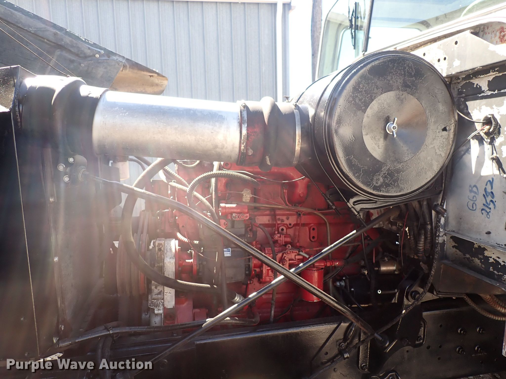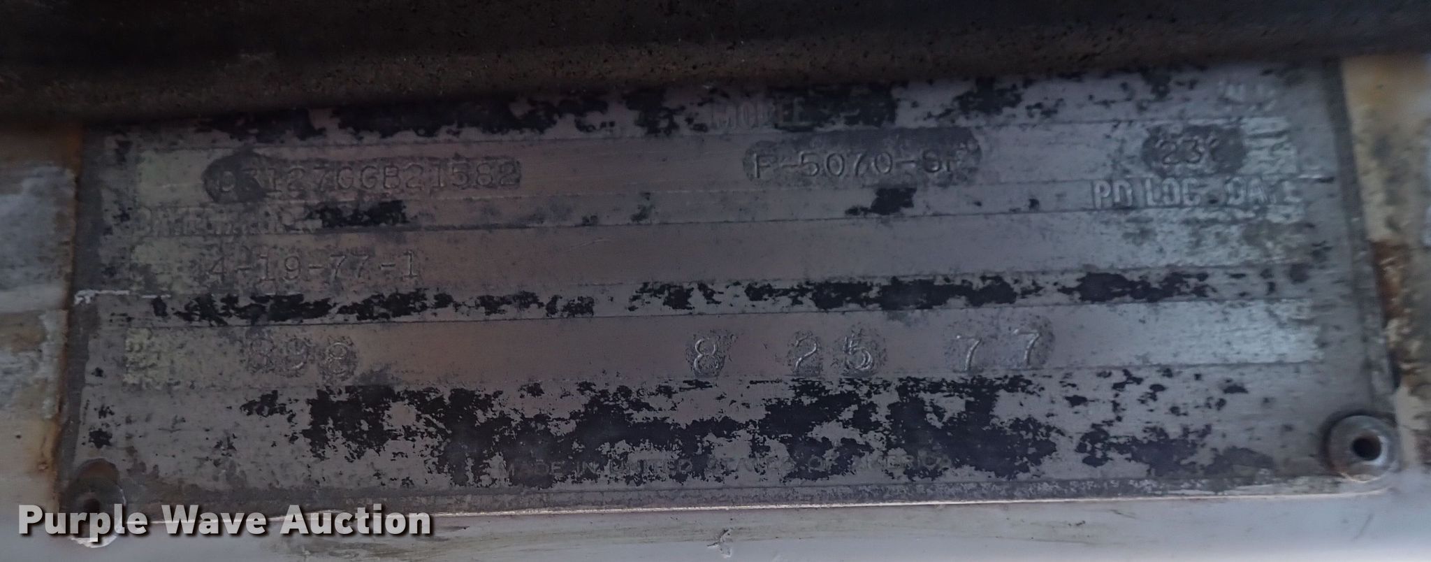 1977 International Paystar 5000 roll-off container truck. Miles: 15,424 on odometer, VIN: D3127GGB21582. Engine Cummins, Cylinders: 6, Fuel type: Diesel. Transmission Spicer P8516, Speed: 16. Chassis Axles: Tandem, Suspension: Spring, Brakes: Air, PTO. Interior Heat. Features Roll-off bed Galbreath U5-10-156, Serial: 853385, 21' L x 100" W. Tires Front: 385/65R22.5, Rear: 11R22.5. Notes Engine issues, Non-operational unit. Kansas title. Cook Construction LLC. Wichita, KS 67204
