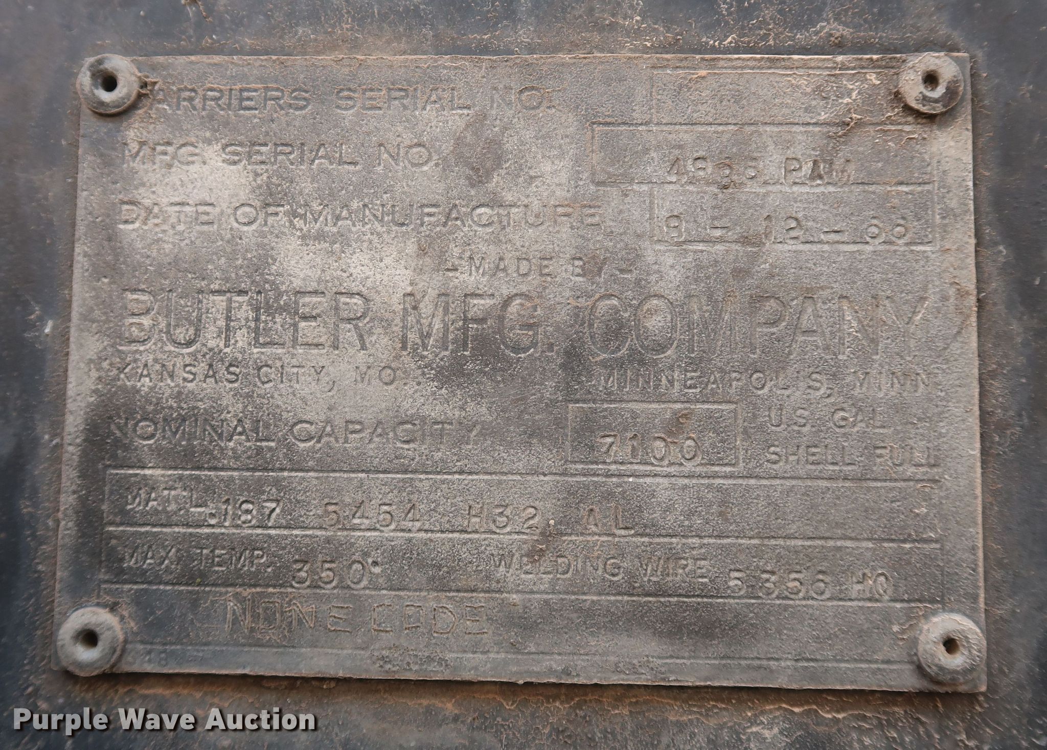 Purple Wave is selling a used Tank Trailer in Oklahoma. This item is a 1966 Butler tank trailer with the following: VIN: 4866PAM