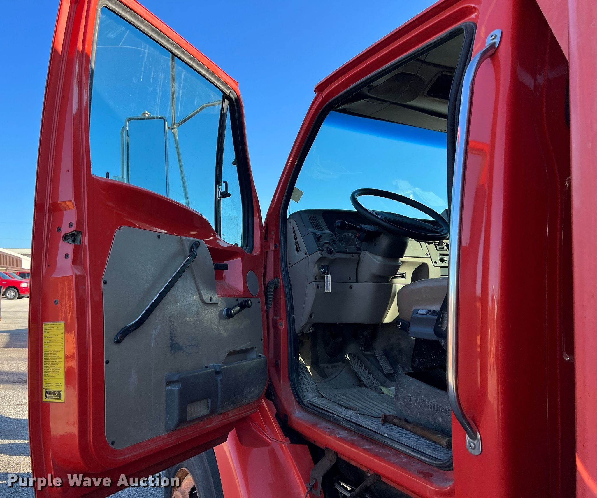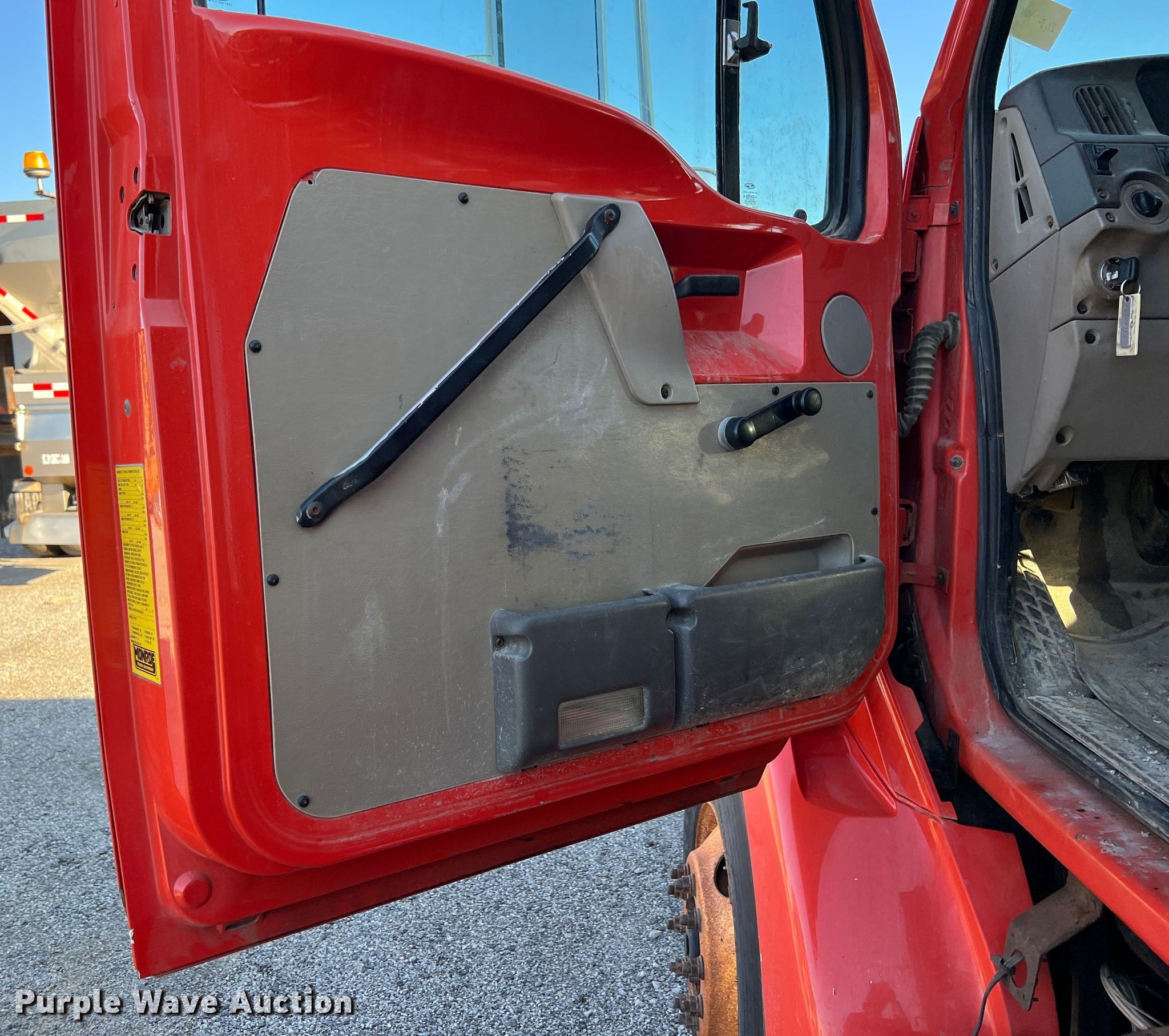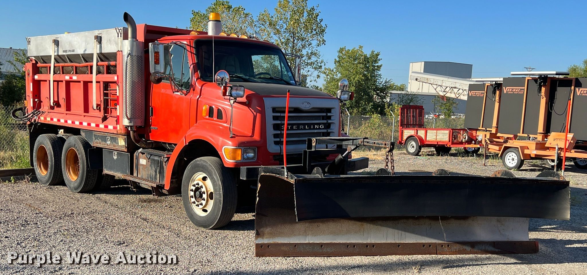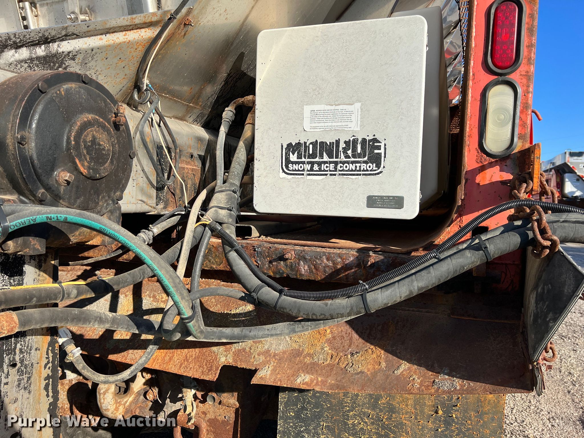 2003 Sterling LT7500 dump truck. Miles: 194,193 on odometer, Hours: 10,036 on meter, VIN: 2FZHATAK33AL69738, KDOT ID: 263-4013. Engine Caterpillar 3126, Displacement: 7.2L, Cylinders: 6, Fuel type: Diesel, HP: 250. Transmission Meritor RT-40-145, Automatic. Chassis Axles: Tandem, Suspension: Spring, Brakes: Air, GVWR: 53,880 lbs. Interior AC, Heat. Features Dump bed Monroe, Capacity: 9 cu.yd., 13' L x 8' W, Side height: 36", Bed type: Steel, Ram: Single, Spreader Monroe MV156-845911/KSSF2304, Capacity: 9 cu.yd., Plow Width: 132". Tires Size: 295/75R22.5. Notes Dash warning indicator: Check engine, Oil leak. Kansas title. Titles will be distributed after confirmation of payment and removal. Kansas Department of Transportation - Chanute. 411 W 14th St. Chanute, KS 66720