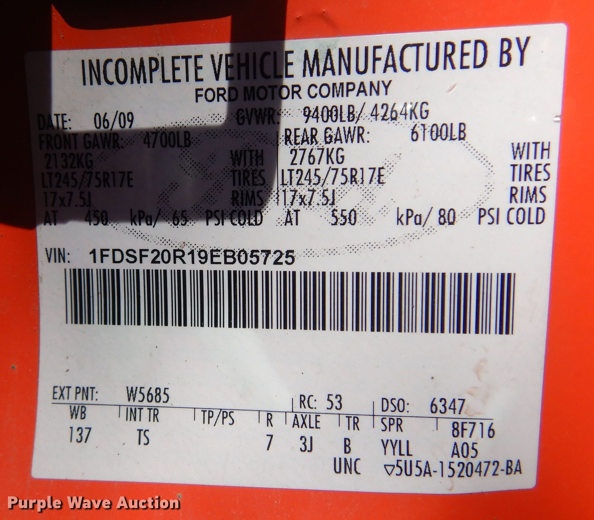 - VIN: 1FDSF20R19EB05725