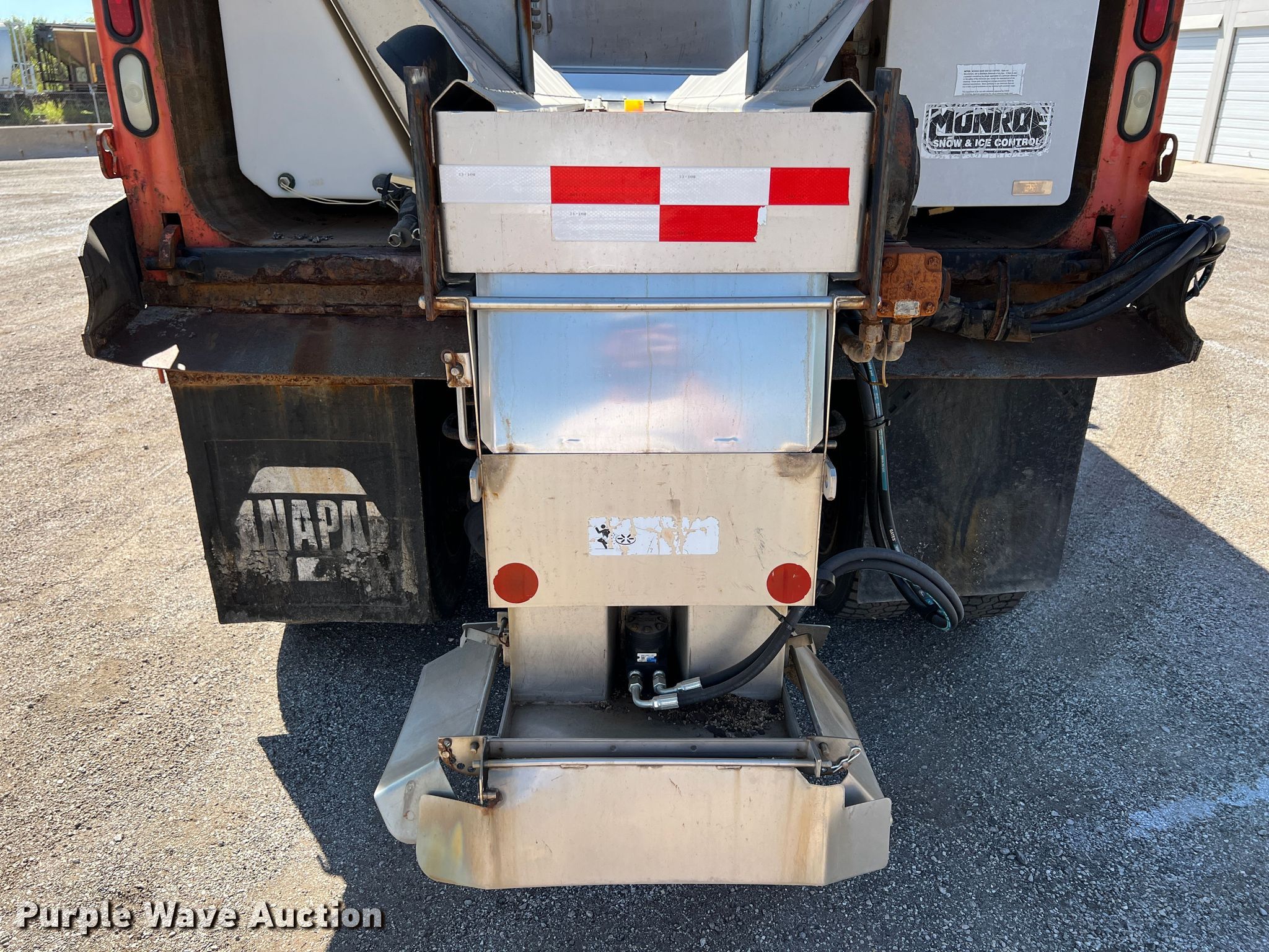 2003 International 7500 dump truck. Miles: 606,032 on odometer, Hours: 8,136 on meter, VIN: 1HTWPADT33J070061, KDOT ID: 264-4062. Engine International 530, Displacement: 8.7L, Cylinders: 6, Fuel type: Diesel. Transmission Automatic. Chassis Axles: Tandem, Suspension: Spring over walking beam, Brakes: Air, Wheelbase: 211". Interior AC, Heat. Features Dump bed Monroe, Capacity: 12 cu.yd., 15' L x 8' W, Side height: 50", Bed type: Steel, Roll tarp, Ram: Single, Spreader Monroe, Capacity: 12 cu.yd., Plow Monroe, Width: 144". Tires Front: 315/80R22.5, Rear: 295/75R22.5. Kansas title. Titles will be distributed after confirmation of payment and removal. Kansas Department of Transportation - Chanute. 411 W 14th St. Chanute, KS 66720