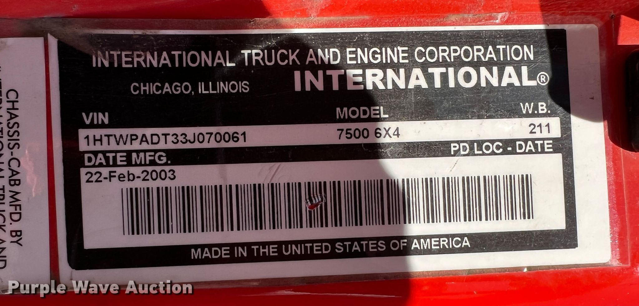 Purple Wave is selling a used Construction Dump Truck in Kansas. This item is a 2003 International 7500 dump truck with the following: Miles: 606,032 on odometer, Hours: 8,136 on meter, VIN: 1HTWPADT33J070061, KDOT ID: 264-4062
