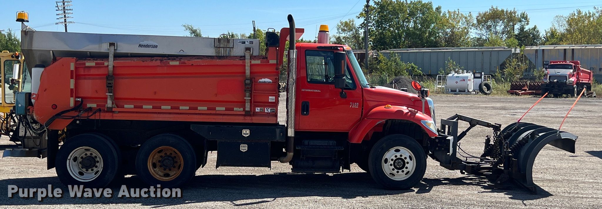 2005 International 7400 dump truck. Miles: 216,604 on odometer, Hours: 10,580 on meter, VIN: 1HTWHAAR05J139037, KDOT ID: 264-4034. Engine International DT466, Displacement: 7.6L, Cylinders: 6, Fuel type: Diesel. Transmission Allison MD3060, Automatic. Chassis Axles: Tandem, Suspension: Spring over walking beam, Brakes: Air. Interior AC, Heat, Heated mirrors. Features Dump bed Henderson, 13' L x 8' W, Side height: 40", Bed type: Steel, Roll tarp, Ram: Single, Spreader Henderson, Capacity: 9 cu.yd., Plow Henderson, Width: 132". Tires Size: 295/75R22.5. Kansas title. Titles will be distributed after confirmation of payment and removal. Kansas Department of Transportation - Chanute. 411 W 14th St. Chanute, KS 66720