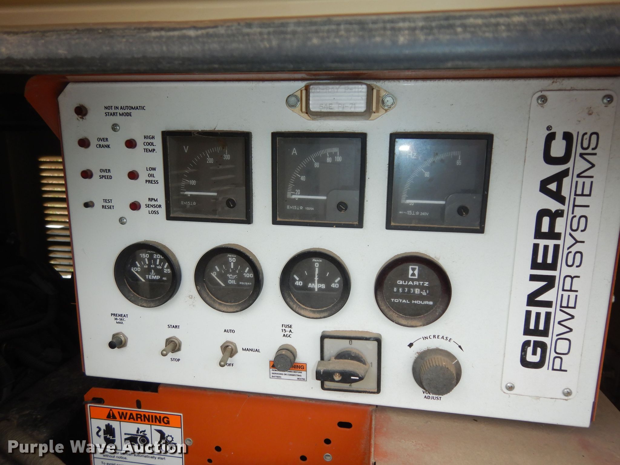 Purple Wave is selling a used Generator Set in Kansas. This item is a Generac 4886450200 generator with the following: Hours: 533 on meter, Serial: 2081501, KDOT ID: 1565