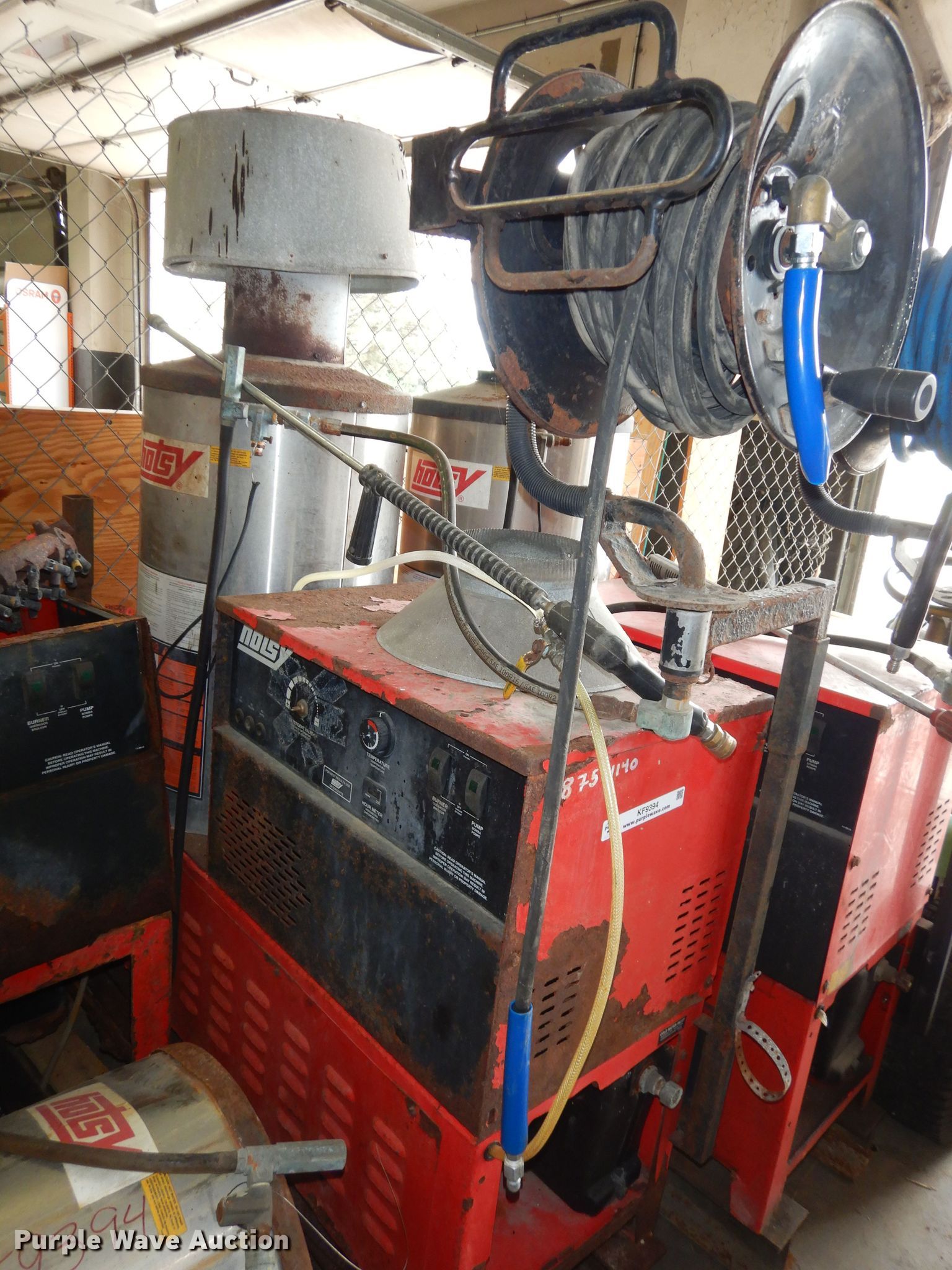 Purple Wave is selling a used Pressure Washer in Kansas. This item is a (2) 2010 Hotsy 982SS pressure washers with the following: Natural gas fired burner, One with hose reel and hose, Rust damage, Unknown operating condition, KDOT ID 875-1110, 875-1140