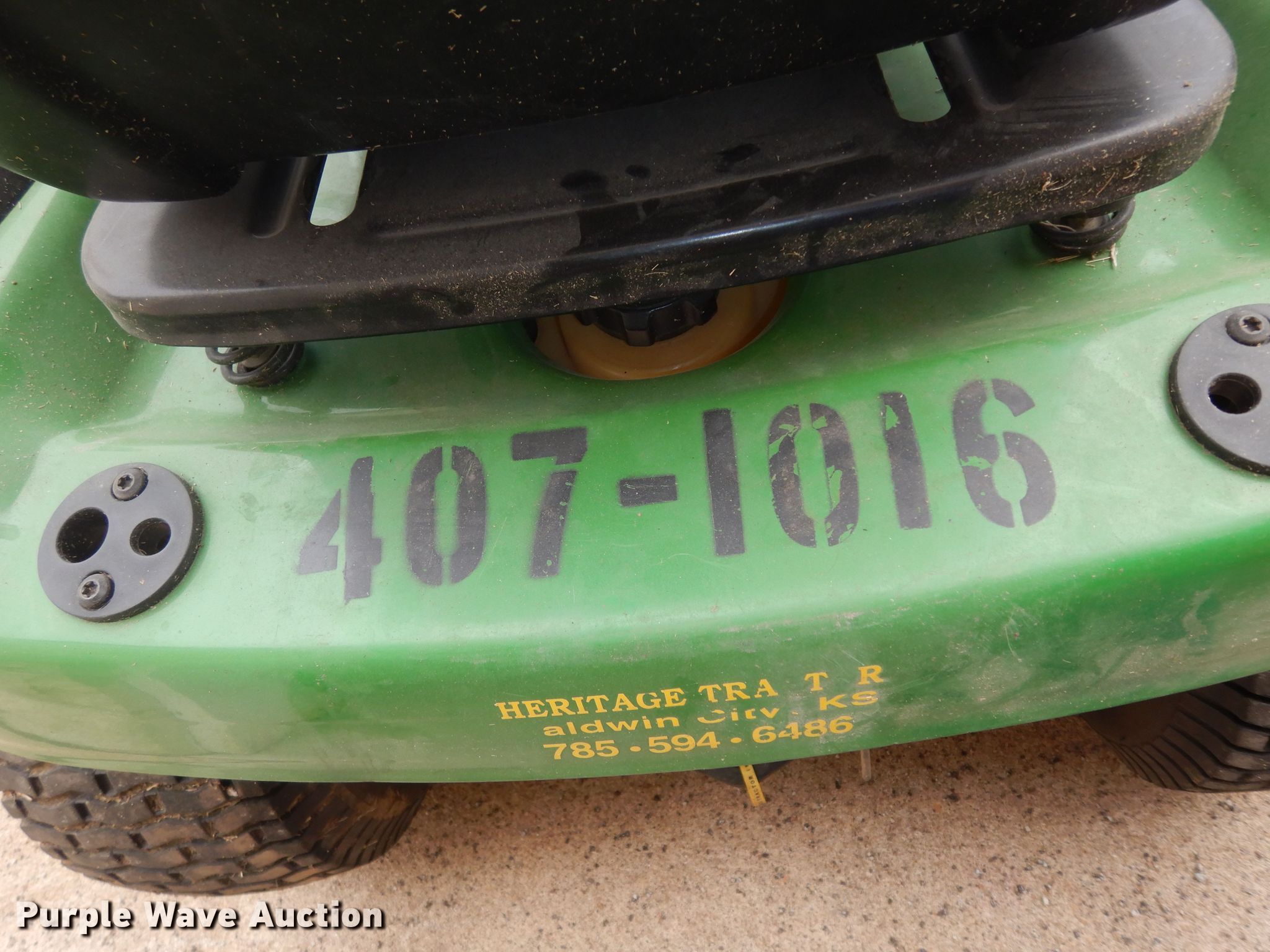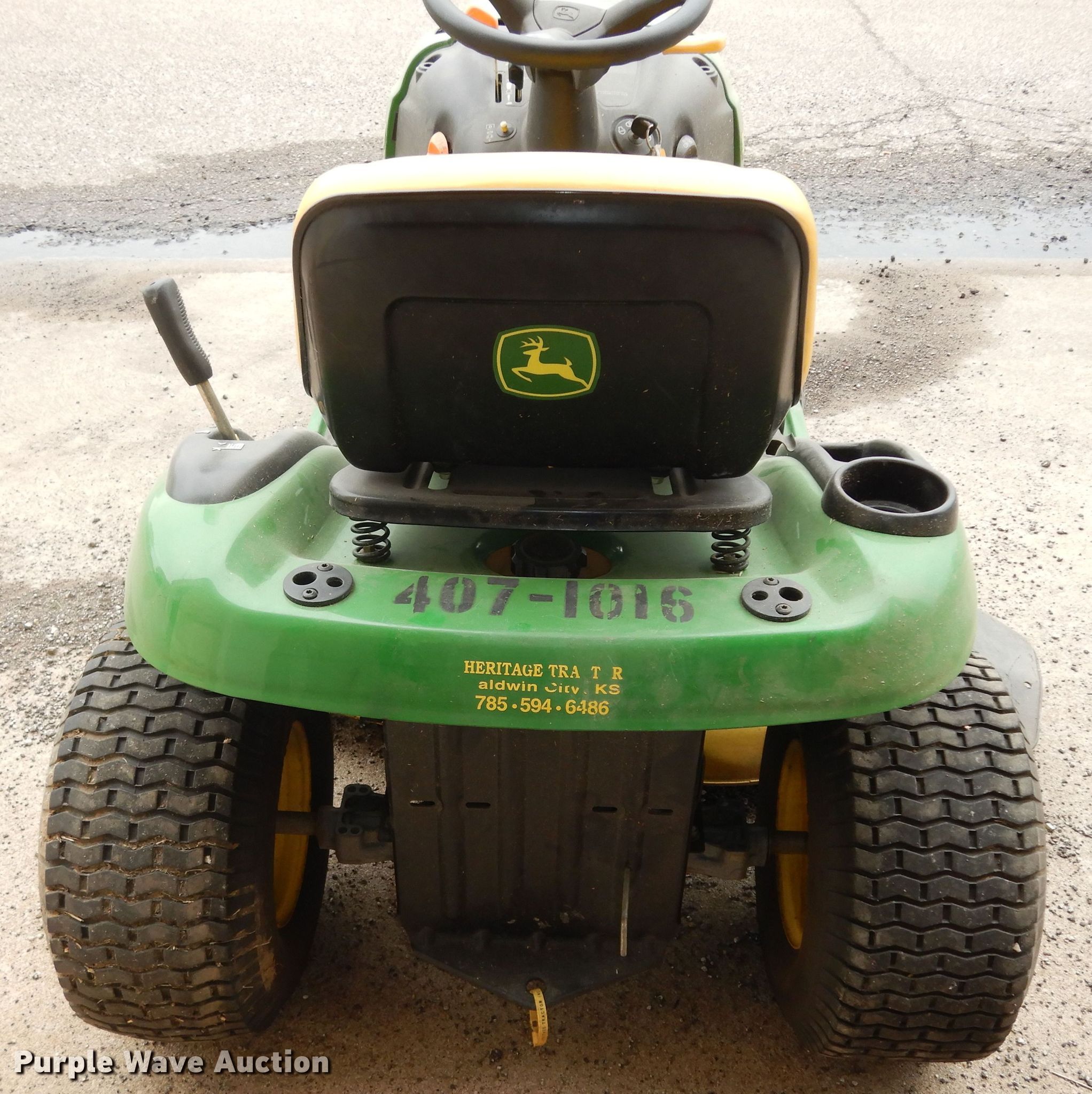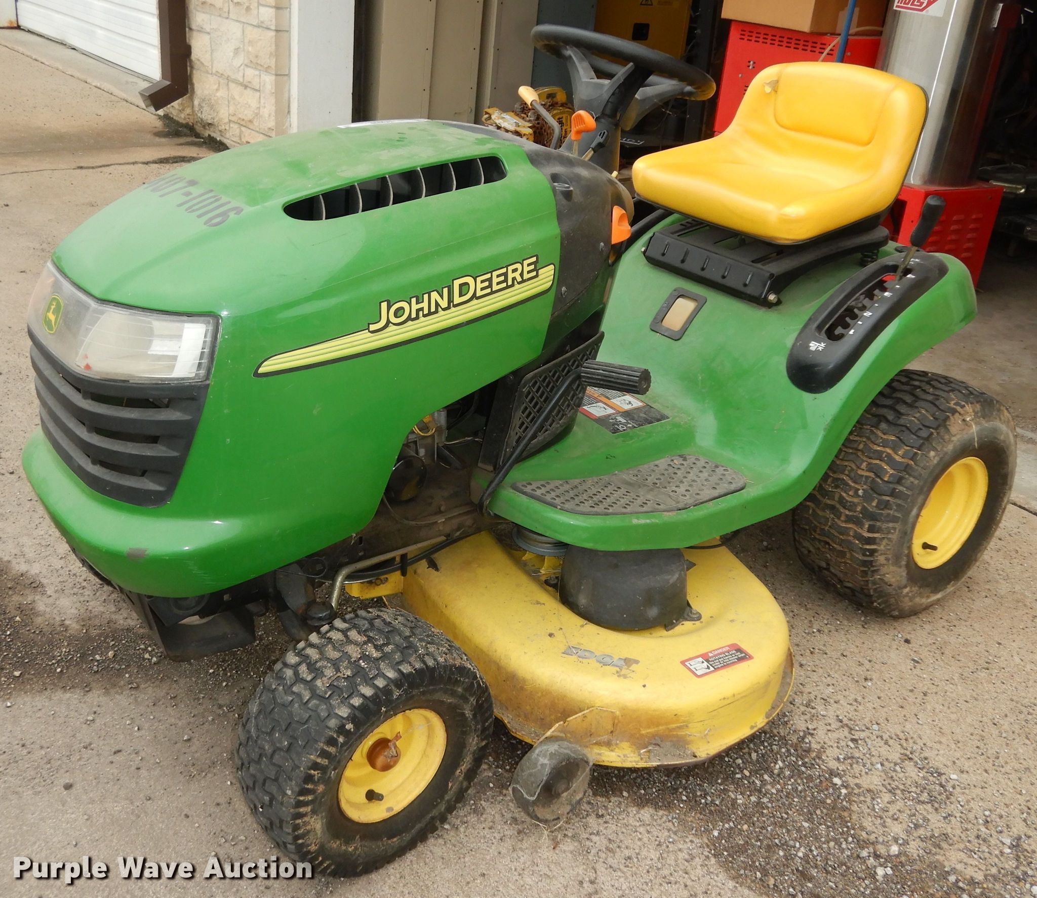Purple Wave is selling a used Lawn Mower in Kansas. This item is a 2005 John Deere L111 lawn mower with the following: Hours: 225 on meter, Cutting width: 39", Serial: GXL111A050737