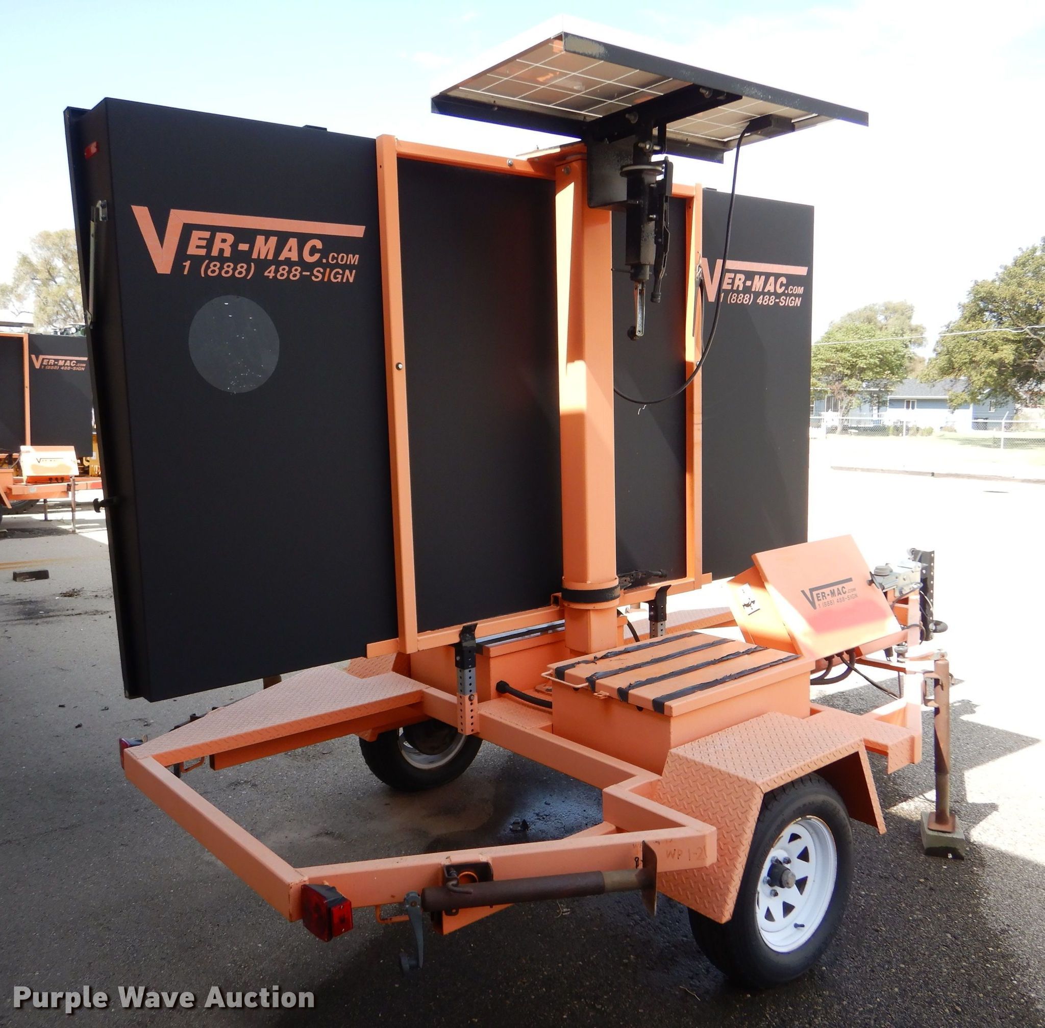Purple Wave is selling a used Road Safety Equip. in Kansas. This item is a 2007 Ver-Mac PCMS 1210 message board trailer with the following: VIN: 2S9US41297S132502, KDOT ID: 553-2017