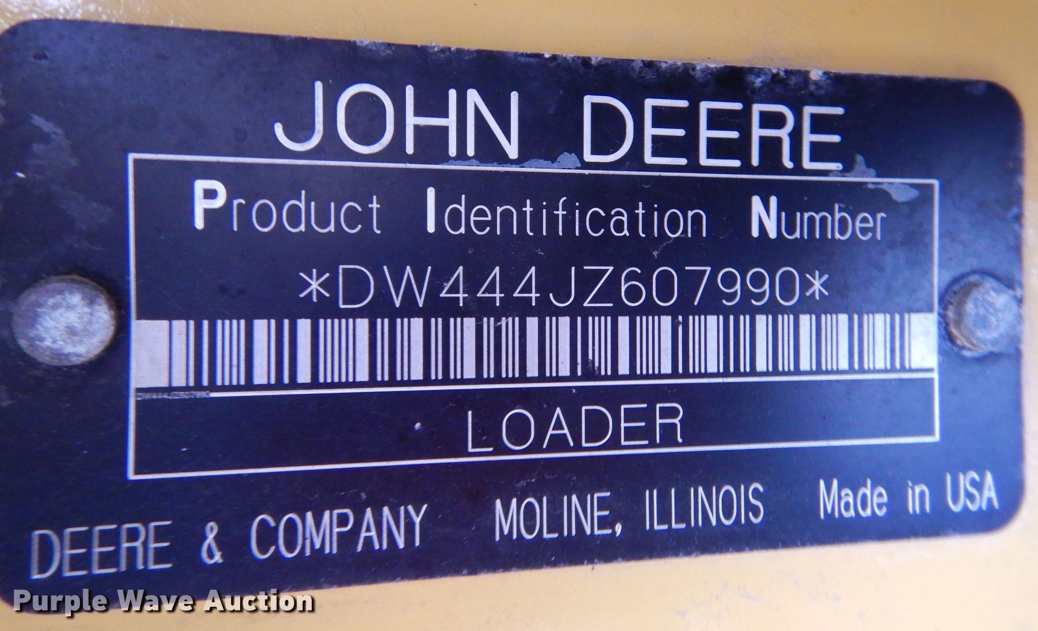 Purple Wave is selling a used Wheel Loader in Kansas. This item is a 2006 John Deere 444J wheel loader with the following: Hours: 4,503 on meter, Serial: DW444JZ607990, KDOT ID: 365-3076