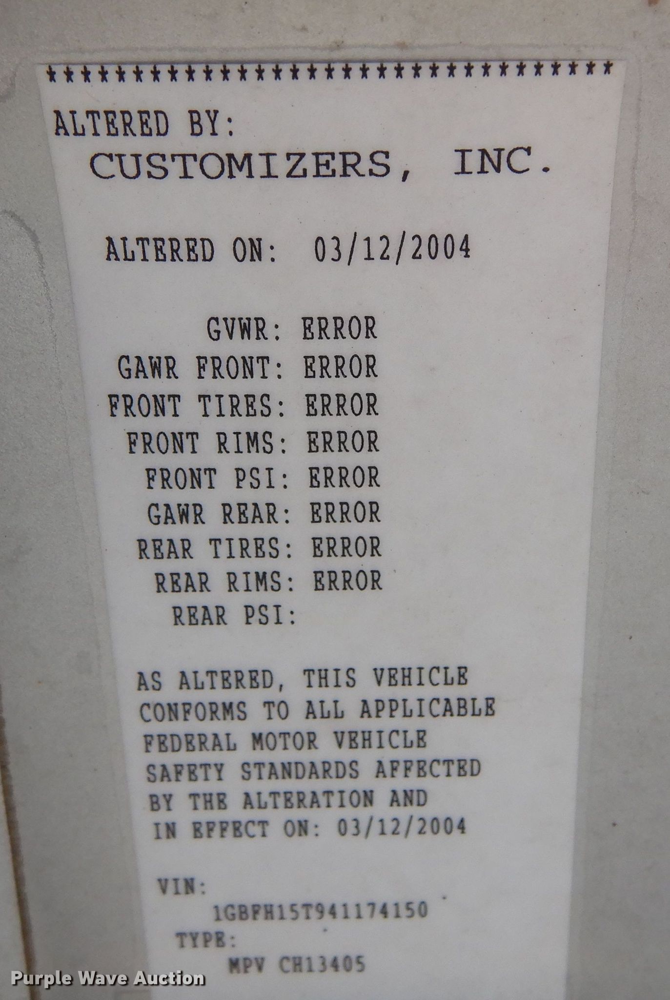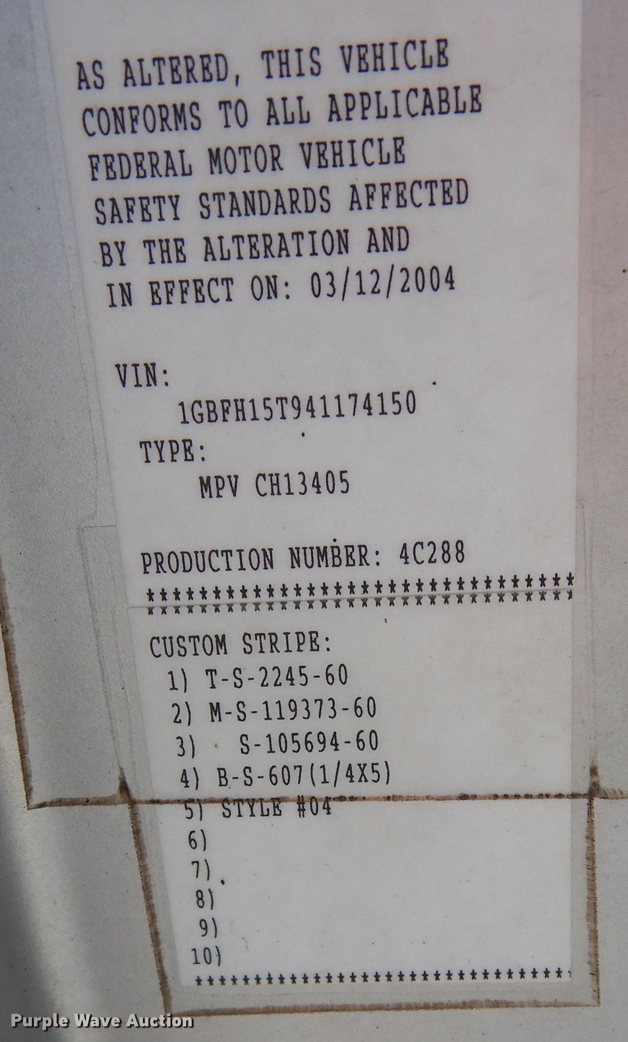• VIN: 1GBFH15T941174150