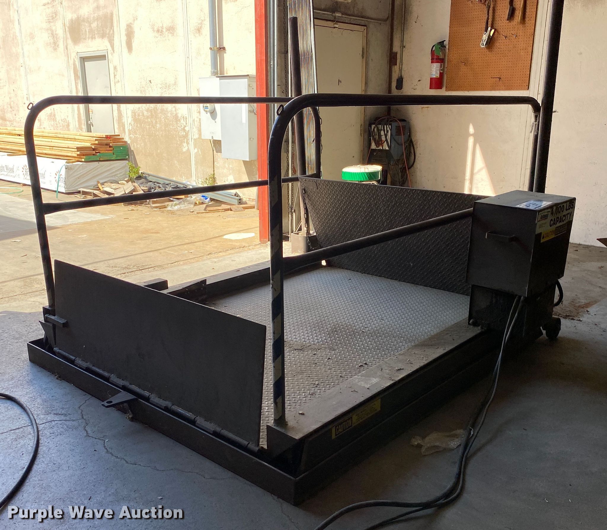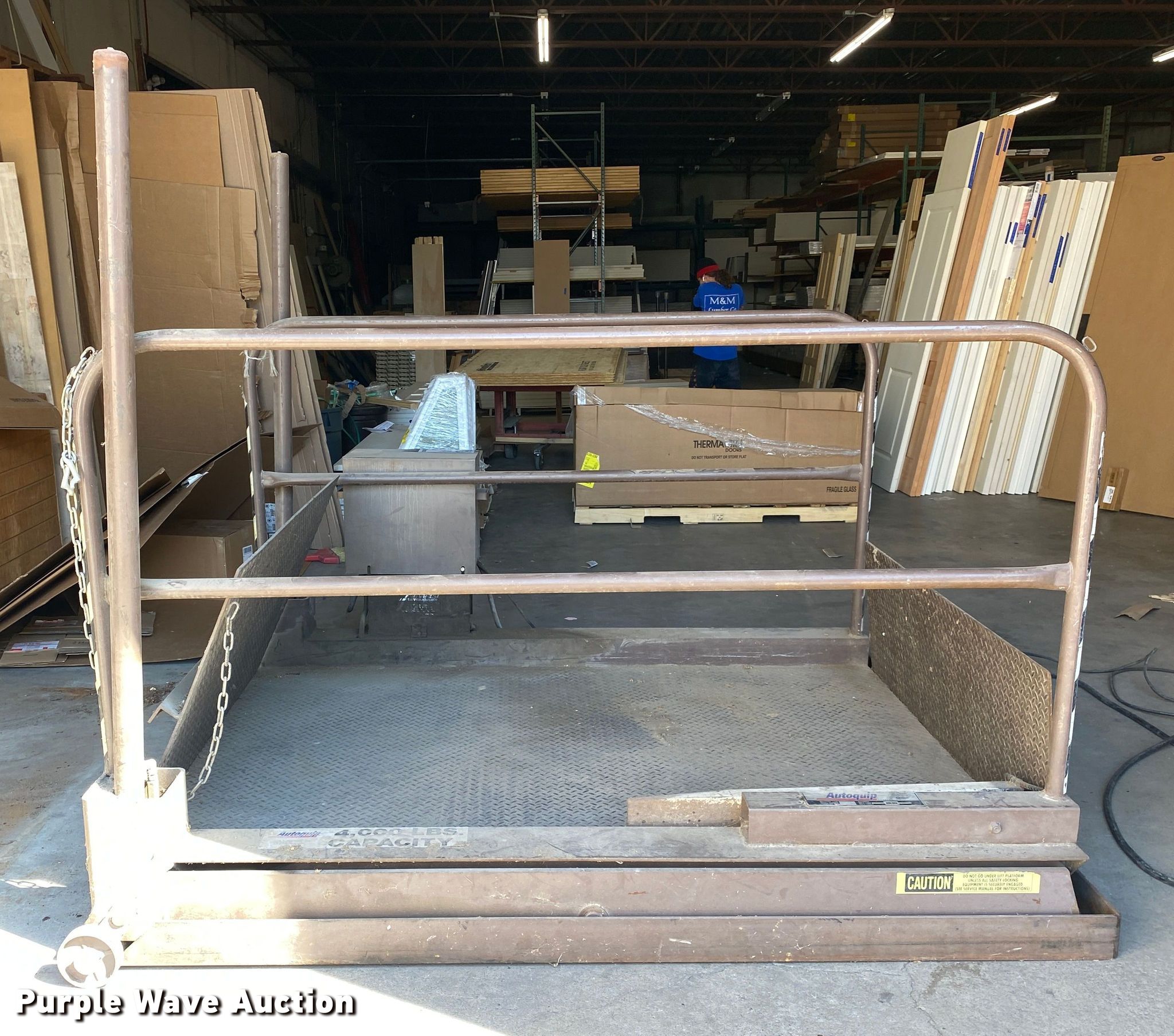 Autoquip PDQ-40 scissor lift. Serial: 110054044. Electric Motor Volts: 240. Features Maximum lift capacity: 4,000 lbs, Maximum lift height: 5', Platform: 7" L x 61" W. M & M Lumber Co.. 4711 South Mingo Road. Tulsa, OK 74146