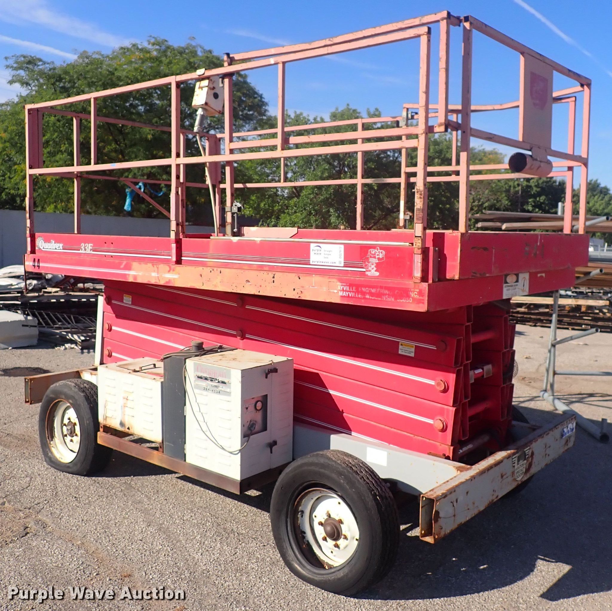 Purple Wave is selling a used Scissor or Vertical Lift in Kansas. This item is a Quadrex 33E scissor lift with the following: Volts: 48