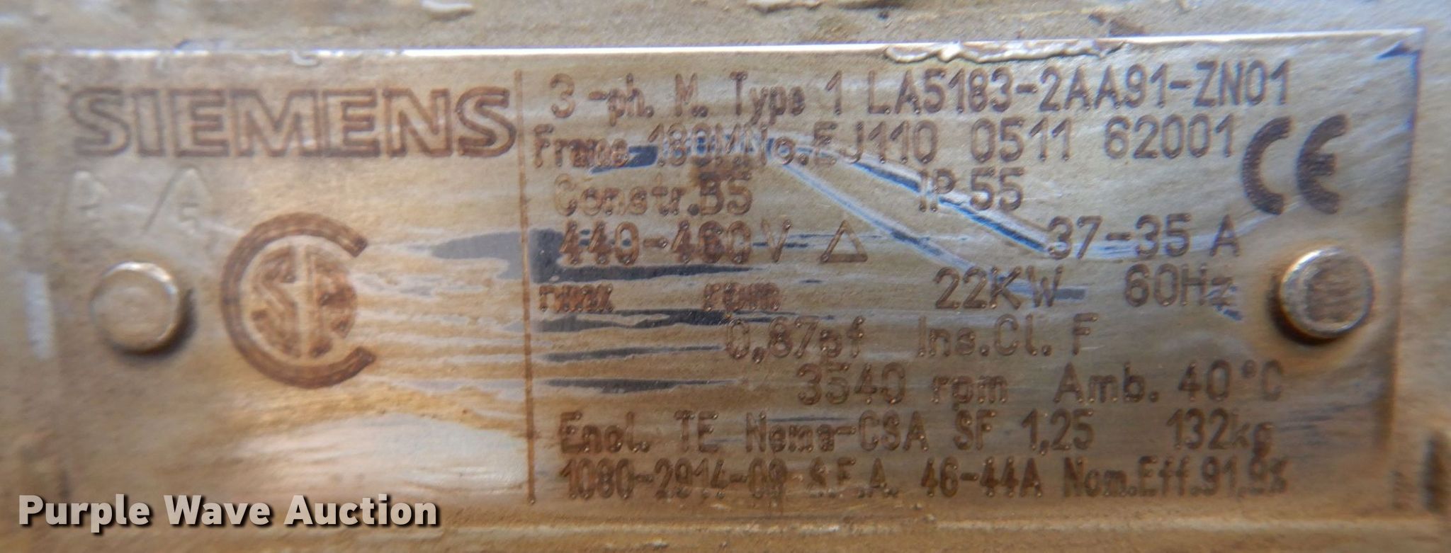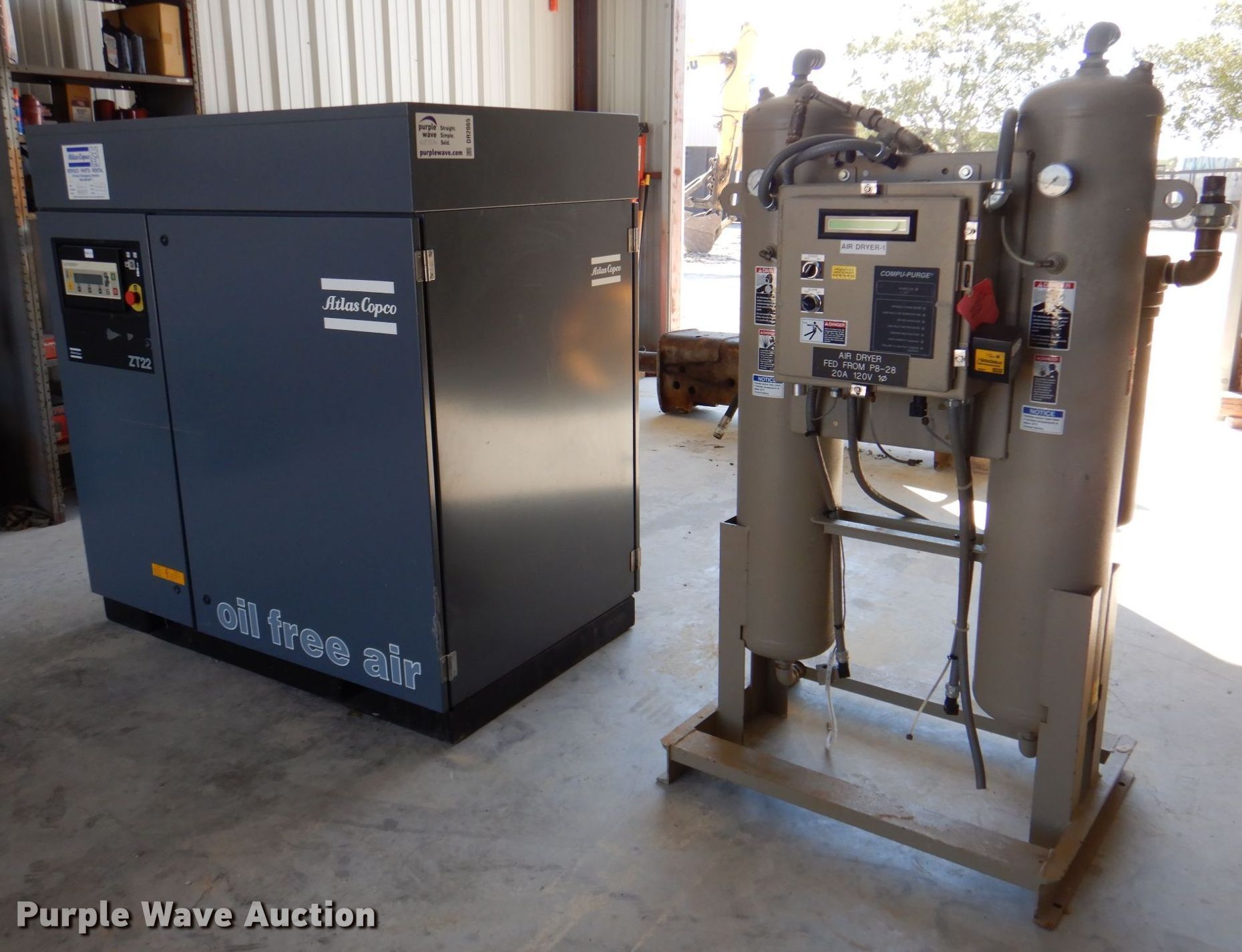1997 Atlas Copco ZT22 air compressor. Hours: Unknown, Serial: ATF 040335. Electric Motor Siemens, HP: 55, kW: 22, Volts: 440/460, Phase: Three. Features Air compressor PSI: 125, Skid mounted. Air Dryer Deltech Compu-purge , Model: PS161-BCFHMR, PSI: 150. Notes Unknown operating condition. 201 County Road 260. Liberty Hill, TX 78642