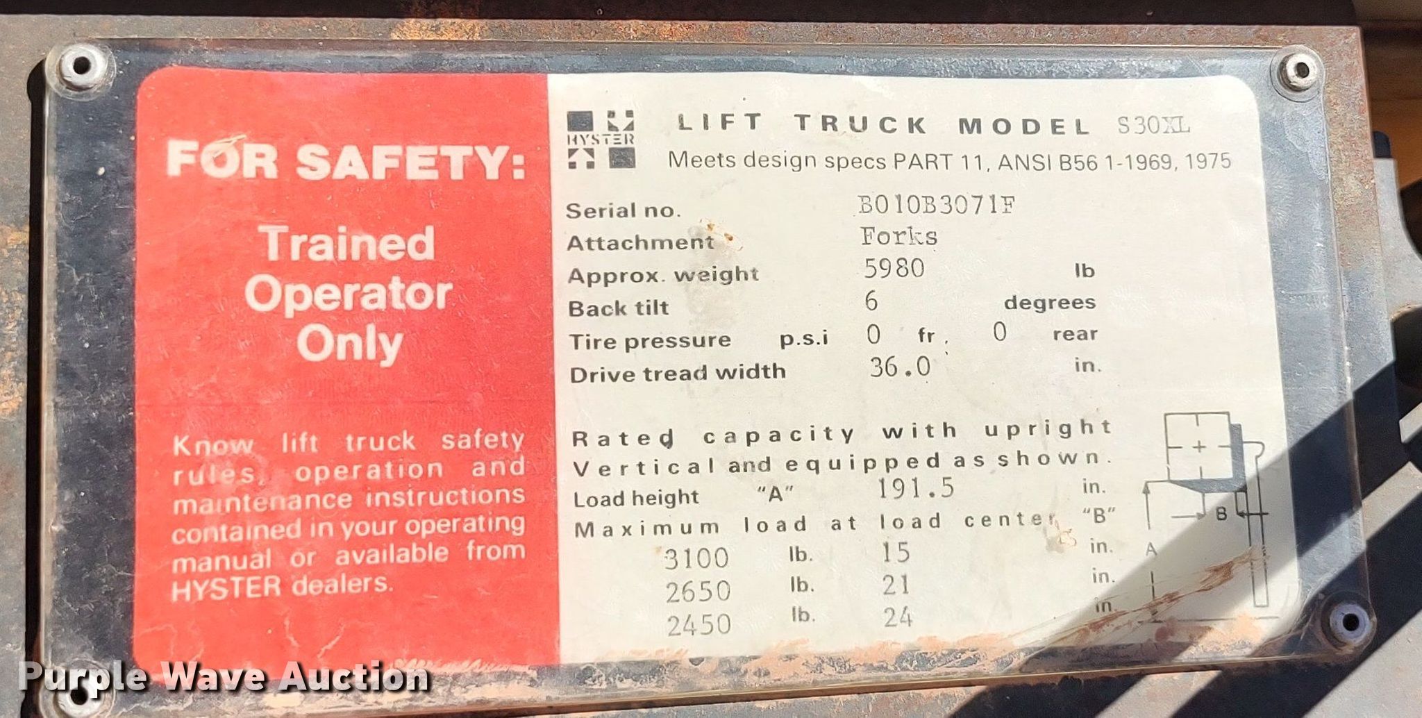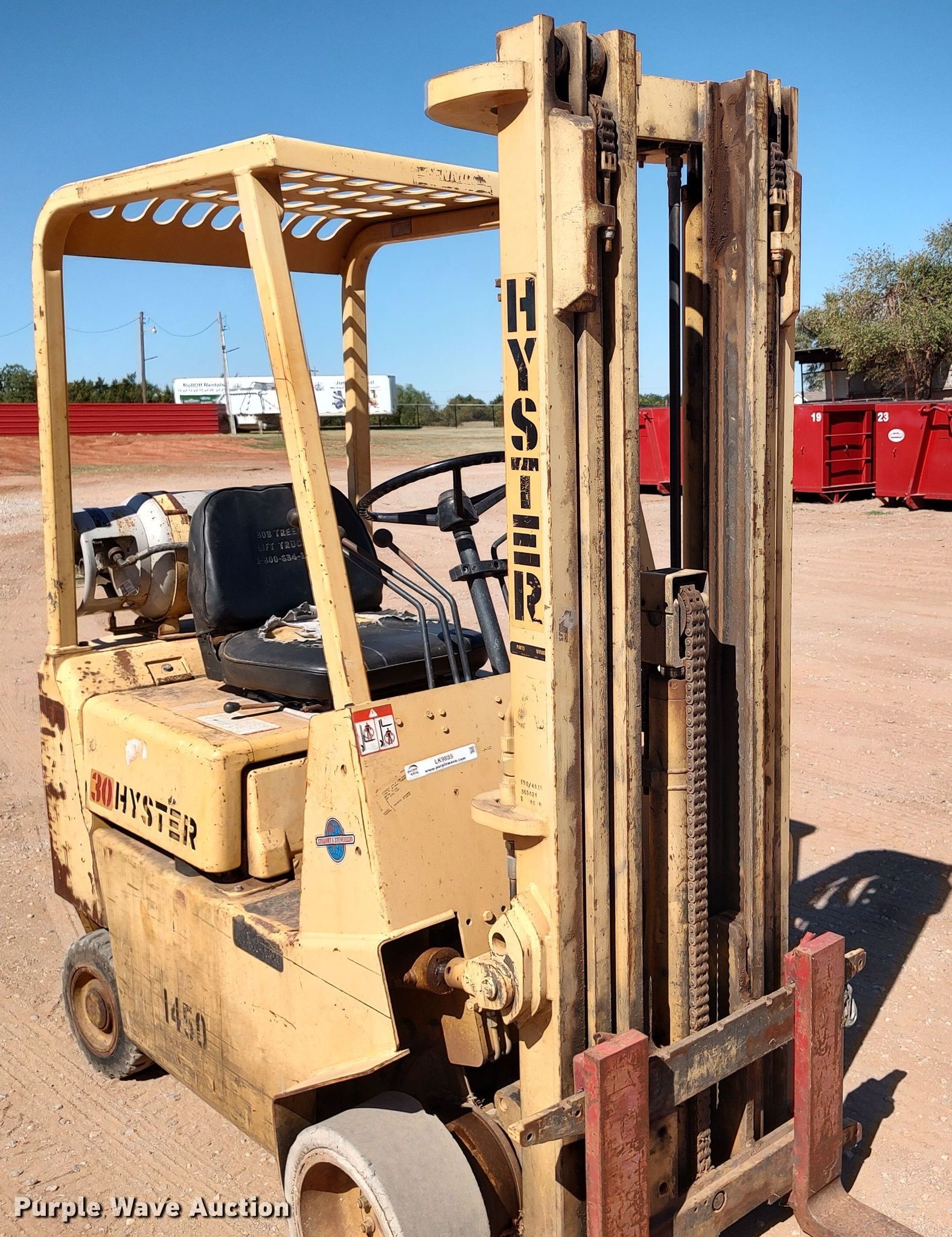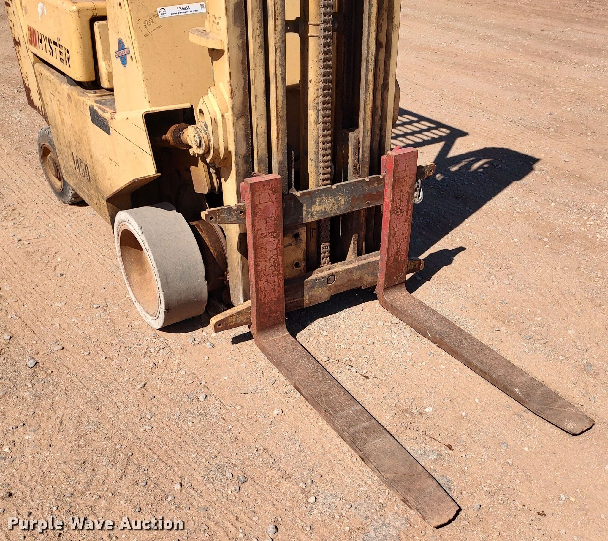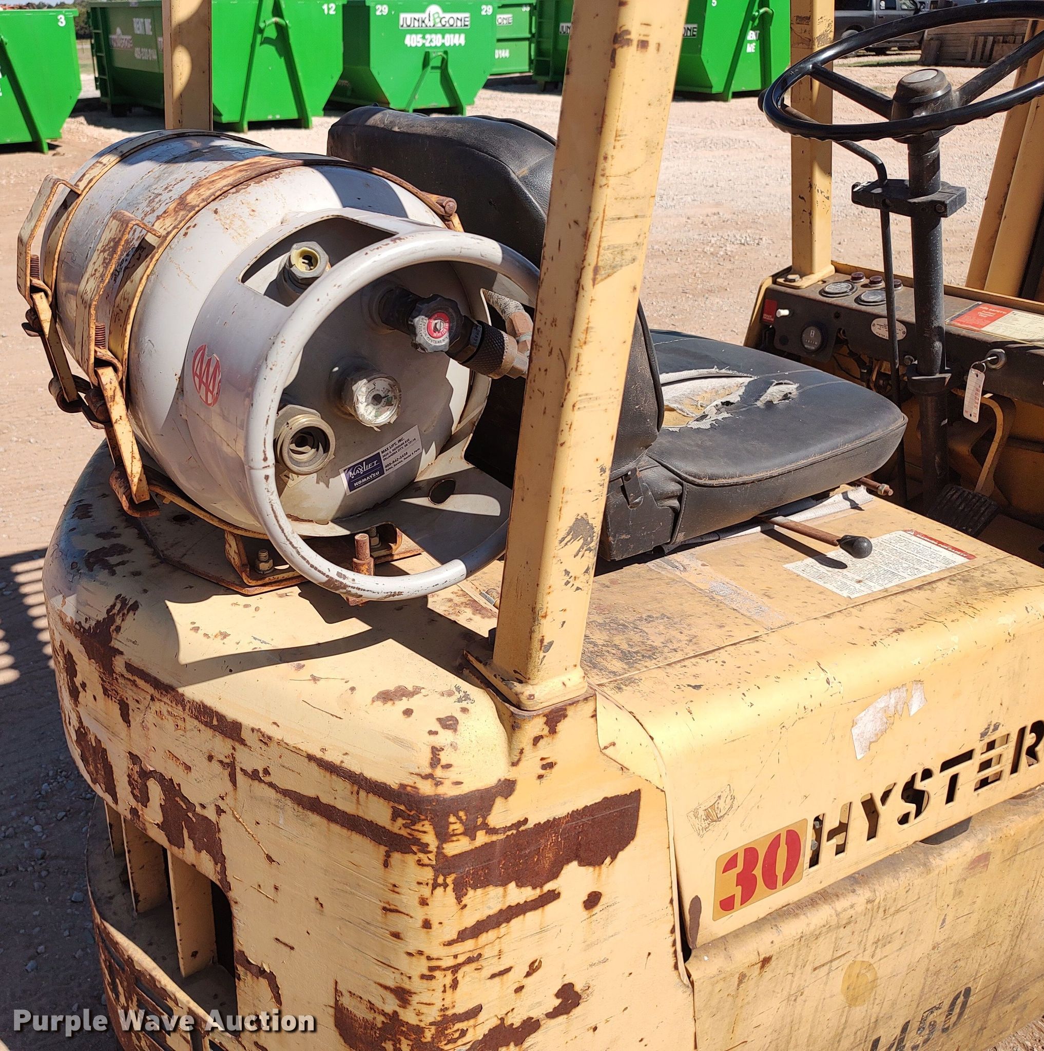 Purple Wave is selling a used Warehouse Forklift in Oklahoma. This item is a Hyster S30XL forklift with the following: Hours: 6,871 on meter, Serial: B010B3071F