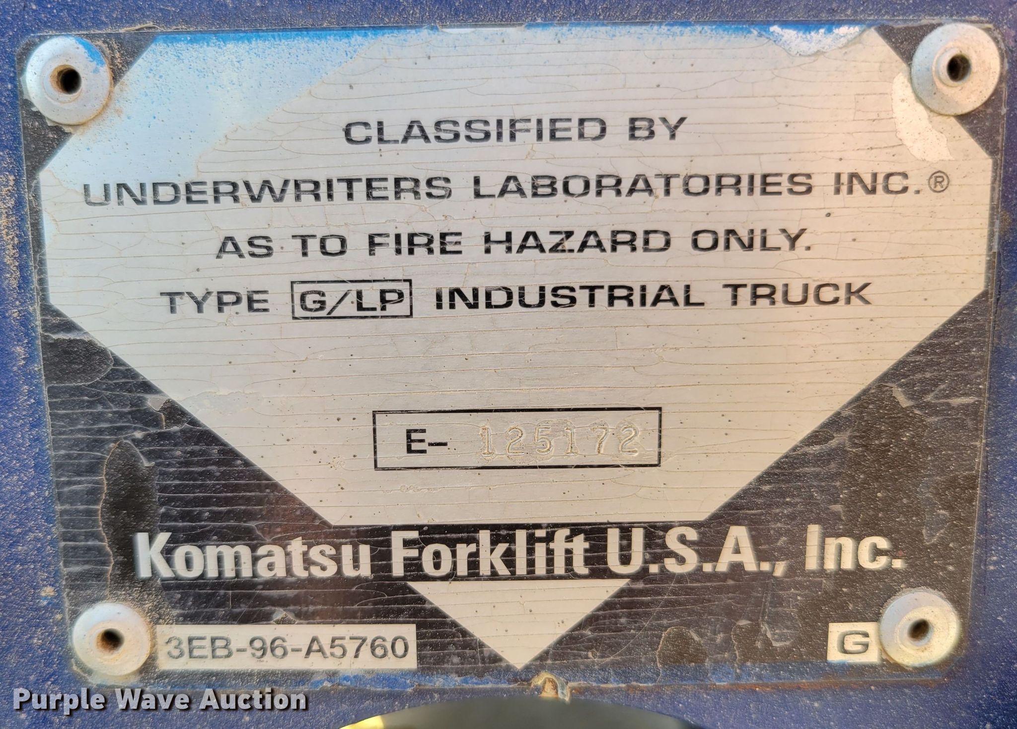 Purple Wave is selling a used Warehouse Forklift in Nebraska. This item is a Komatsu FG25T-12 forklift with the following: Hours: 4,646 on meter, Serial: 516543A