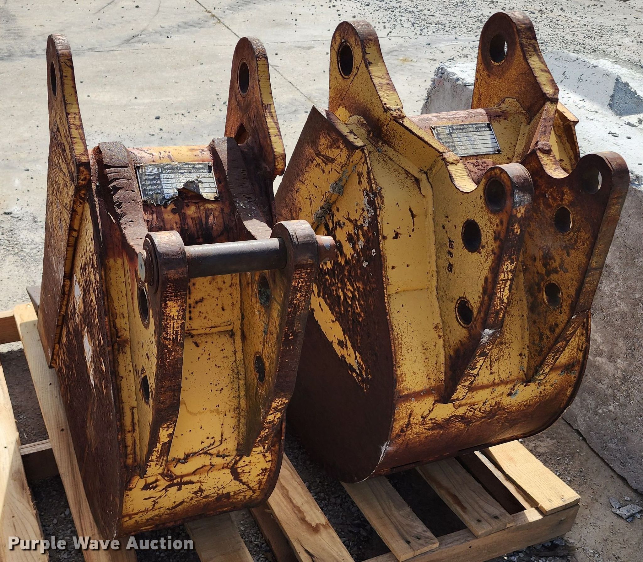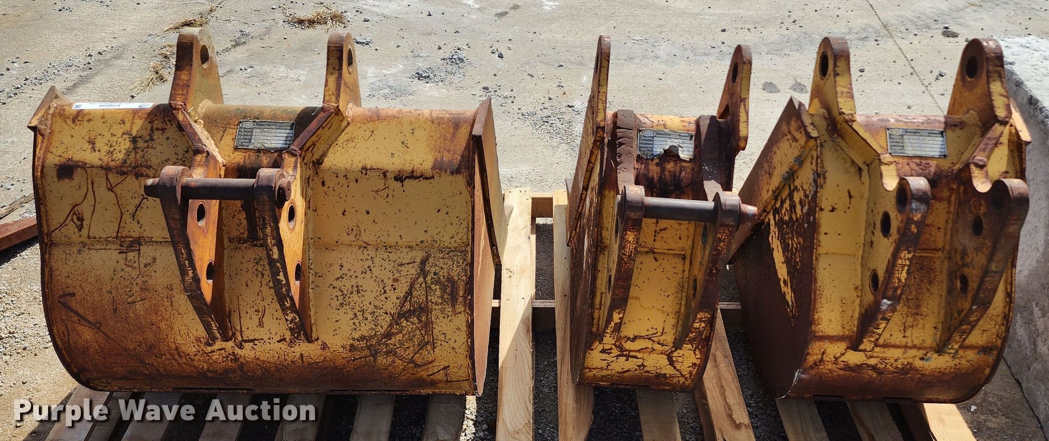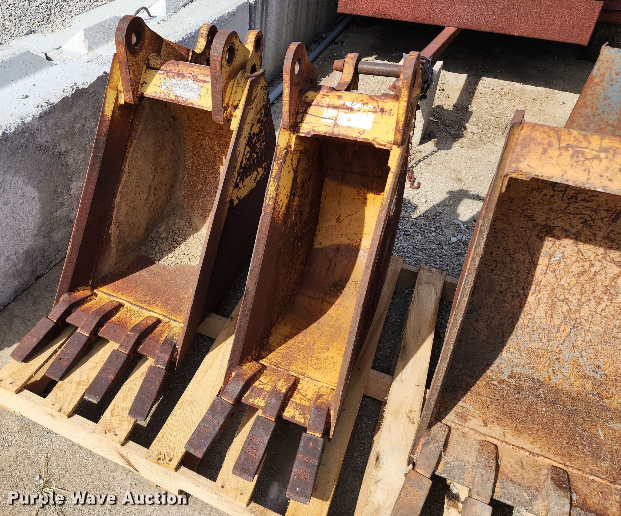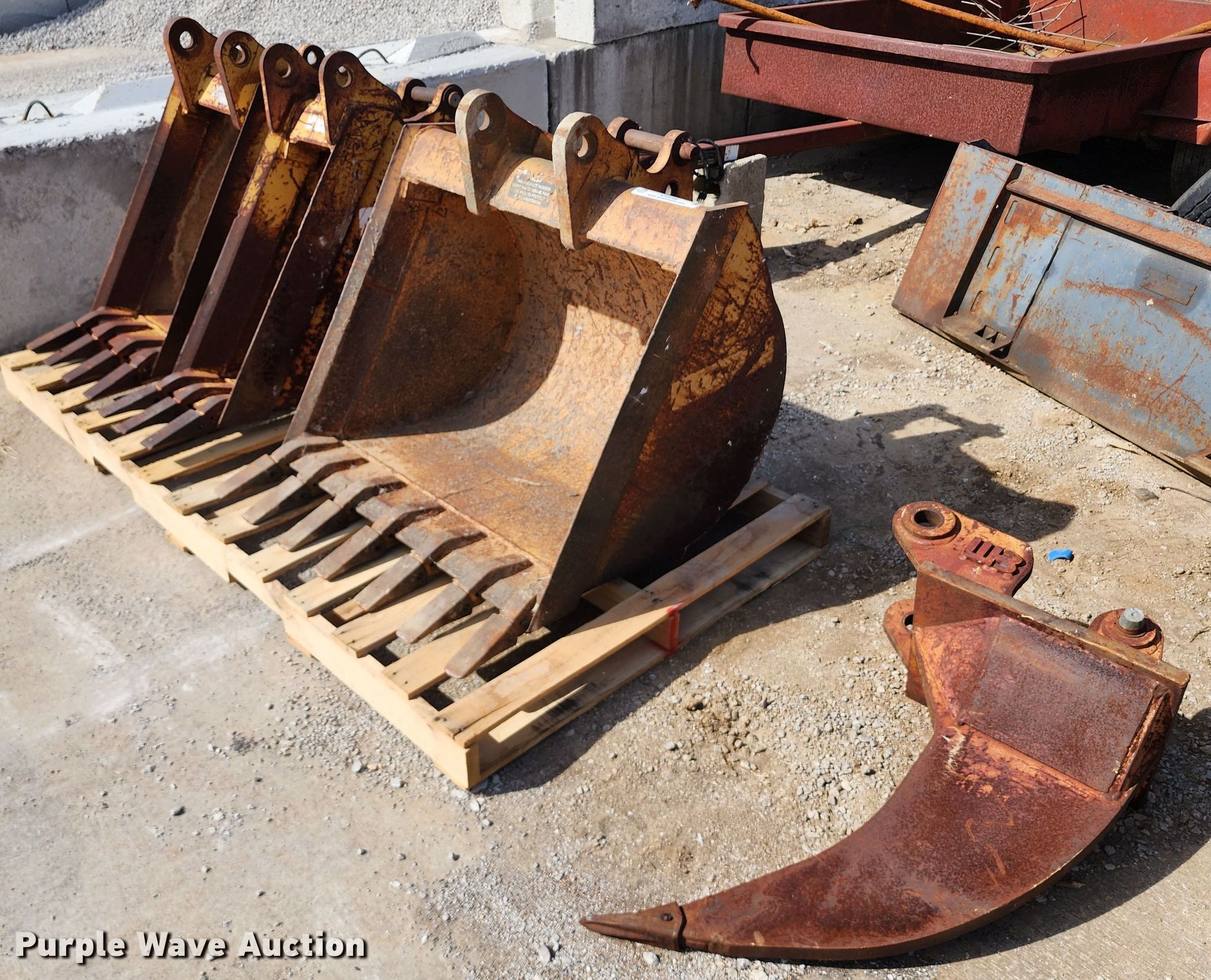 Purple Wave is selling a used Backhoe Attach. in Missouri. This item is a (4) Case backhoe attachments with the following: (3) buckets, 36" W, 12" W, 18" W, 32" L ripper attachment
