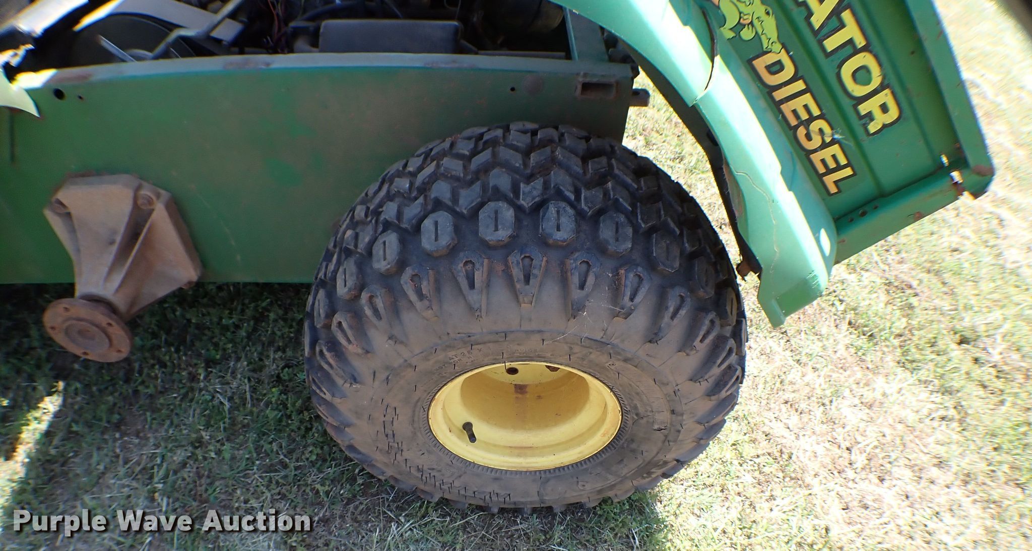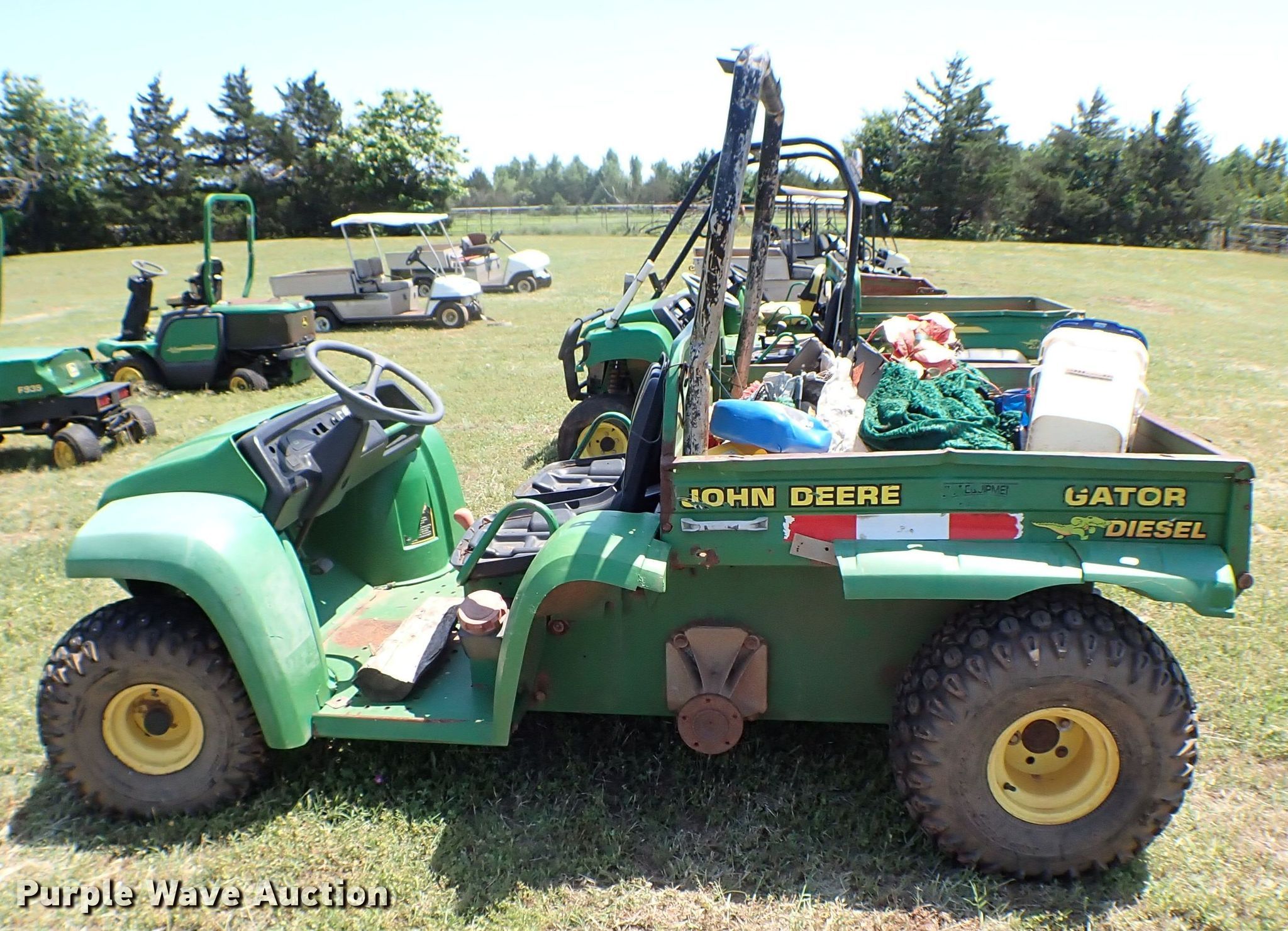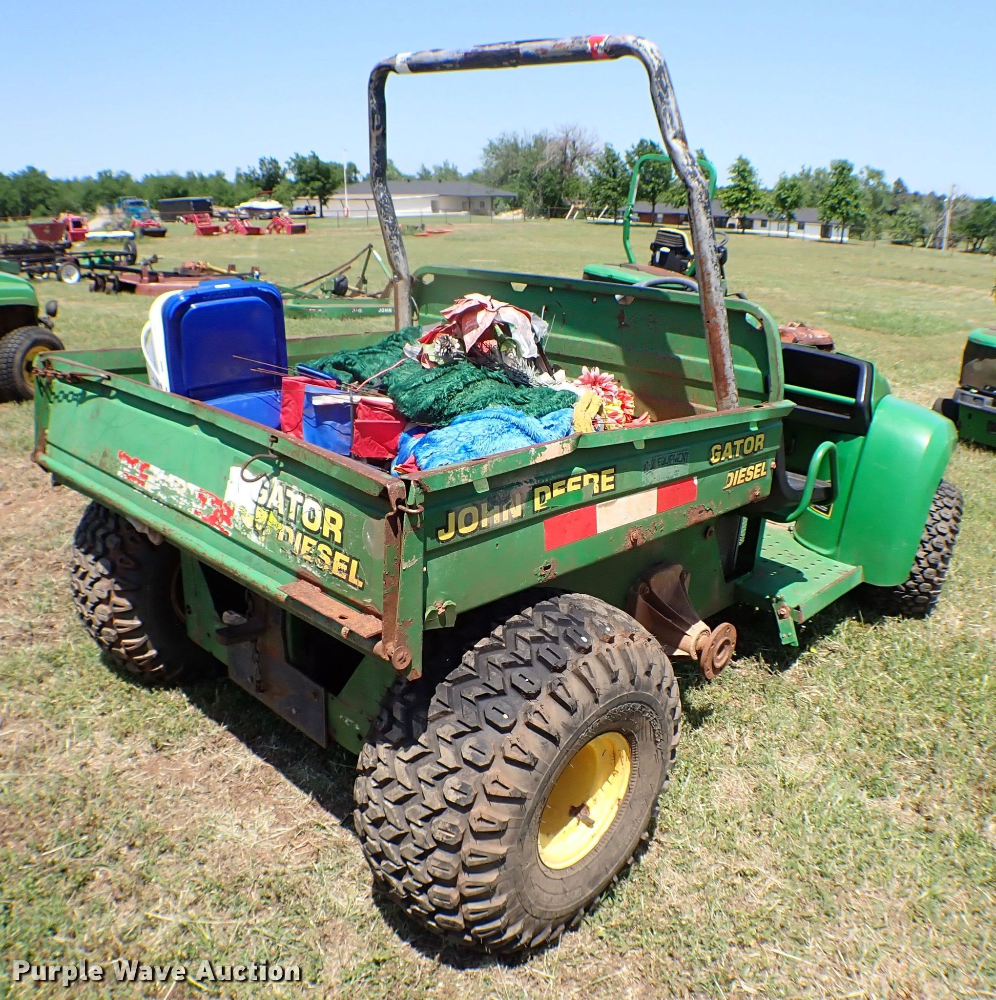1998 John Deere Gator utility vehicle. Hours: 6,671 on meter, VIN: W006X4D006000. Engine John Deere 3003D003, Serial: CH3007D005350, Cylinders: 3, Fuel type: Diesel, Electric start. Transmission Automatic. Operators station Passengers: 2. Operational Dump bed 40" L x 50" W, Dump bed type: Manual. Tires Front: 22.5x10-8, Rear: 25x13.00-9. Notes Unknown operating condition. Transfer of ownership documentation will be a bill of sale. SBG Services, Inc.. Edmond, OK 73034