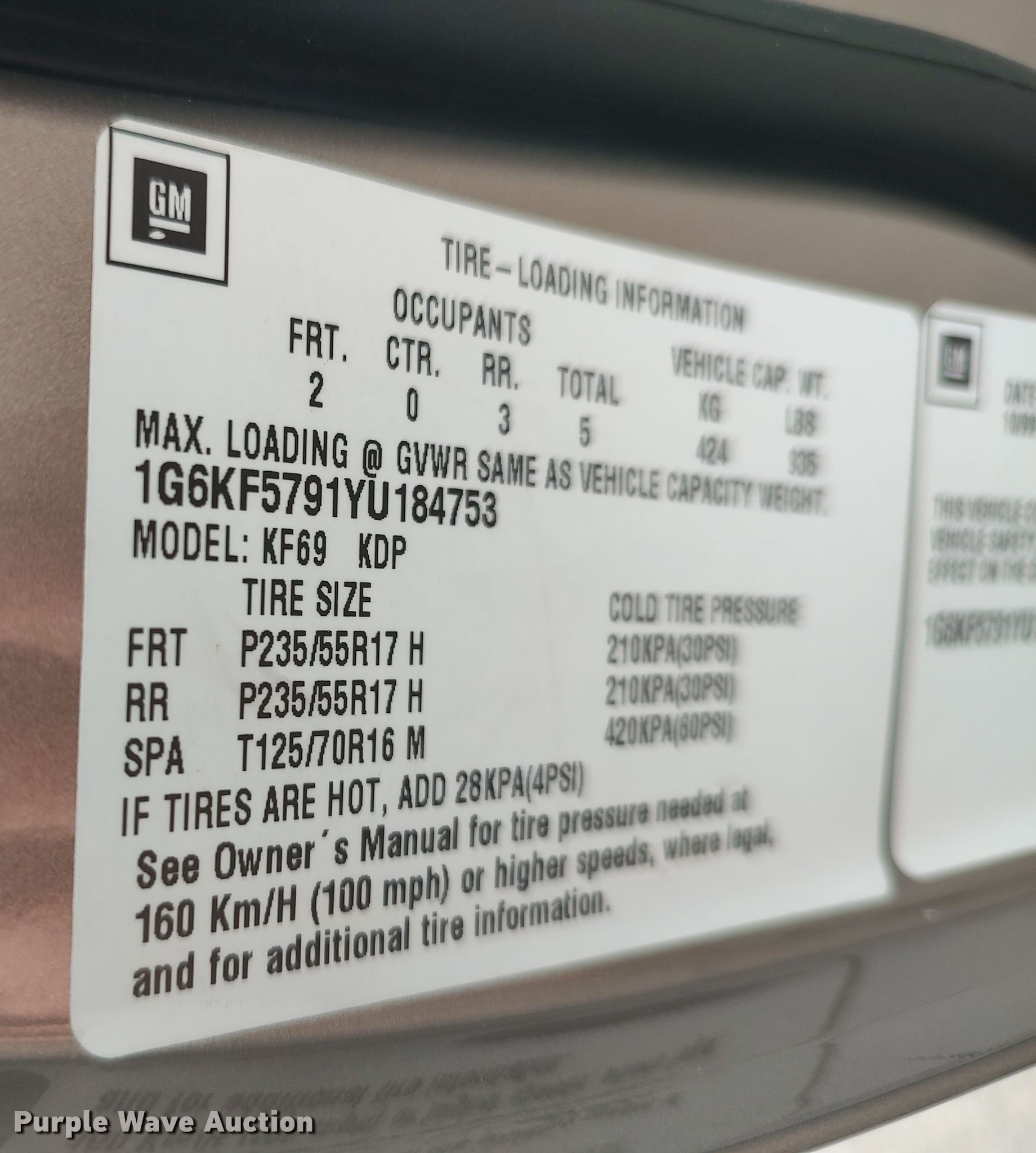 Purple Wave is selling a used Passenger Vehicle in Oklahoma. This item is a 2000 Cadillac DeVille DTS with the following: Miles: 70,484 on odometer, VIN: 1G6KF5791YU184753