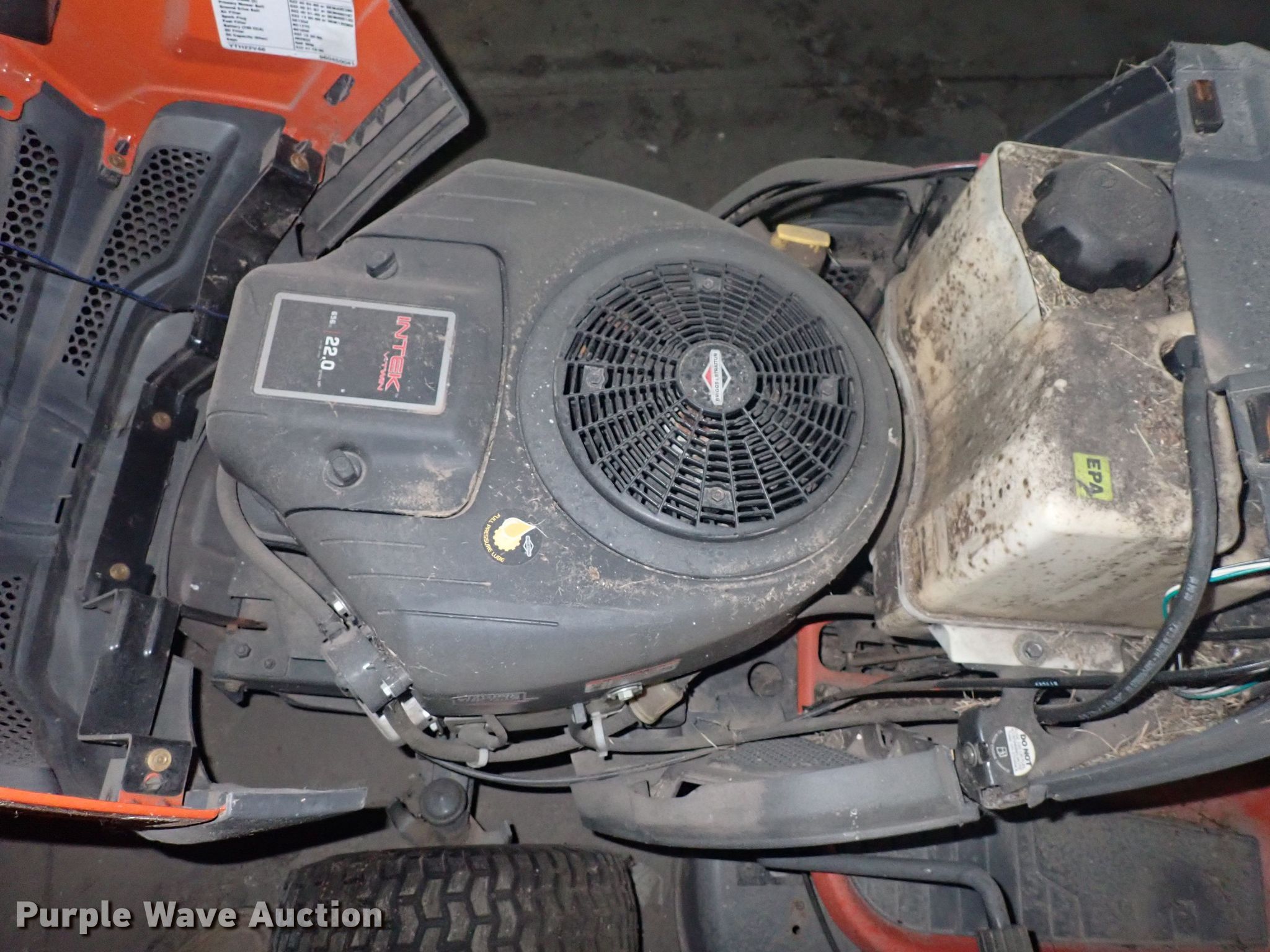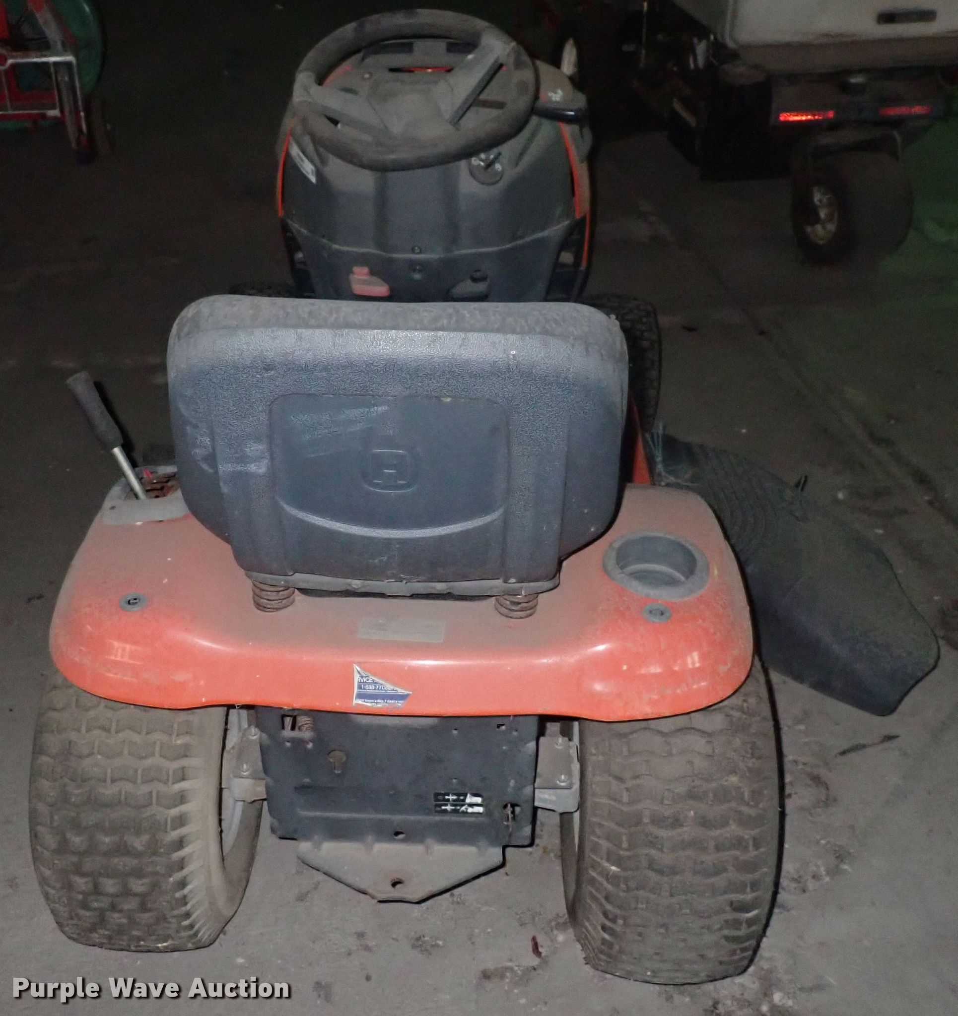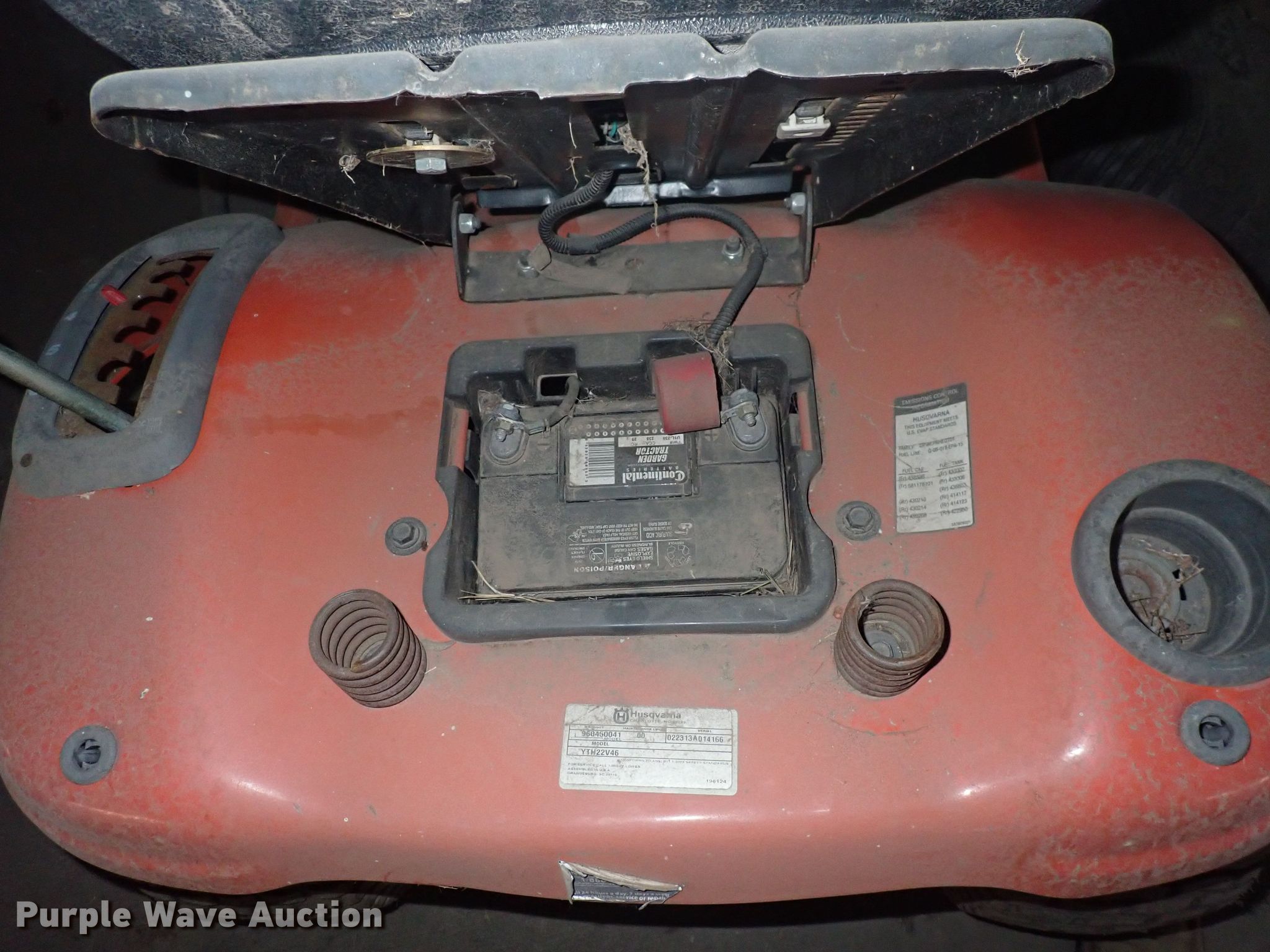 Purple Wave is selling a used Lawn Mower in Kansas. This item is a Husqvarna YTH22V46 lawn mower with the following: Cutting width: 46", Serial: 960450041