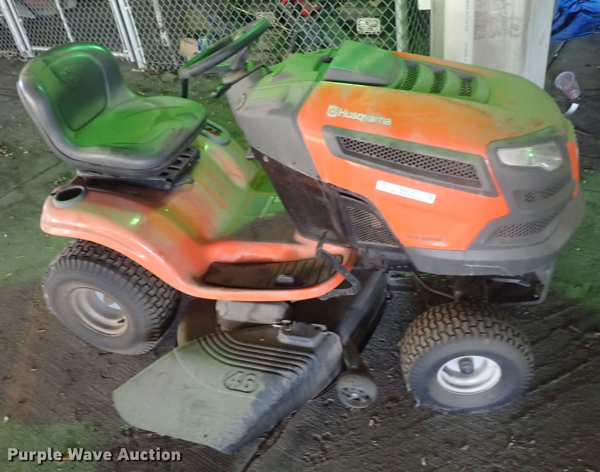 This Husqvarna YTH 22V46 lawn mower will sell to the highest bidder regardless of price.