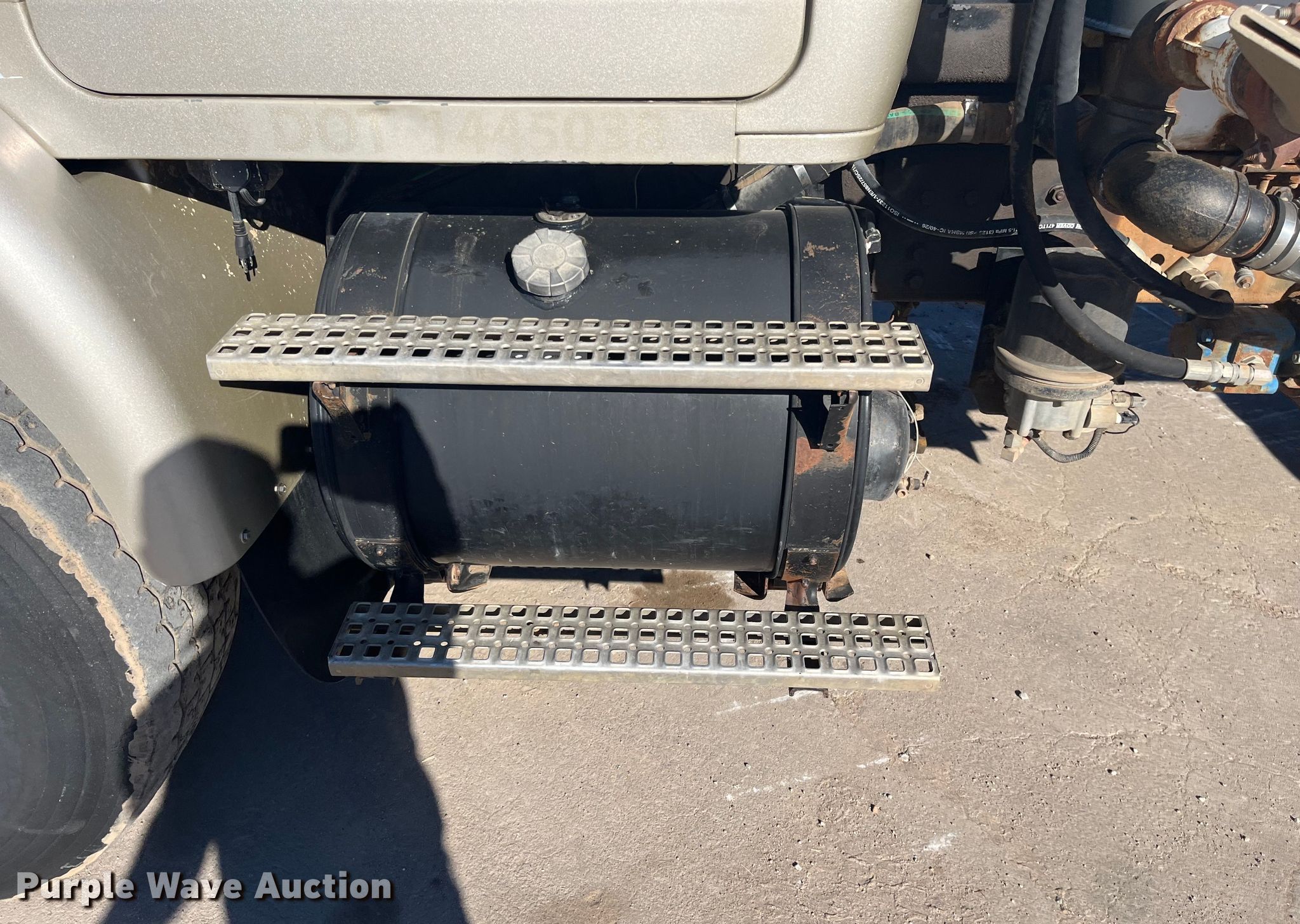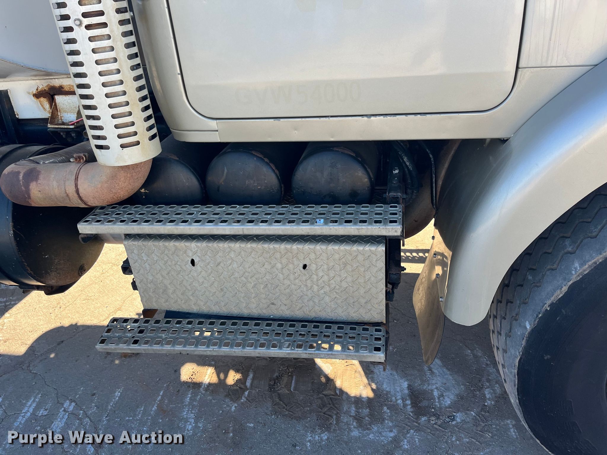 1999 Volvo WCA64T water truck. Miles: 198,602 on odometer, Hours: 3,755 on meter, VIN: 4V5JCBPF3XN864636. Engine Cummins M11-330D4, Displacement: 10.8L, Cylinders: 6, Fuel type: Diesel, HP: 330. Transmission Allison HT-740RS, Automatic. Chassis Axles: Tandem, Differential lock: Inter-axle, Suspension: Spring, Brakes: Air, PTO. Interior AC, Heat, Cruise control. Features Bed / tank 14' L x 96" W, Water tank Top fill, Rear outlet: 3". Tires Front: 425/65R22.5, Rear: 11R22.5. Kansas title. Allied Equipment. Wichita, KS 67204