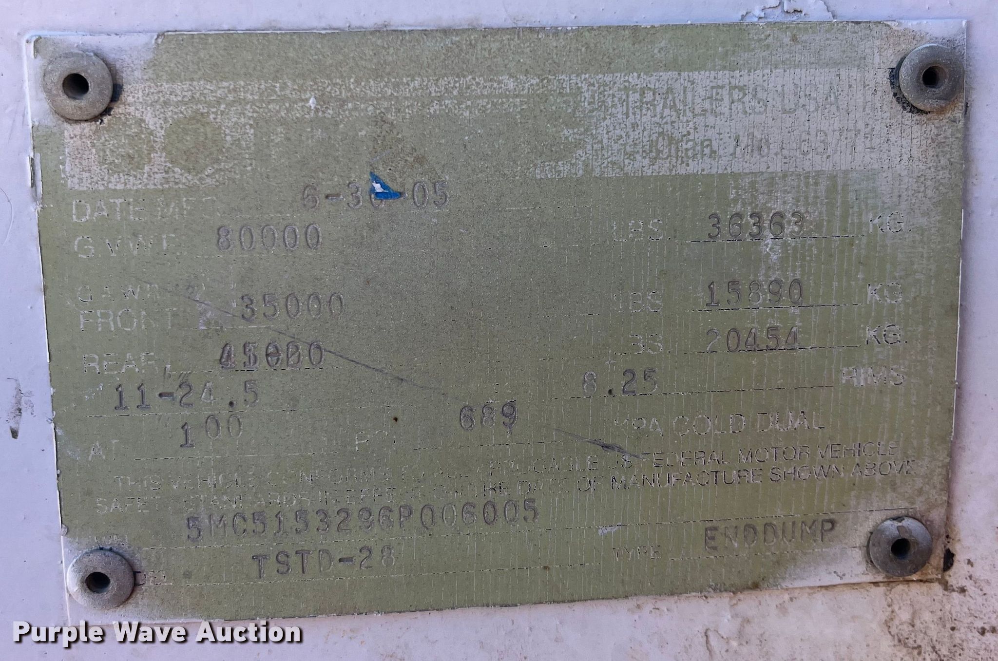 Purple Wave is selling a used End Dump Rock Trailer in Kansas. This item is a 2006 CPS TSTD28 end dump trailer with the following: VIN: 5MC5153296P006005