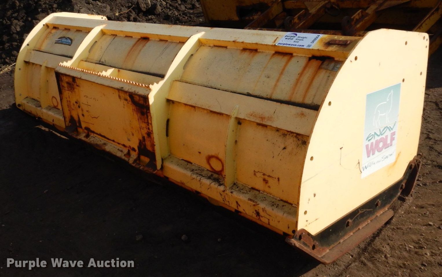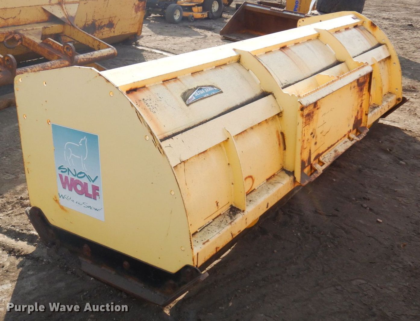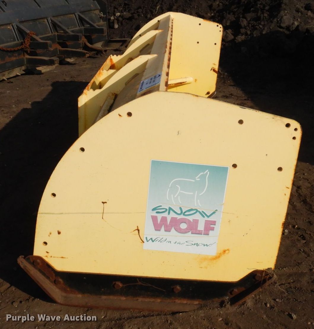 Purple Wave is selling a used Skid Steer Attach. in Minnesota. This item is a Snow Wolf 120"W skid steer snow pusher with the following: Cutting edge: Bolt-on, Serial: 8496
