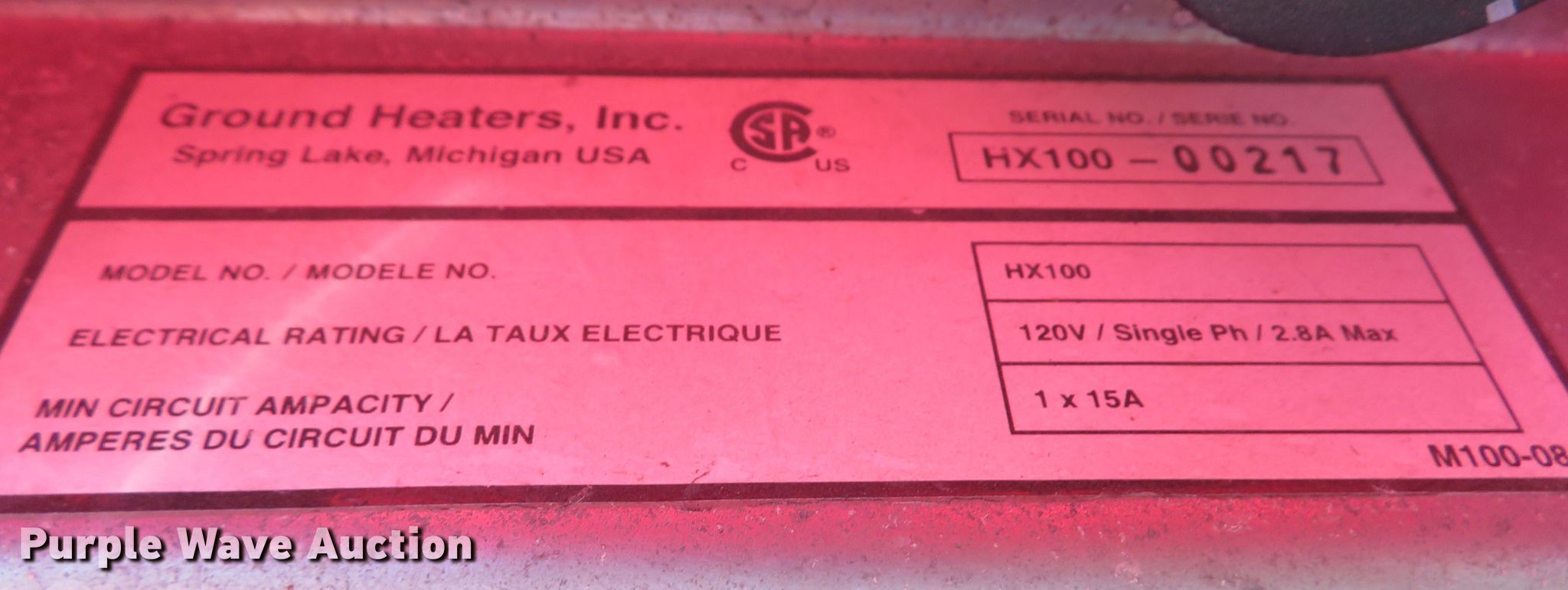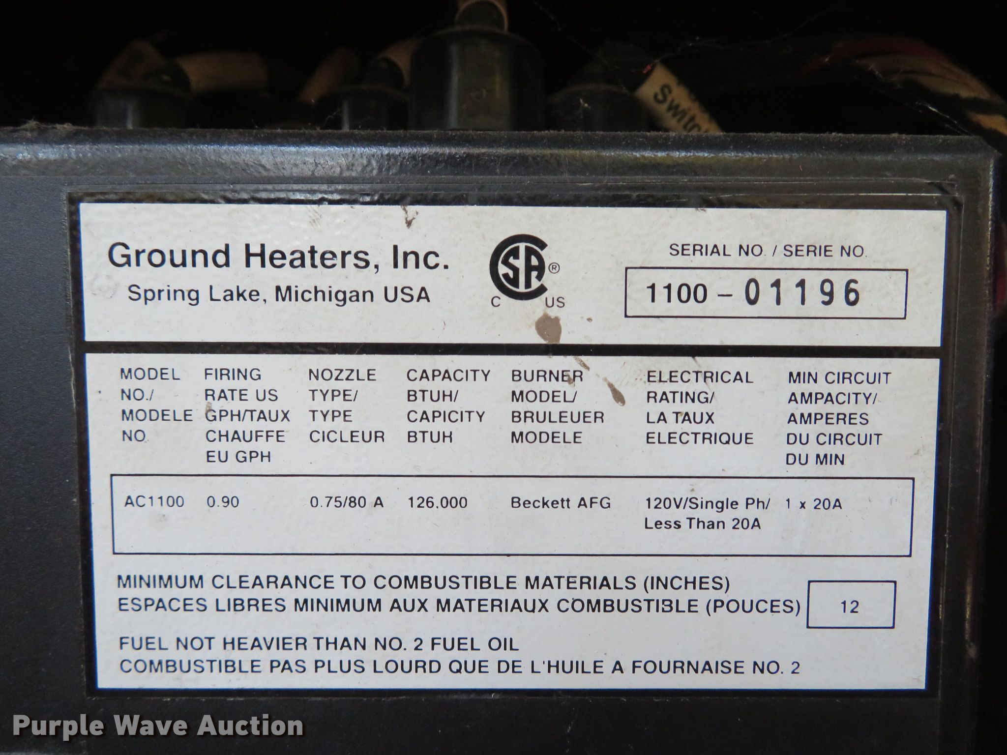 2003 Ground Heaters Inc. AC1100 ground heater
