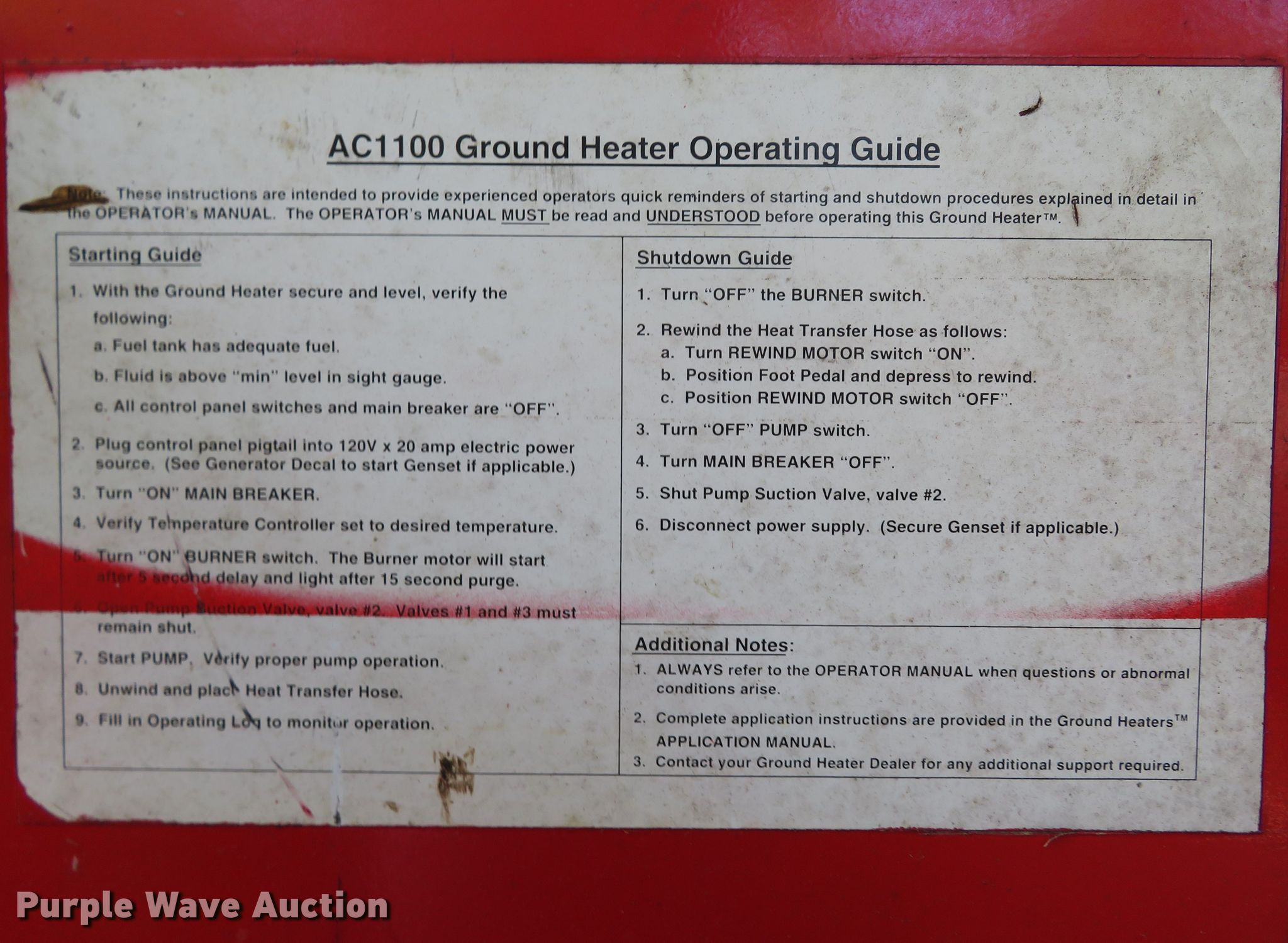 Purple Wave is selling a used Portable Heater or Fan in Missouri. This item is a (2) Ground Heaters Inc. ground heaters with the following: Hours: 5,673 on meter, VIN: 1G9UP10134S201076