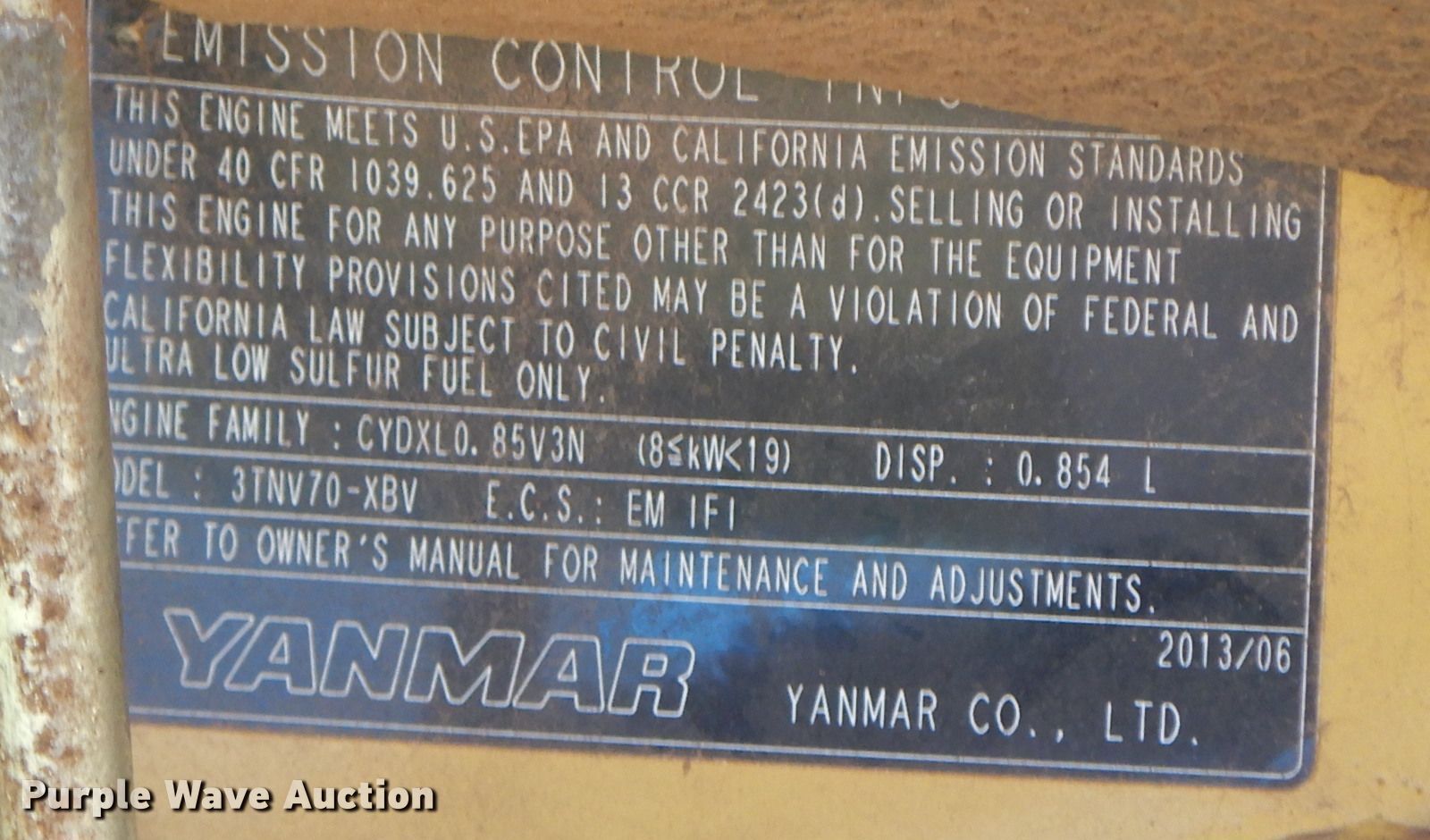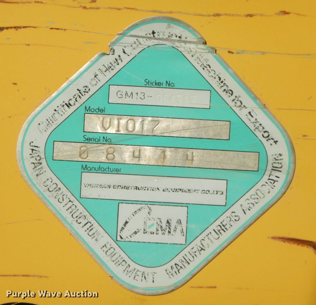 Purple Wave is selling a used Mini Excavator in Oklahoma. This item is a 2013 Yanmar VI017 mini excavator with the following: Hours: 2,705 on meter, Miles or hours may vary, unit still in use, Serial: 08474