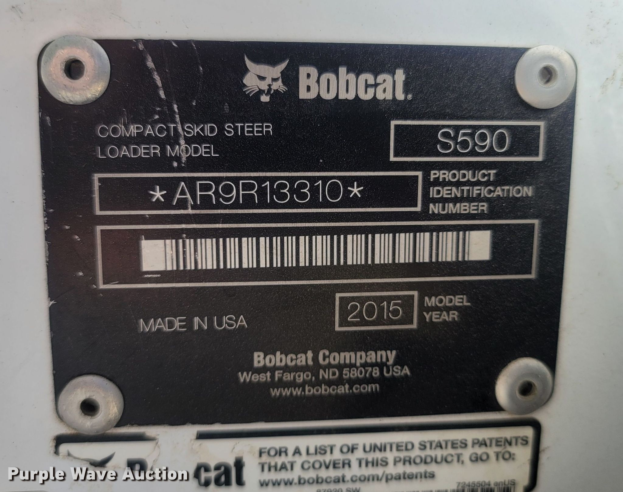 Purple Wave is selling a used Skid Steer Loader in Missouri. This item is a 2015 Bobcat S590 skid steer loader with the following: Hours: 4,035 on meter, Serial: AR9R13310
