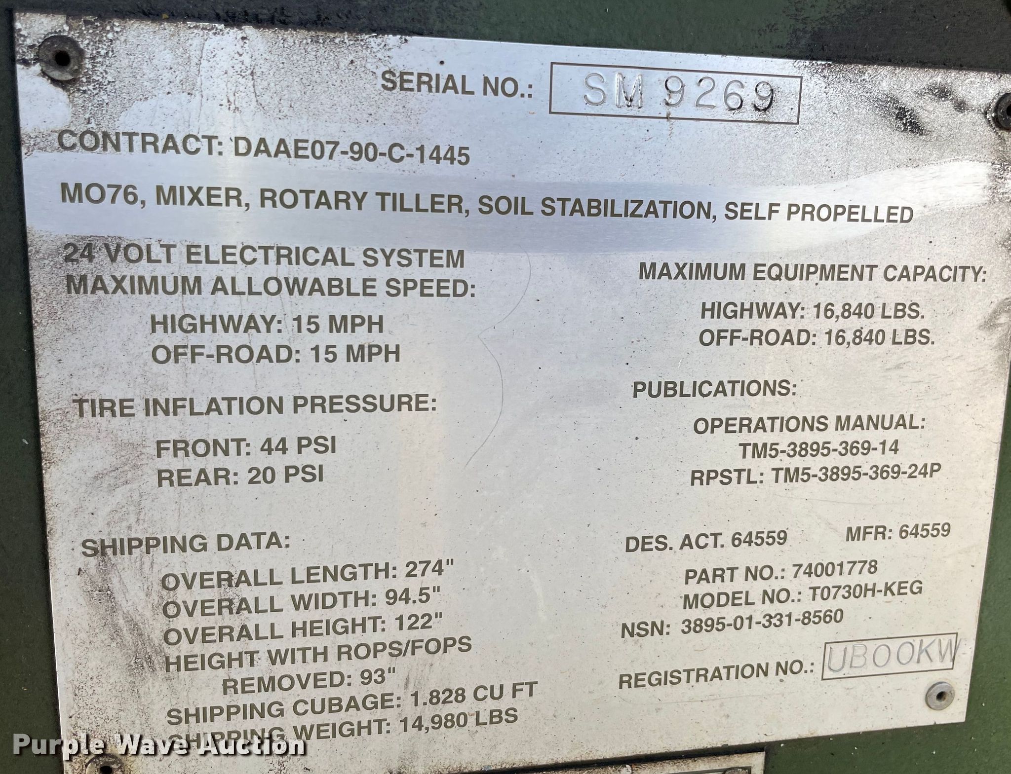 Purple Wave is selling a used Reclaimer or Stabilizer in Oklahoma. This item is a MO76 recycler with the following: Hours: 105 on meter, Serial: SM9269