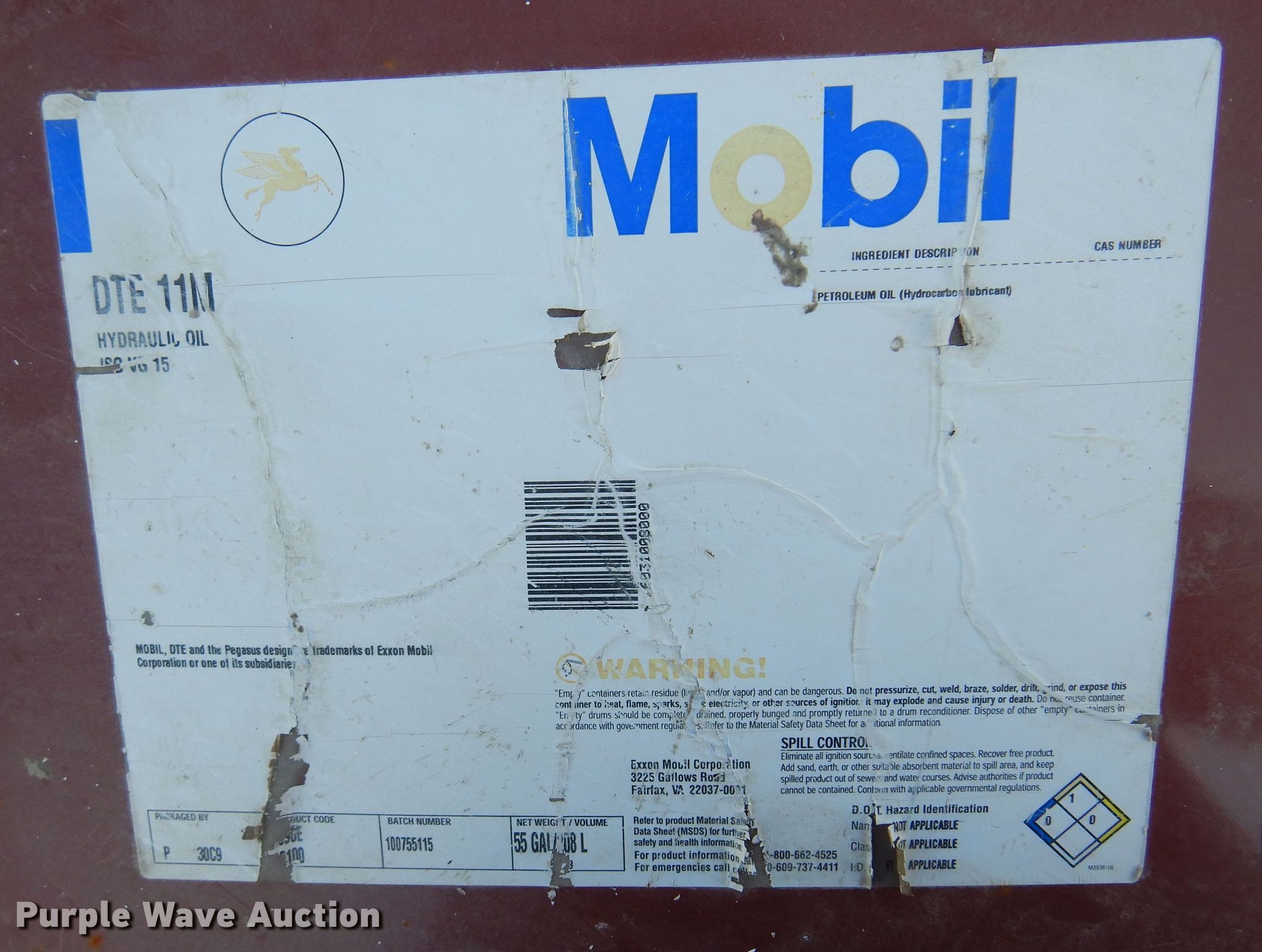 - Partial barrel of Mobile DTE11M hydraulic luid